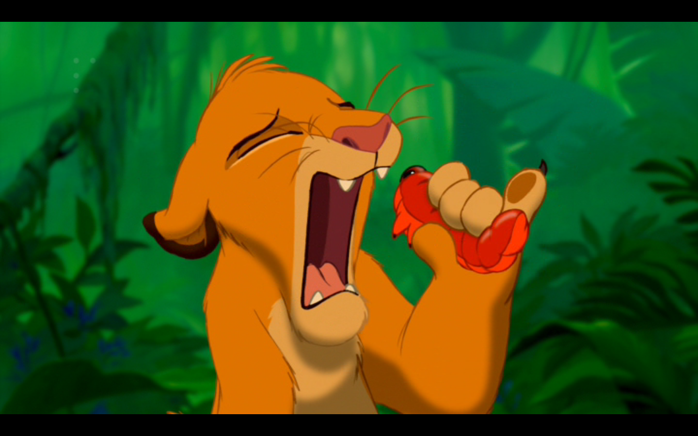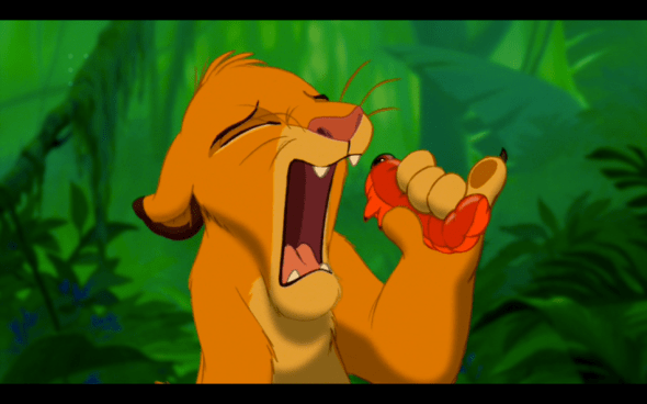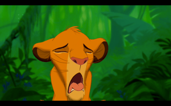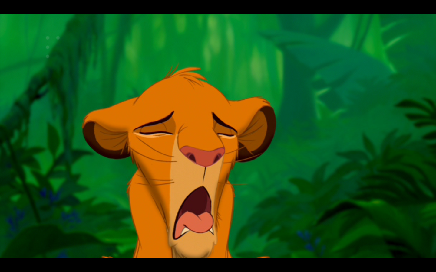 It’s mostly plot-related stuff that they argue about, but the look on Simba’s face the entire time (which you can see in the screenshot up there, in the hammock) is like, “Hey man, it’s cool. How about we go again?”