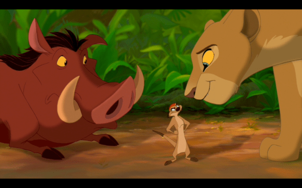 And Simba’s like, “I totally won’t abandon you. Look, she’s totally cool. We’re just gonna go talk.” And Timon’s just hating her for no reason, like she just kicked a child down a flight of stairs.
