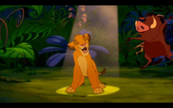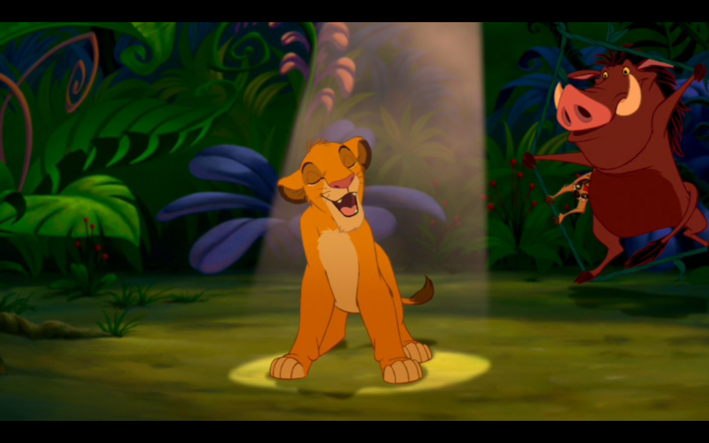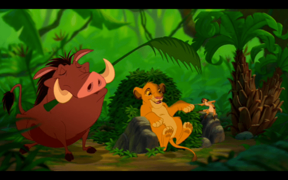 But, the more I watched — the more I started noticing certain things. Specifically in the portion of the film where Simba is off with Timon and Pumba.