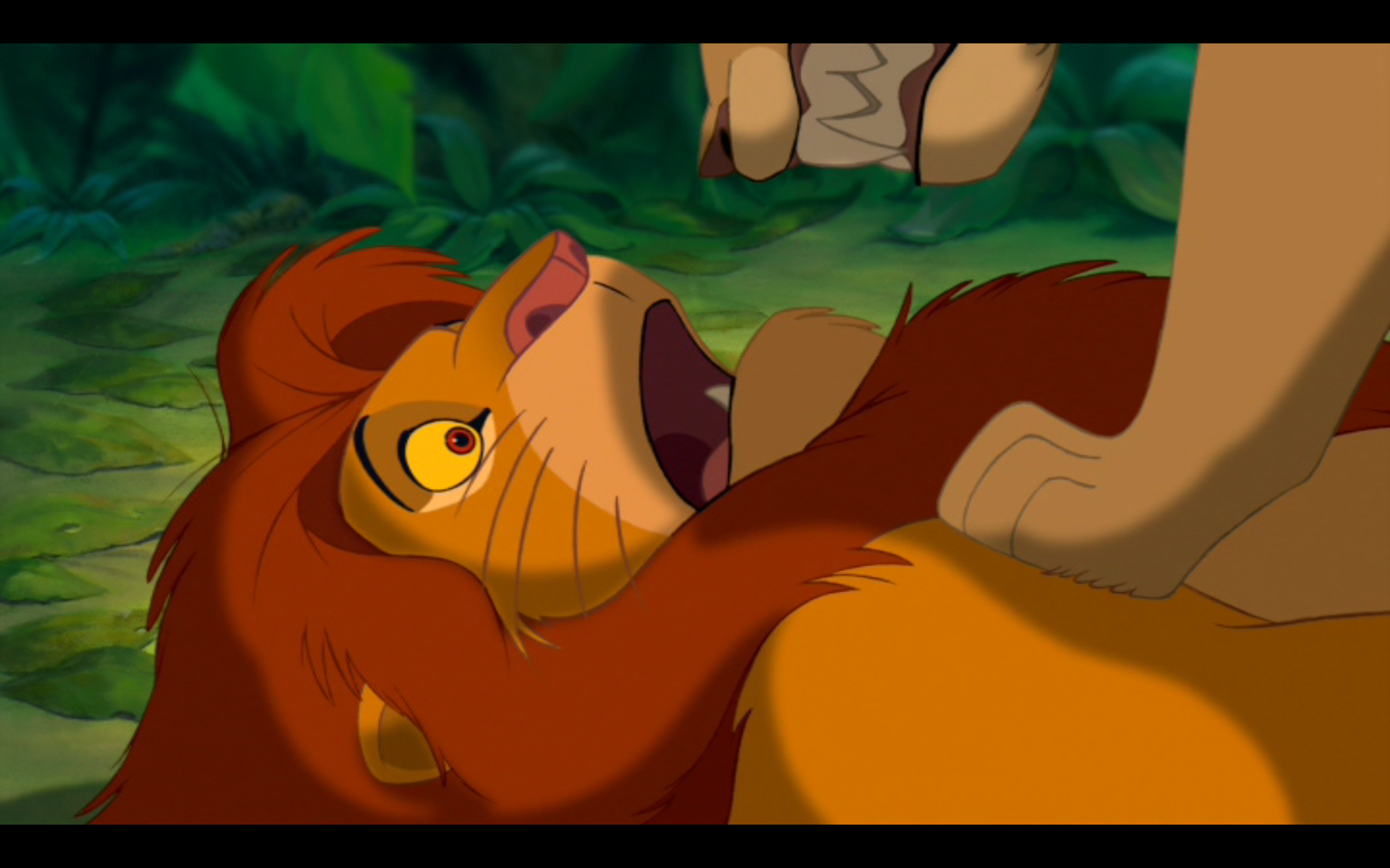 Now, having gotten caught in a stampede, he naturally assumes his father’s death is his fault, because Mufasa died trying to save him. So Scar (knowing this would be the case, as he’s using the mistreatment of Black voters to take power even though he doesn’t give a fuck about them. They might as well call it Tammany Rock) scares Simba into thinking it was his fault and that he has to run away, plaguing him with years of guilt and emotional problems. Just like a real family member would!