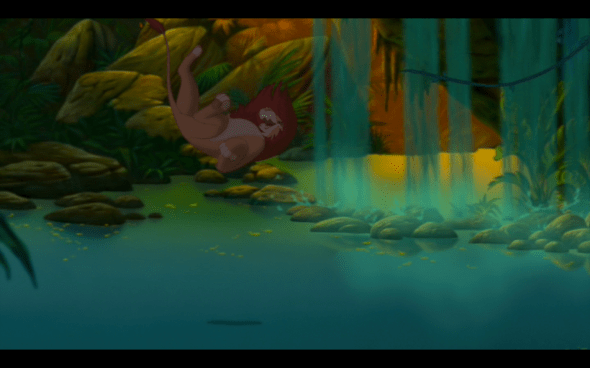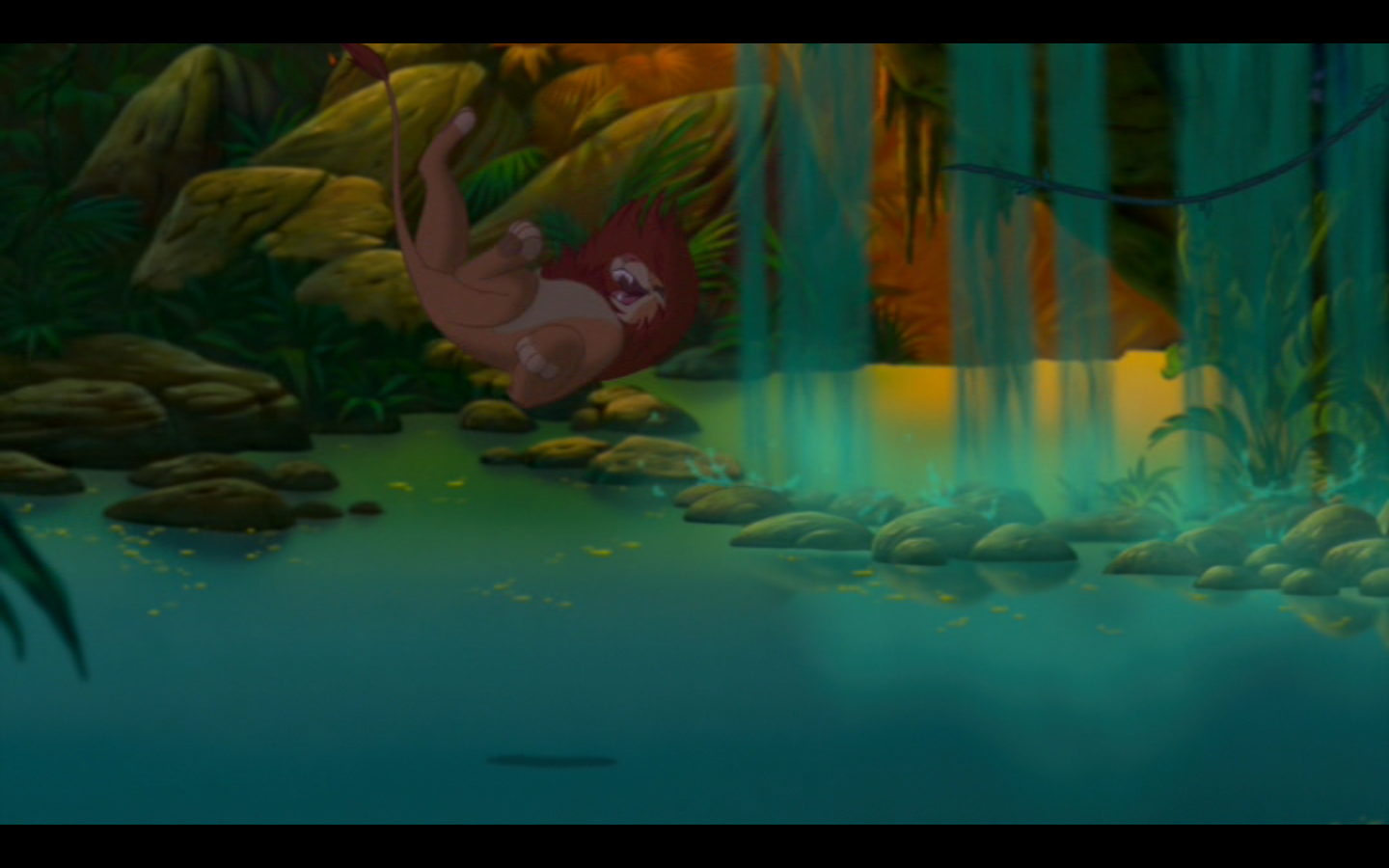 And then he goes and swings from the vine into the pond, which, to me, is the equivalent of him getting on the bed and sexily taking off his shirt.