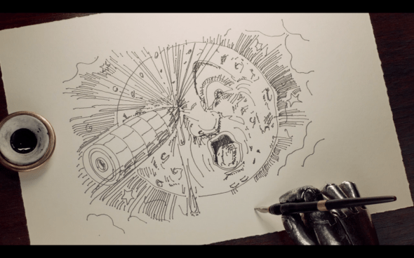 Also great job by the film of teasing that the automaton wasn’t going to work. It actually had me going for a second. And then when it did work, I got excited. Then when I saw the drawing I got even more excited. I really had no idea what to expect the first time I saw this. It was so amazing.