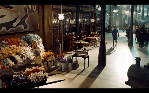 The great moment in this for me is when Méliès actually leaves the station. And Hugo has that pause, where he stands at the entrance. Right there, you know this boy has not been outside the walls of this station for a long time. It’s a great piece of characterization caught within a single image.