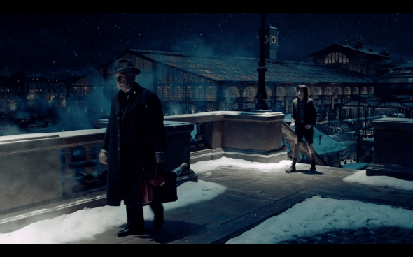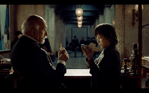 So then we see how Hugo started winding the clocks at the station. We also, in the brief amount of time we see Claude (only two scenes), get a nice characterization of him. A brash, uncouth drunk, who also greatly respects time. He has that moment where he goes over, “Sixty seconds in a minute…” and says, “Time is everything.” They really get a lot out of him with a limited amount of screen time.