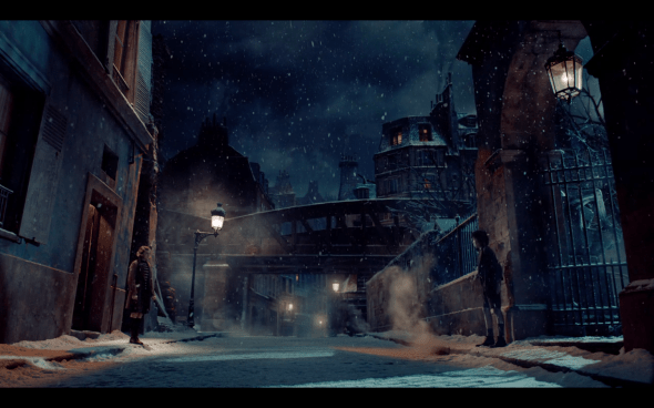 And then we get these great shots of Méliès walking home through Paris, and Hugo following him:
