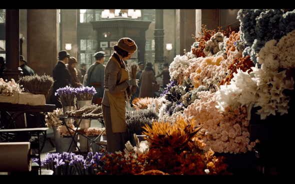 Then we follow the Station Inspector’s subplot of his romance with Lisette. (I’m not quite sure, but they might have reused a shot when she’s seen again, of her pushing her flower cart and saying, “Good morning!” Either it’s the exact same shot, or they just used one part of it the first time, and a later part for this one, or it’s the same one. Just a curious thing I noticed, really.)