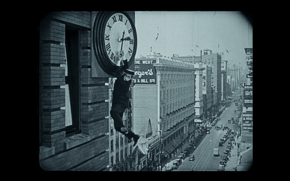 The film even creates a visual motif out of it! They use the image of Harold Lloyd hanging from the clock and recreate it at the end when Hugo is running from the Station Inspector.