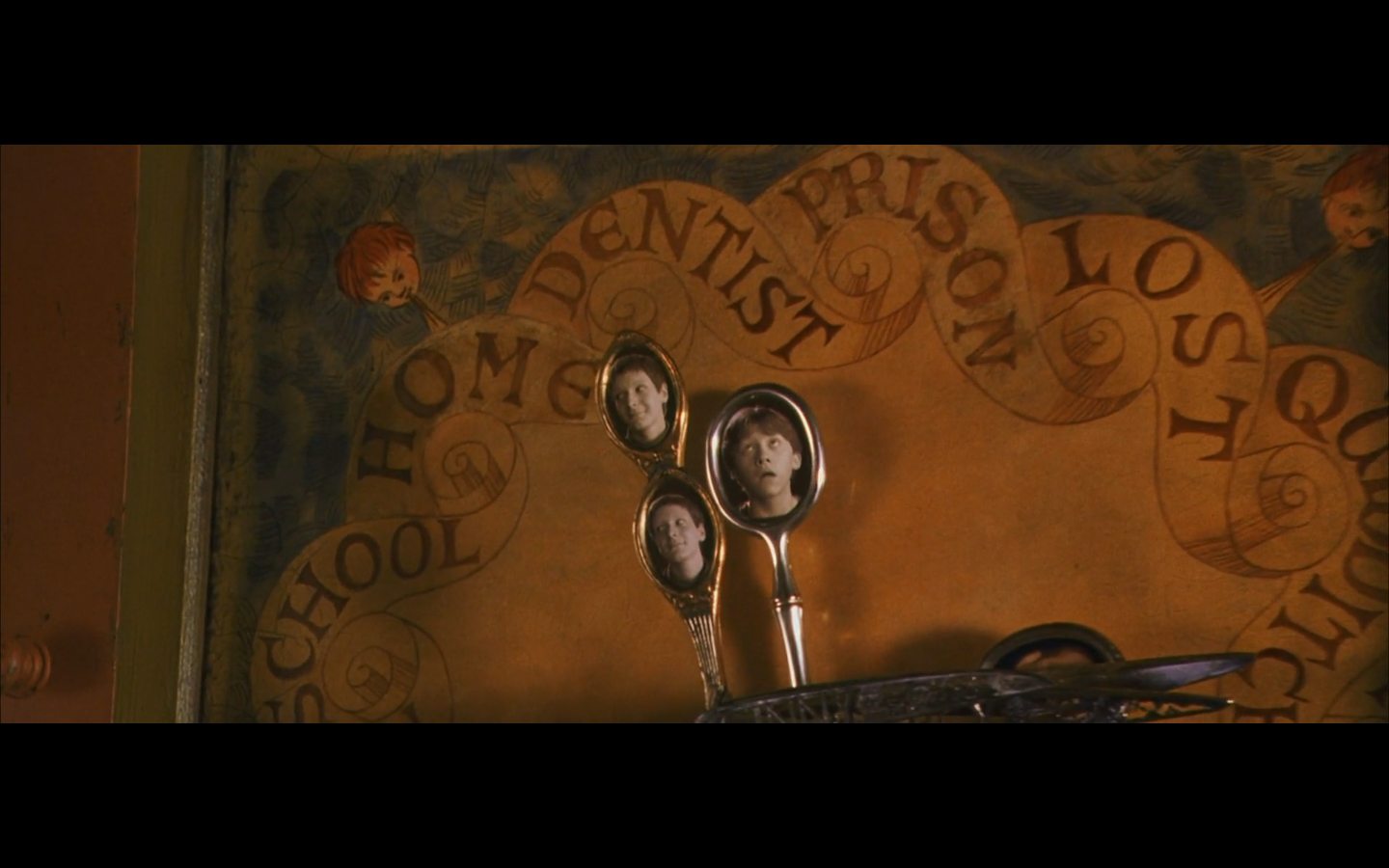 Apparently nothing has changed since the end of the last movie. Well, I guess Harry has a bedroom now. Still obsessing over his dead parents, though.