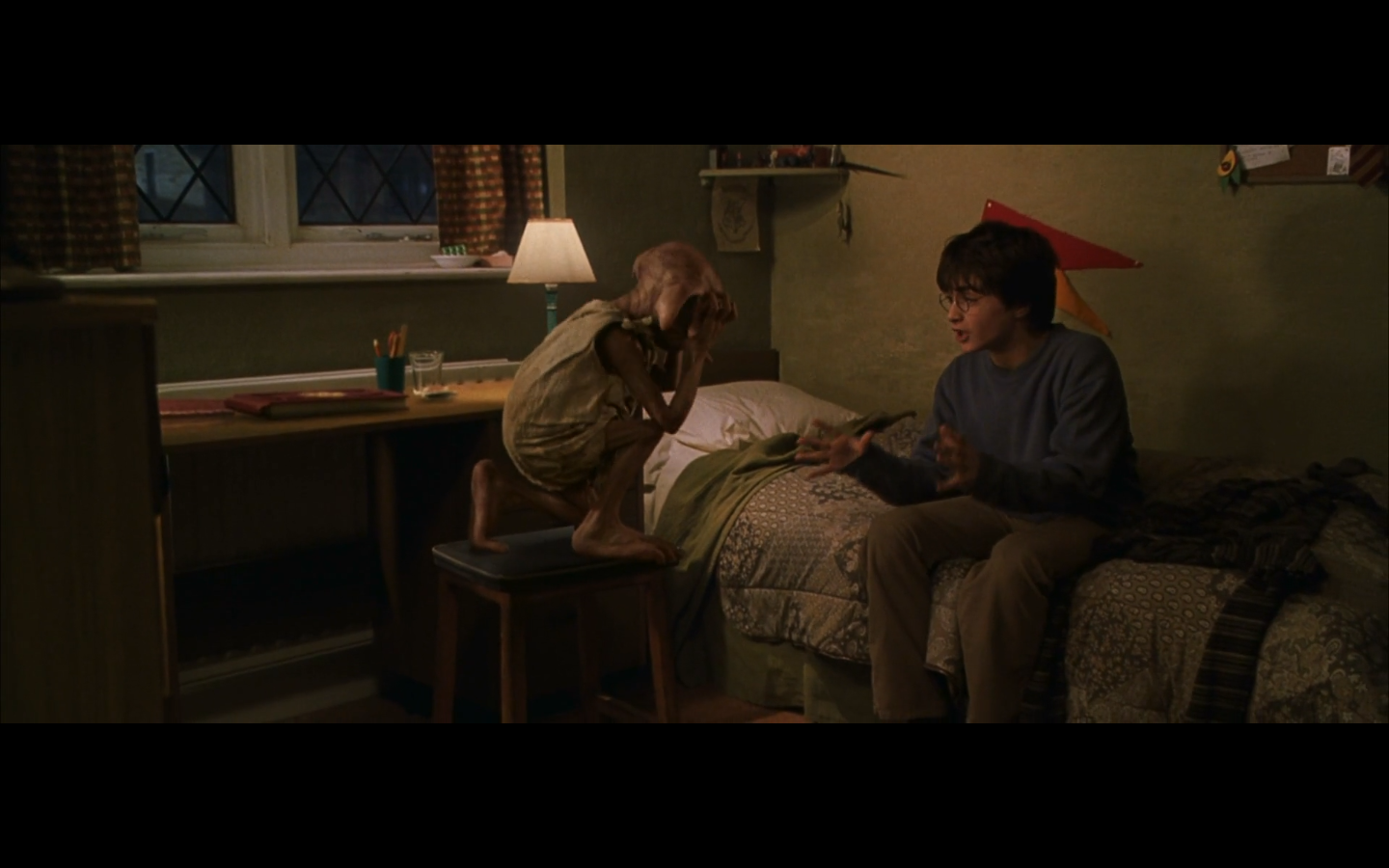 Dobby doesn’t know where to begin, and Harry tells him to sit down and they can begin.