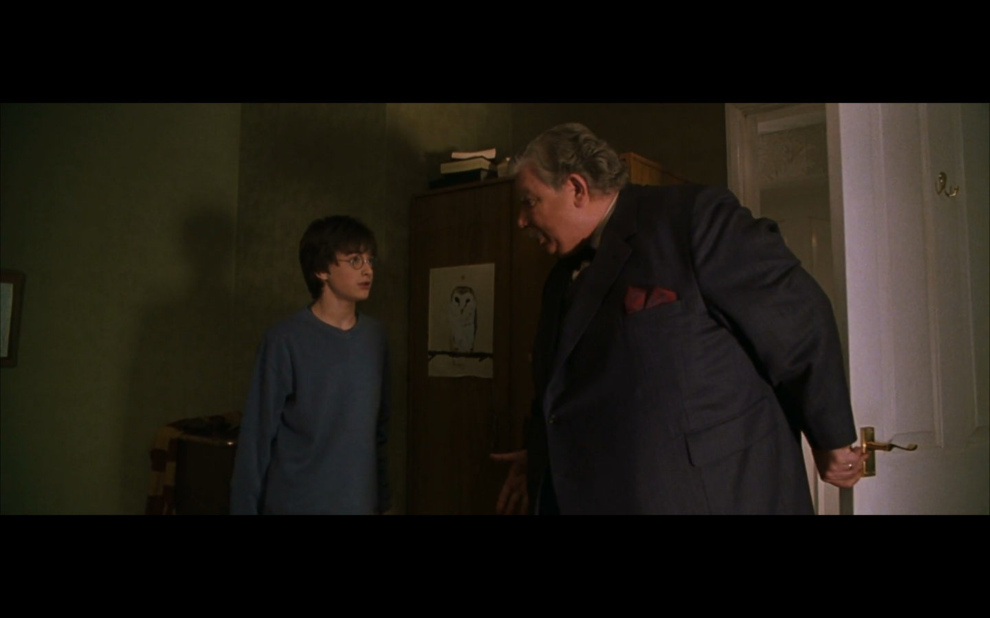Unc V’s not. He tells Harry to control that fucking bird. Harry says she (show of hands – who knew Hedwig was a girl owl?) just needs to get out for a while.