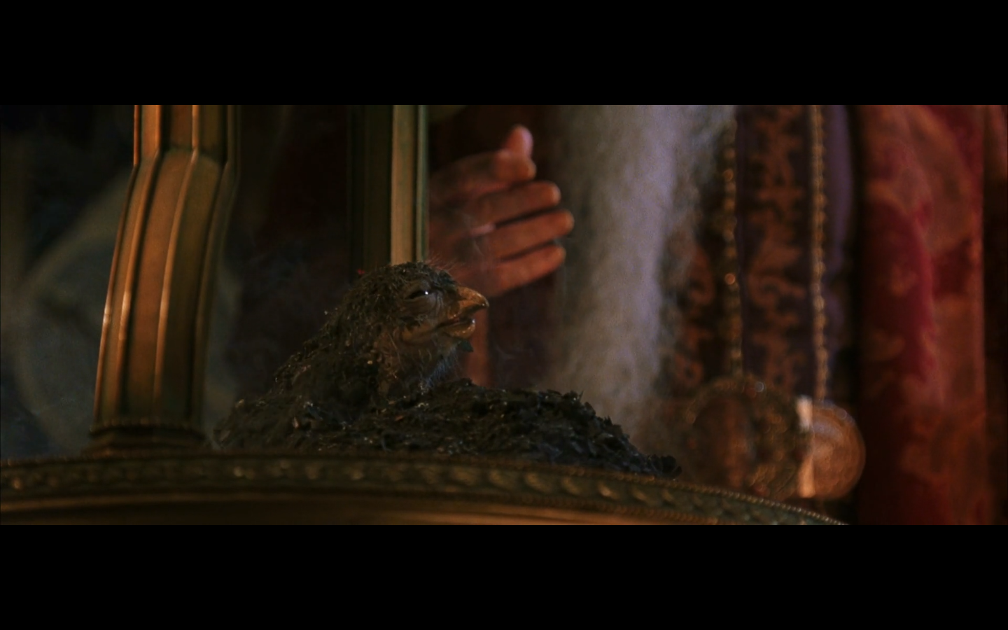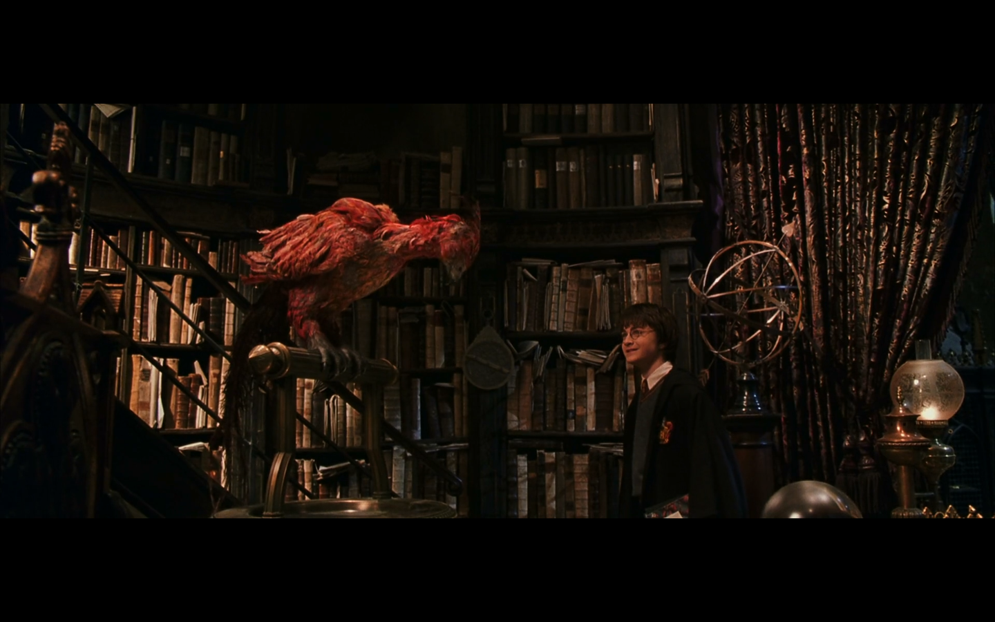 Apparently this is the phoenix from whom Harry and Voldemort’s wands got their feathers. Because that’s how small this universe is.