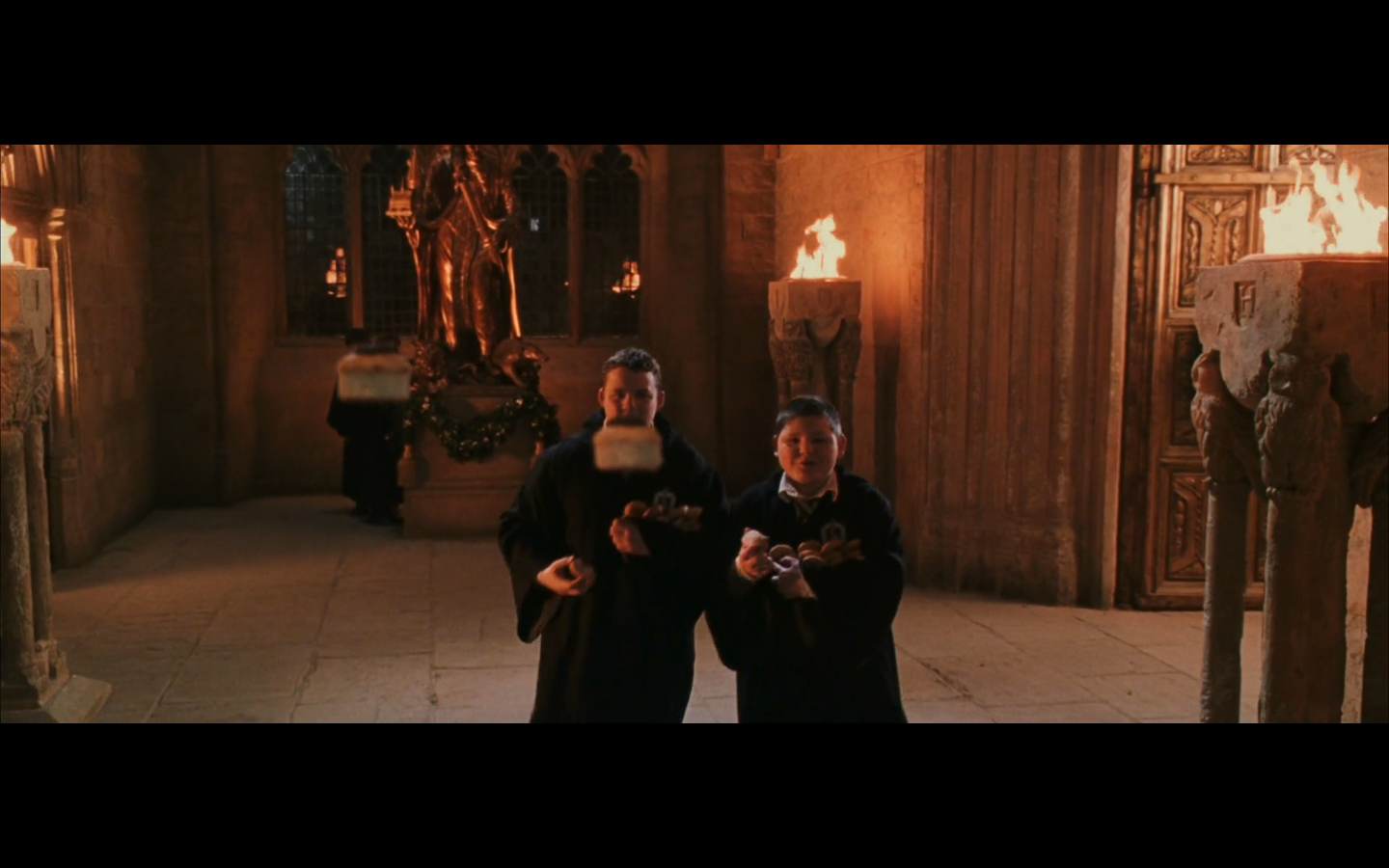 But what I don’t get — there doesn’t seem to be an end to food in the Great Hall. And from what we’ve seen in these movies so far — it’s almost exclusively dessert food. Do they really need to be walking out of there with armfuls of cupcakes when there’s gonna be more there in like, 12 hours? I get taking like, two or three with you back from the dining hall, because maybe you’re gonna get hungry later, or maybe you just want something to snack on because you’re gonna light up a fat one later and watch Planet Earth. But that many cupcakes just seems weird.