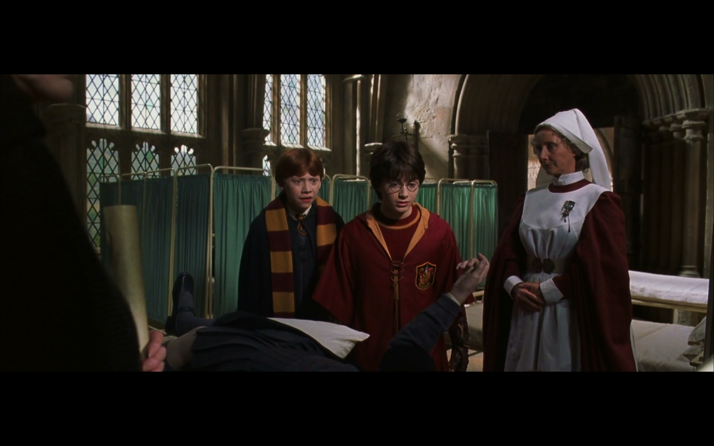 I don’t get it. How do you un-petrify a ghost? Though, isn’t this the last time we see Nearly Headless Nick in the films? Maybe he’s double dead now. Maybe that basilisk did us a favor.