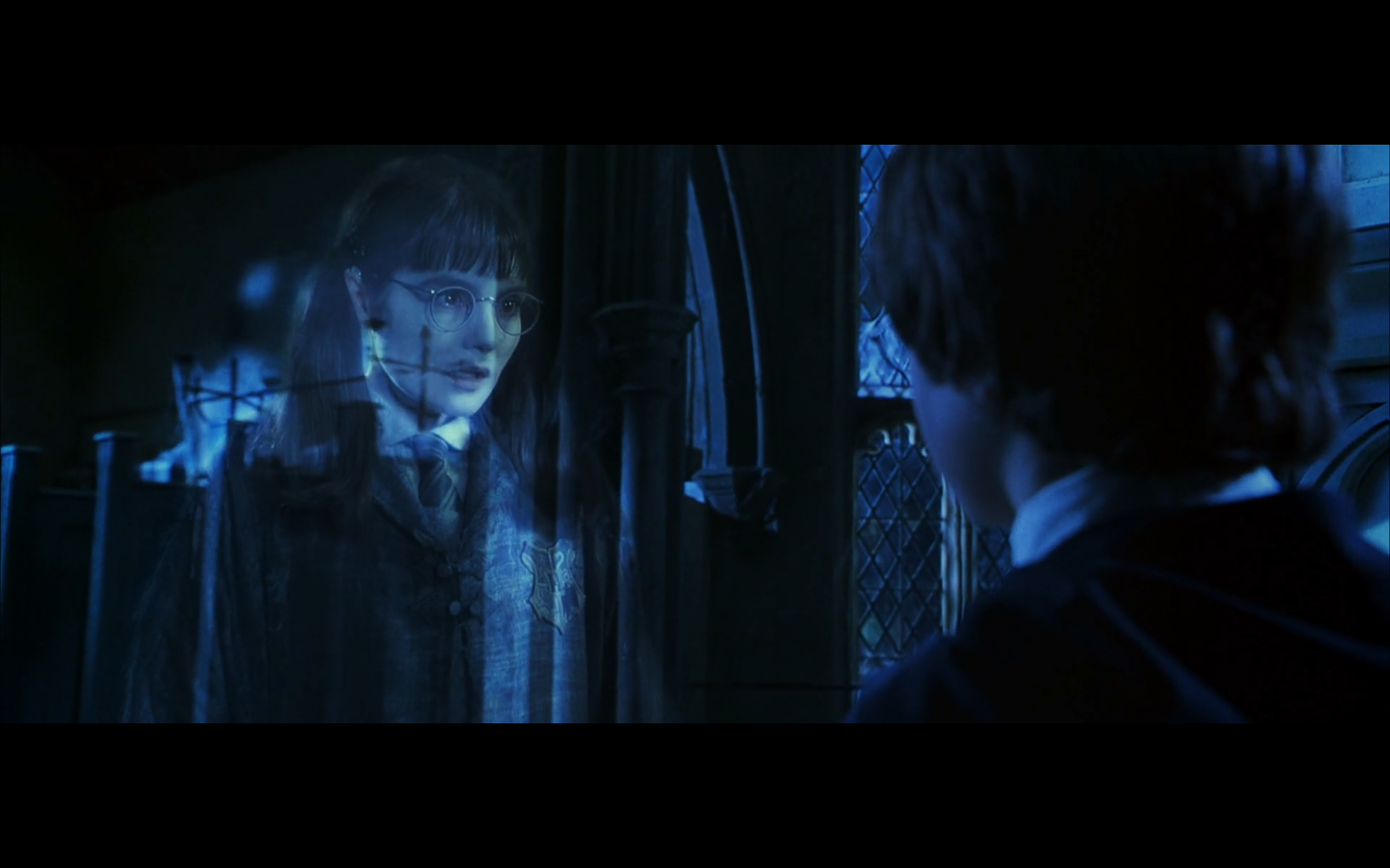 It’s a basilisk. A giant snake that kills everyone who looks at it. That’s why Harry can hear it speak. That’s why nobody’s dead. Mrs. Norris saw it through a puddle of water, Colin Creevey saw it through the camera lens, finance bro saw it through Nearly Headless Nick, and Hermione had the mirror, because she figured it out. And it’s been getting around through the pipes.