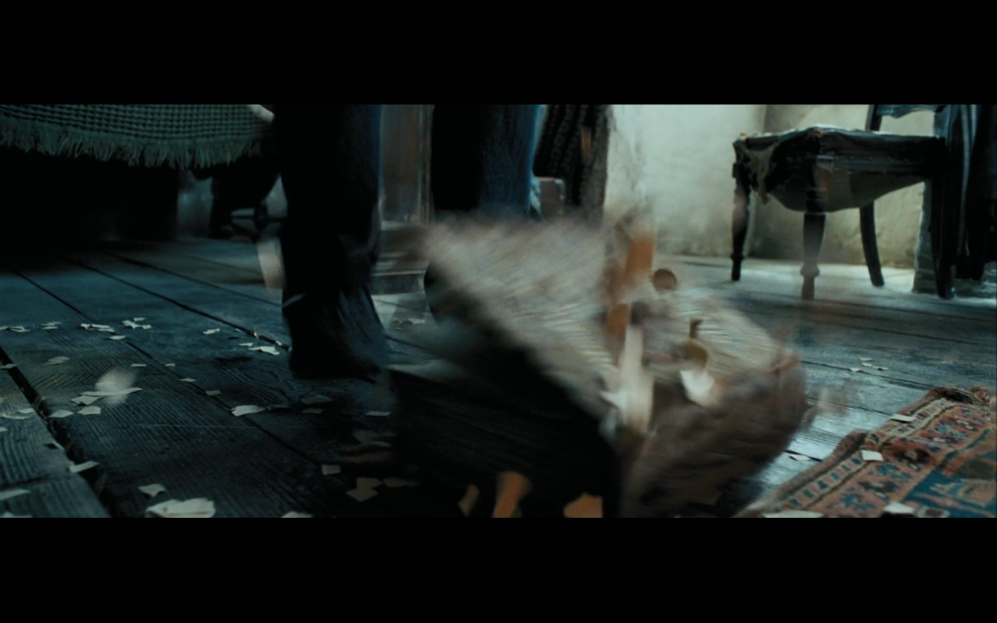 So Harry’s fuming, the lights start to flicker and air starts whooshing in out of nowhere all at the same time, and you don’t even stop to acknowledge the weirdness of that? Even if you aren’t expecting magic, you gotta be thinking that’s a strange coincidence. But no, she keeps right on going. Cause she’s a thug.