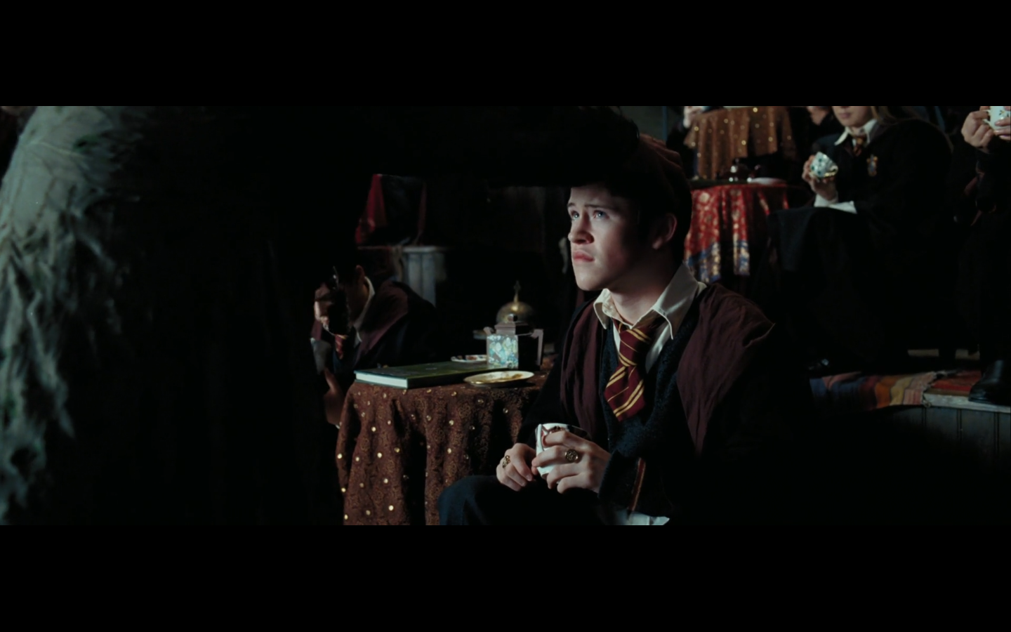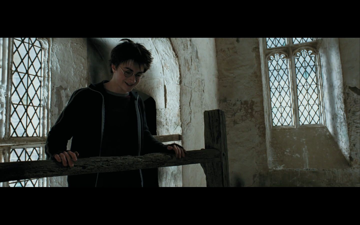 So the question here is — we only ever see the Gryffindor common room and then this room. Based on what this movie has shown us, there are only like six male Gryffindors. But I’m gonna assume that, while we know the boys and girls dorms are up separate staircases (and apparently someone’s monitoring that there’s no coed fucking going on), presumably this is a roommate situation and the boys get to decide who they’re gonna room with. Because numbers-wise, these aren’t the only male third year Gryffindors in the school. So they must have either been grouped together or decided to room together. Which is something we never see but is honestly more interesting to me than some of the stuff these movies show. Kinda want to know how that all went down.