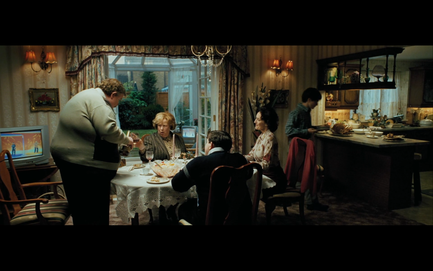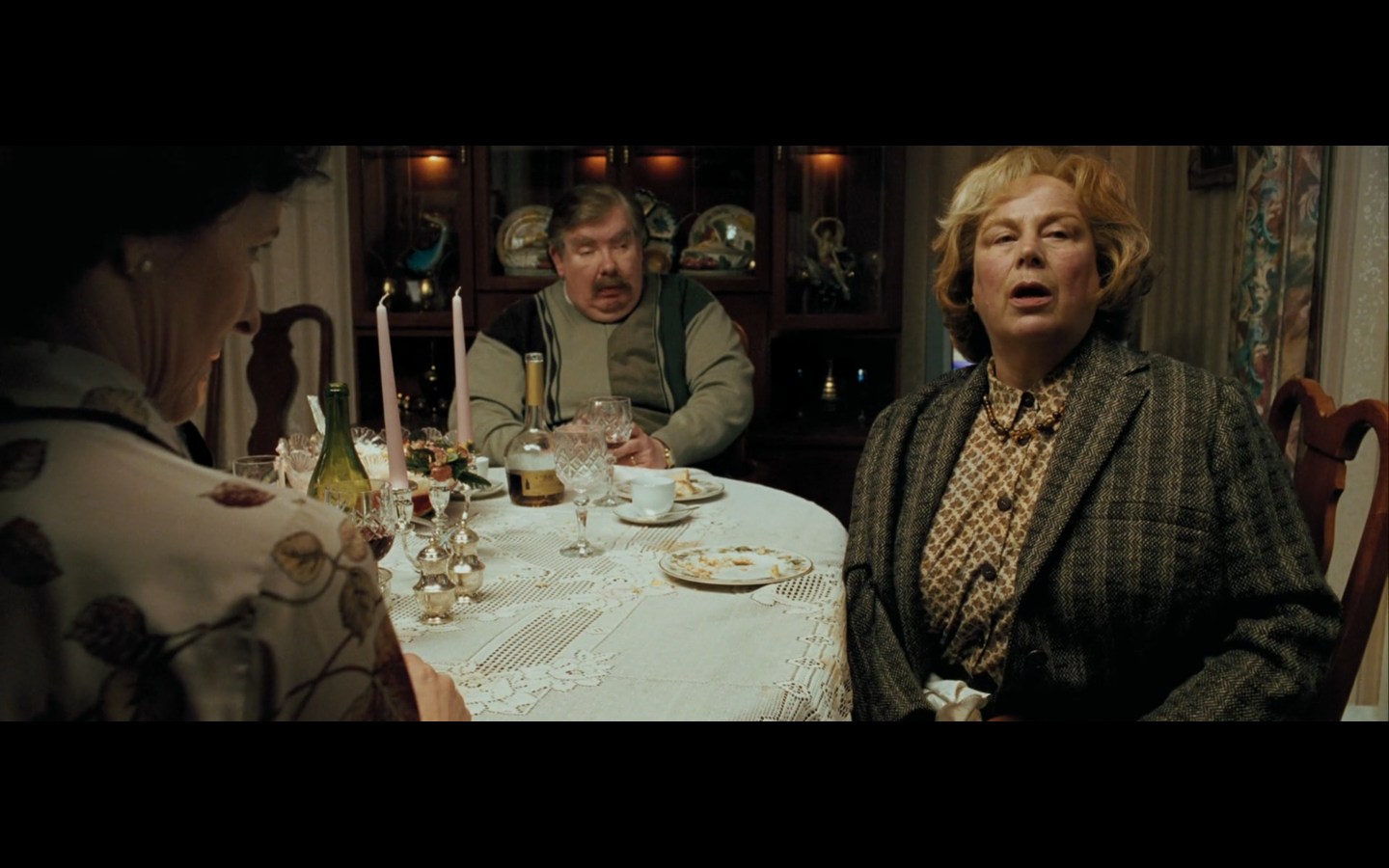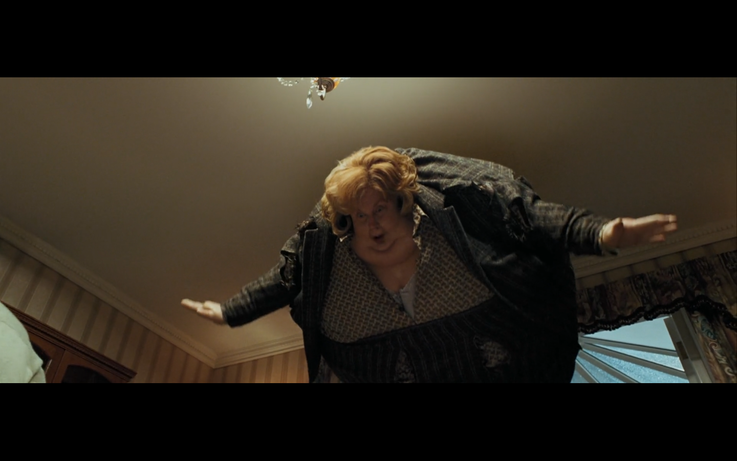Vernon’s sister, Marge arriving. She’s played by Pam Ferris, who also played Trunchbull in Matilda.