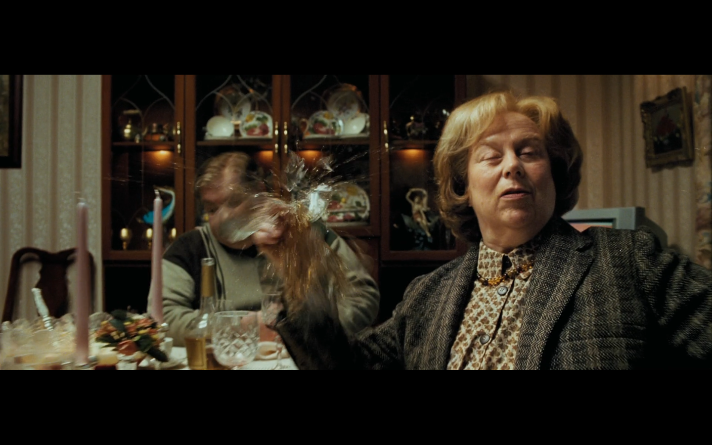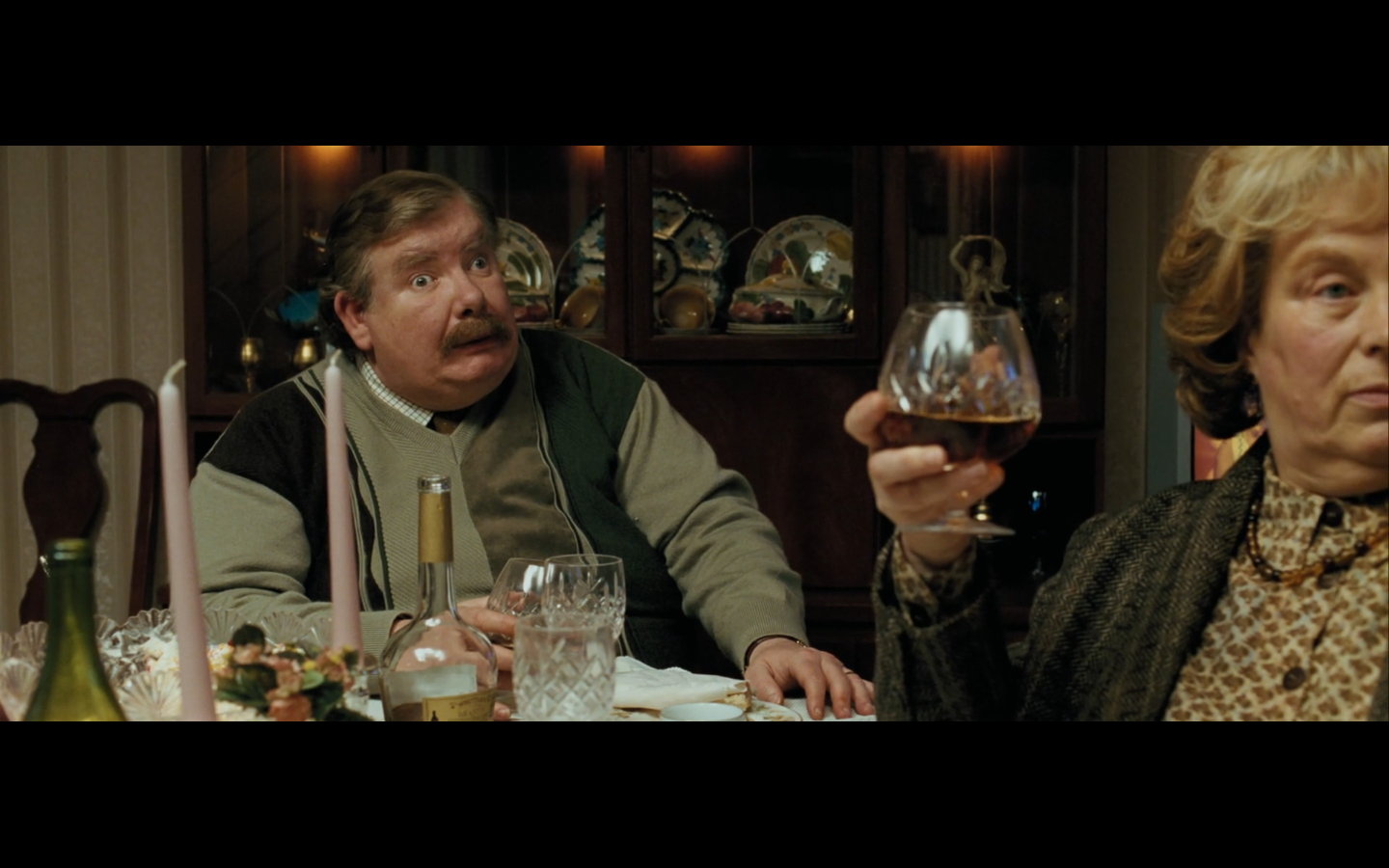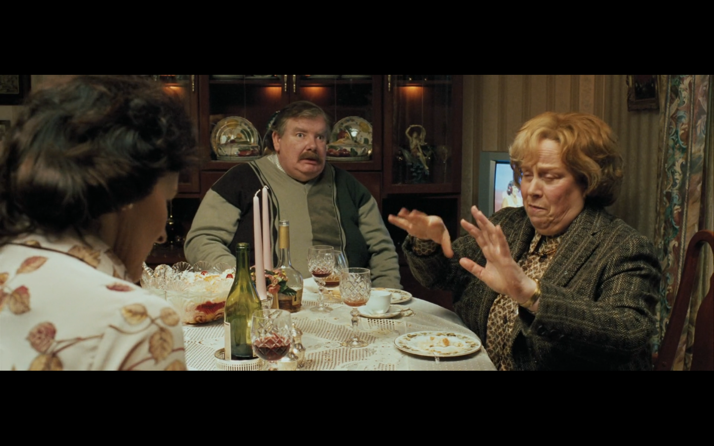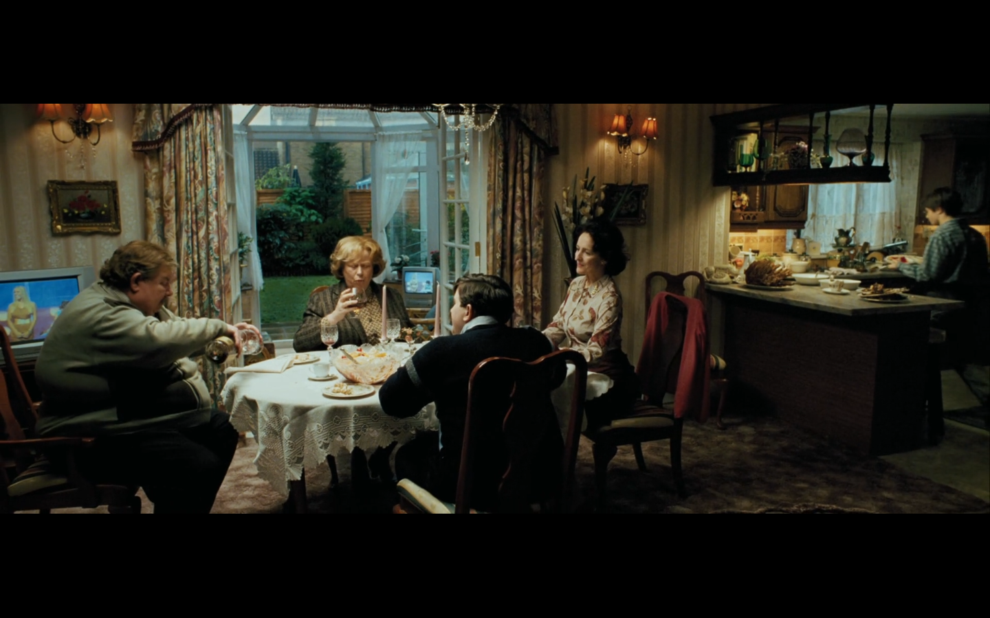 Vernon’s sister, Marge arriving. She’s played by Pam Ferris, who also played Trunchbull in Matilda.