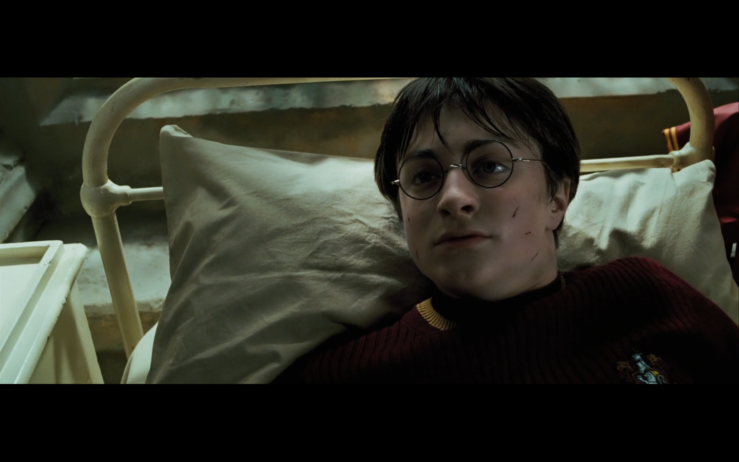 Best thing about this shot – you can hear Madame Pomfrey say, “Be still (whoever),” but it totally sounds like, “He’s STILL drunk!”
