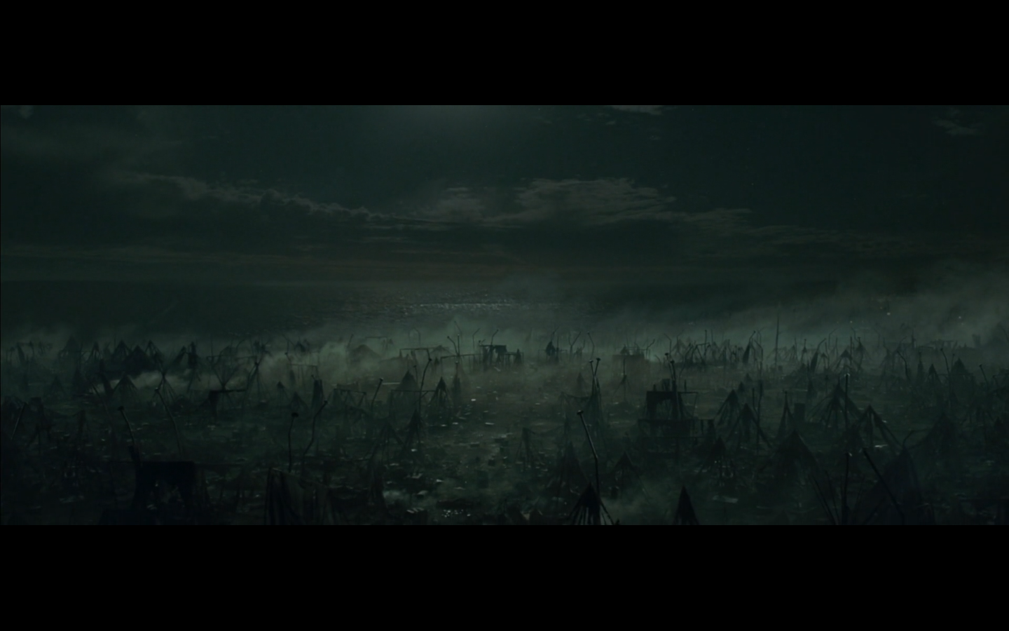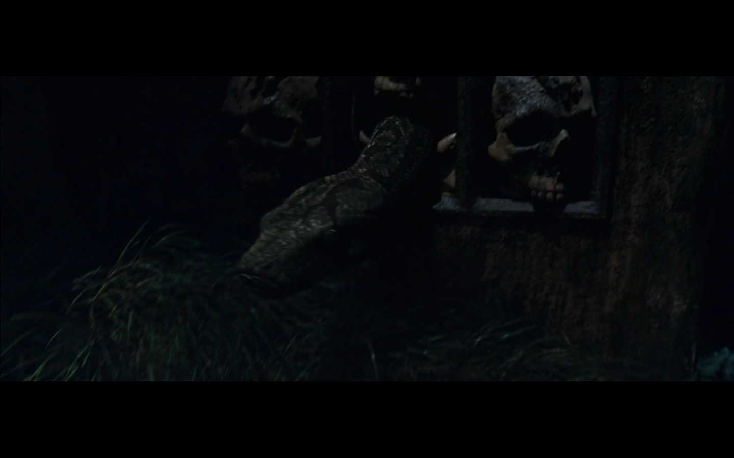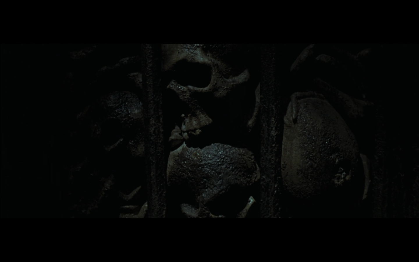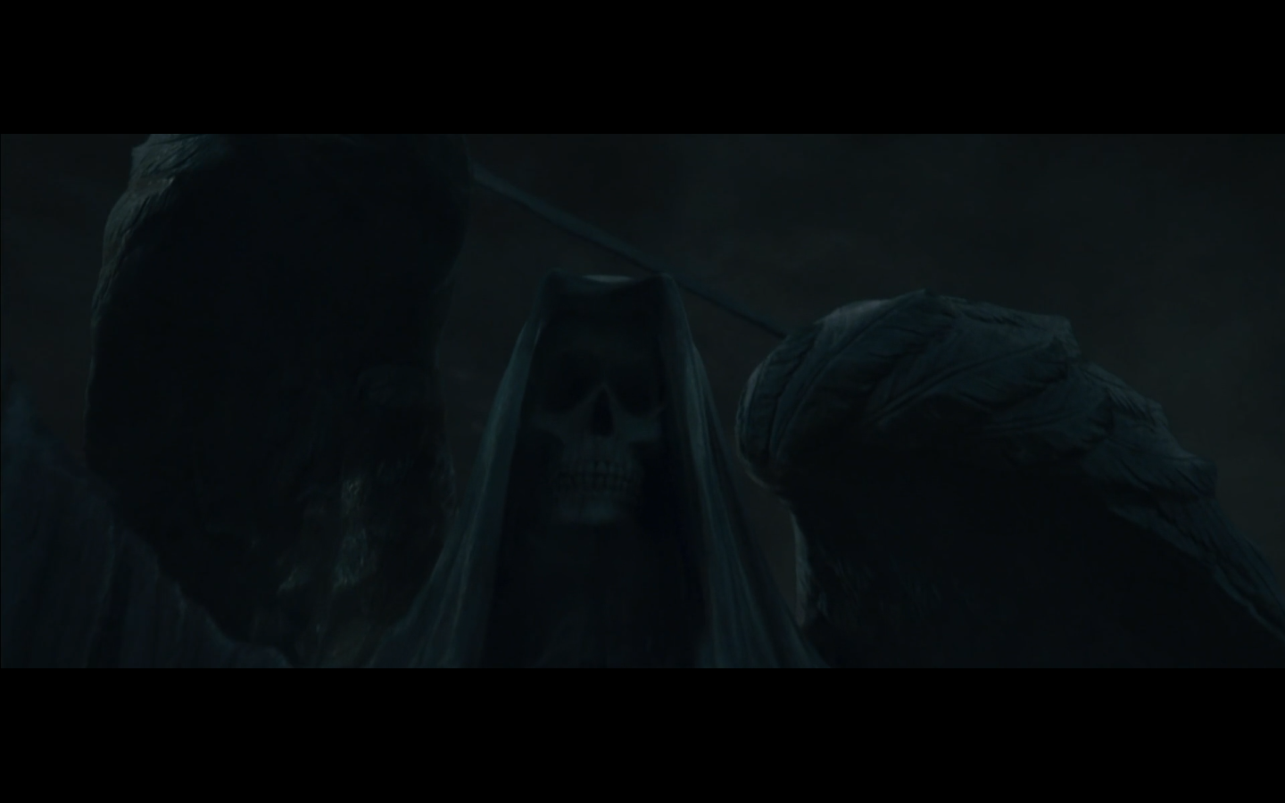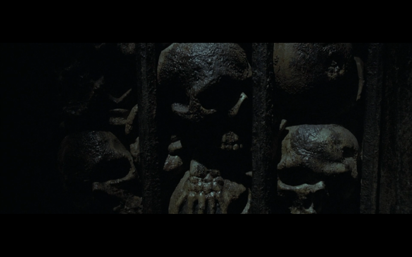 We open on a wall of skulls, and the score turns from The Matrix to “Castle on a Cloud.”