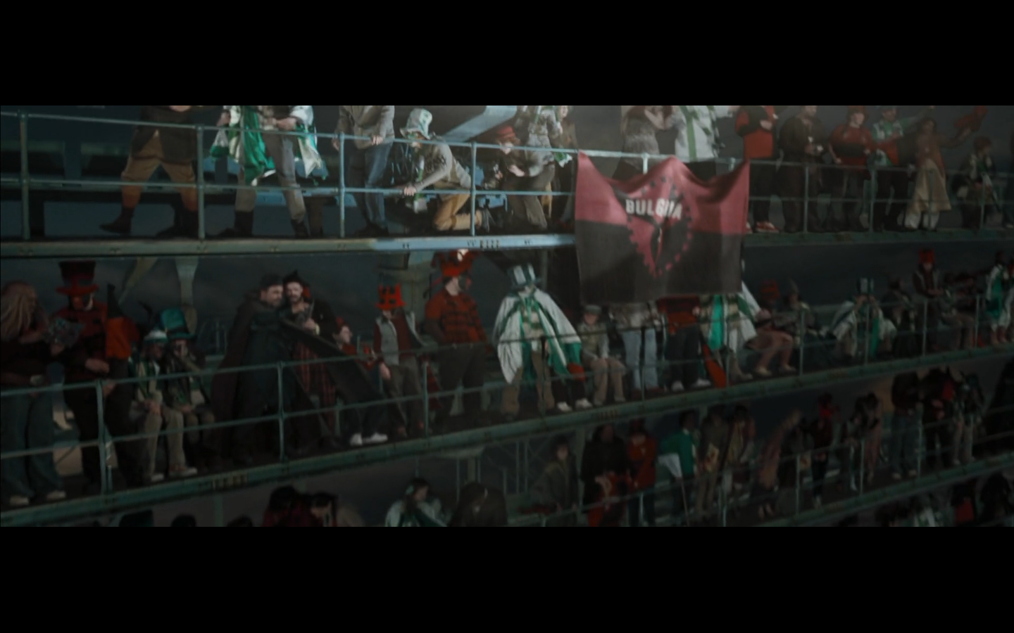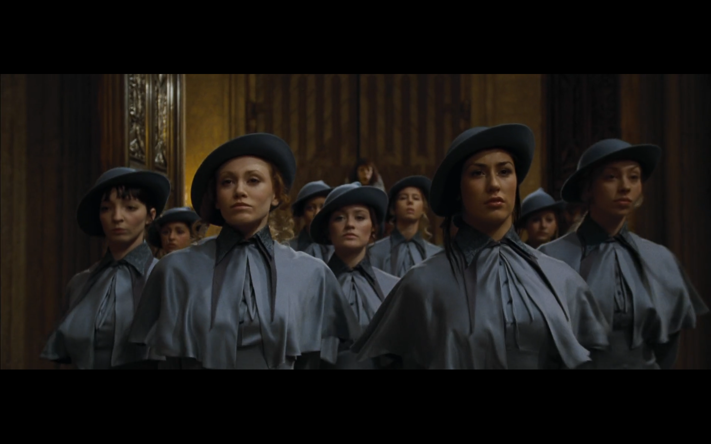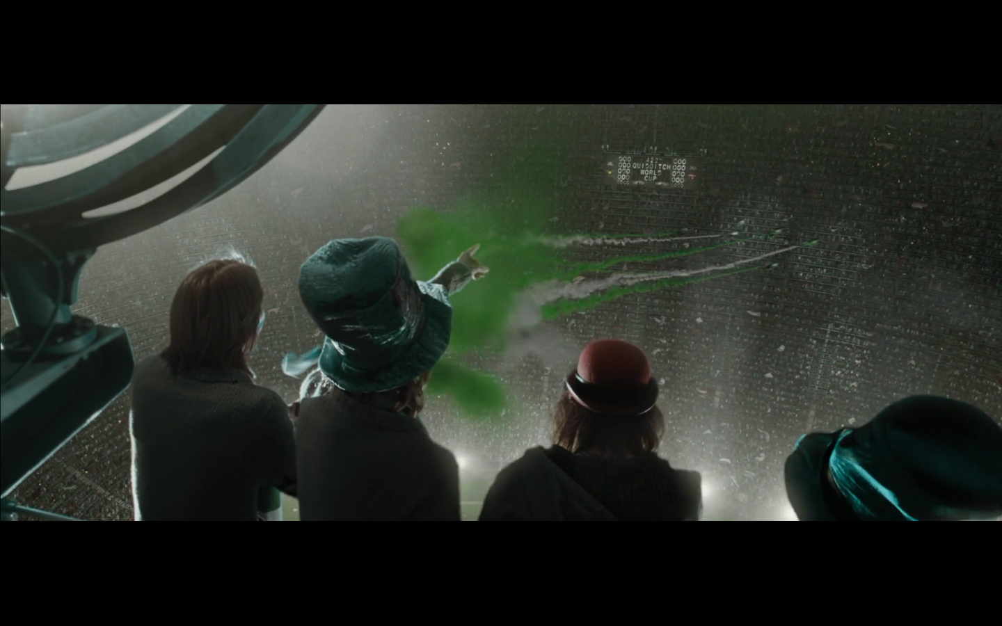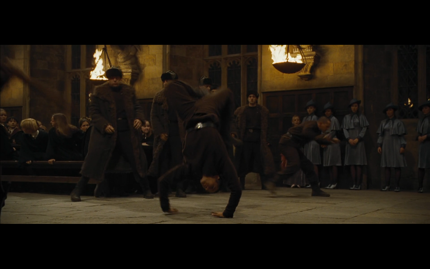 They actually do talk about Beauxbatons wizards and Durmstrang witches in the book, but the movie just did away with that altogether, and even in the book you kinda forget that they’re coed. But this sort of brings me back to the card-flipping at the World Cup. Why do these schools have such panache? They both have their own choreographed acts, and Hogwarts can’t do SHIT. Ever notice how in movies or TV, the foreign groups or visiting teams are presented as uniformed bosses? They always act as a group and do something badass first thing. Makes you feel uncomfortable. But I can’t imagine an American wizarding school showing up and doing anything cool.