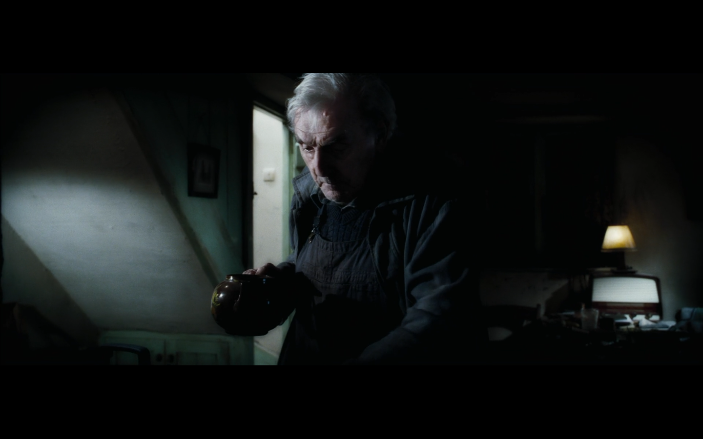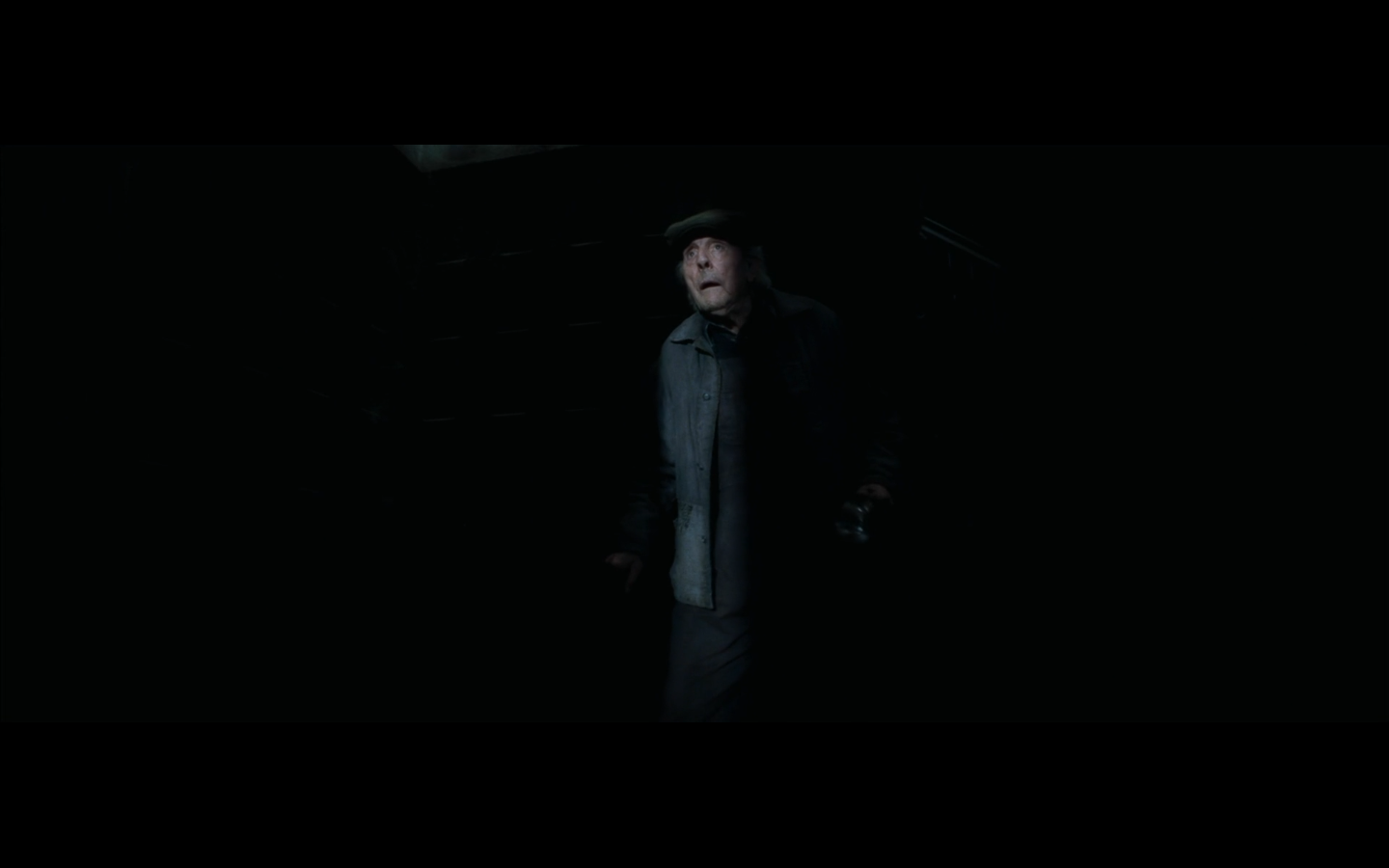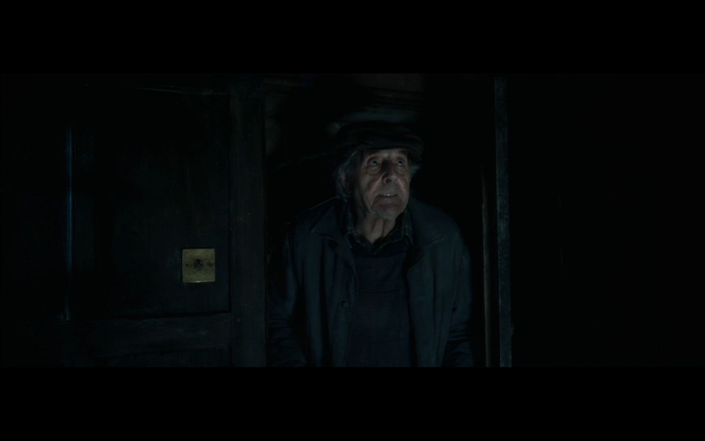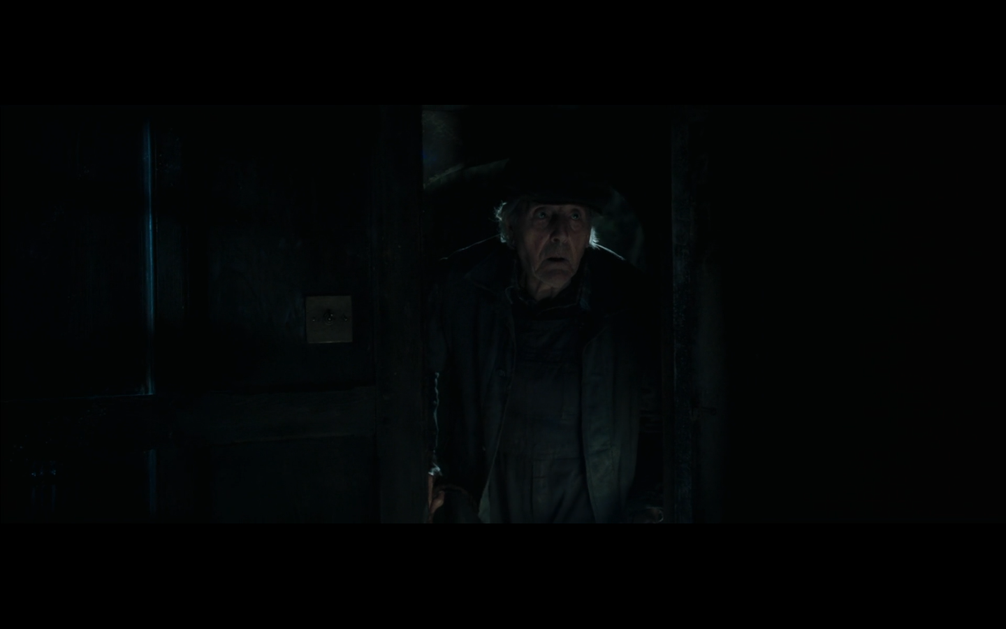 My question is – why bother? He says, “Bloody kids,” before he goes out there. Wouldn’t you just say, “Fuck it,” and leave the kids to their own devices? You’re old. Clearly no one’s been in that house in years – let the kids do what they’re gonna do. It’s probably just drugs and sex anyway. Enjoy your fucking tea.