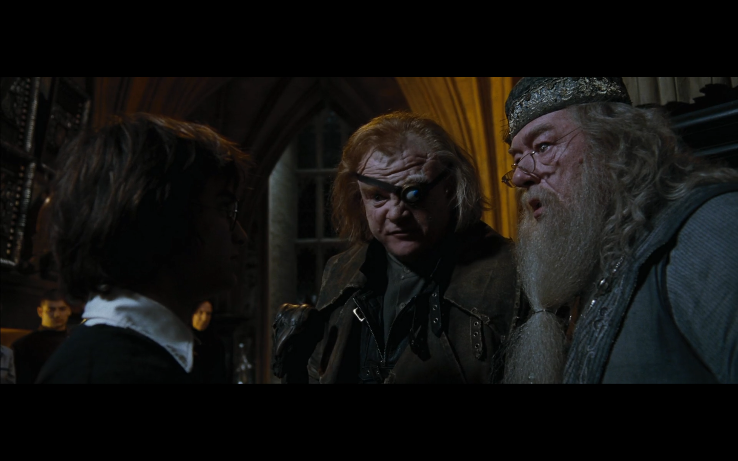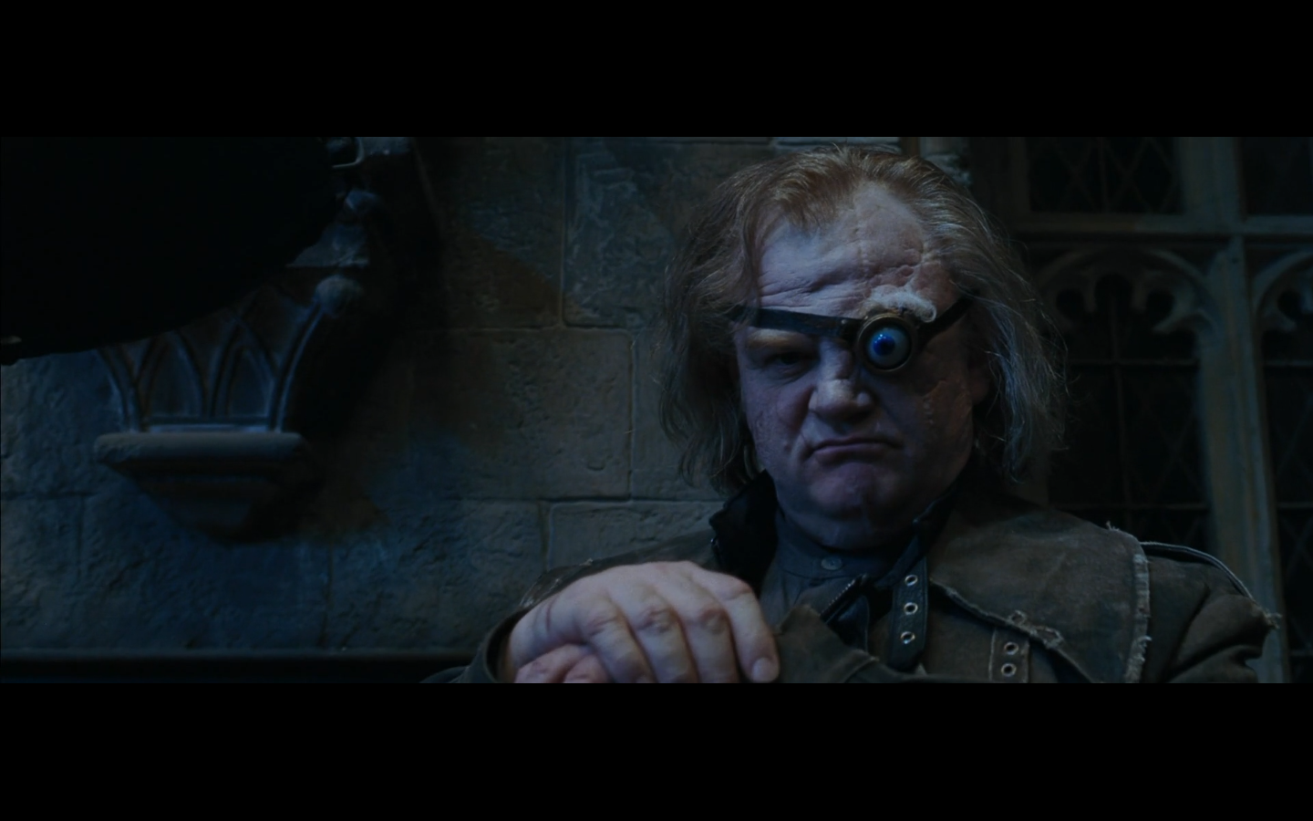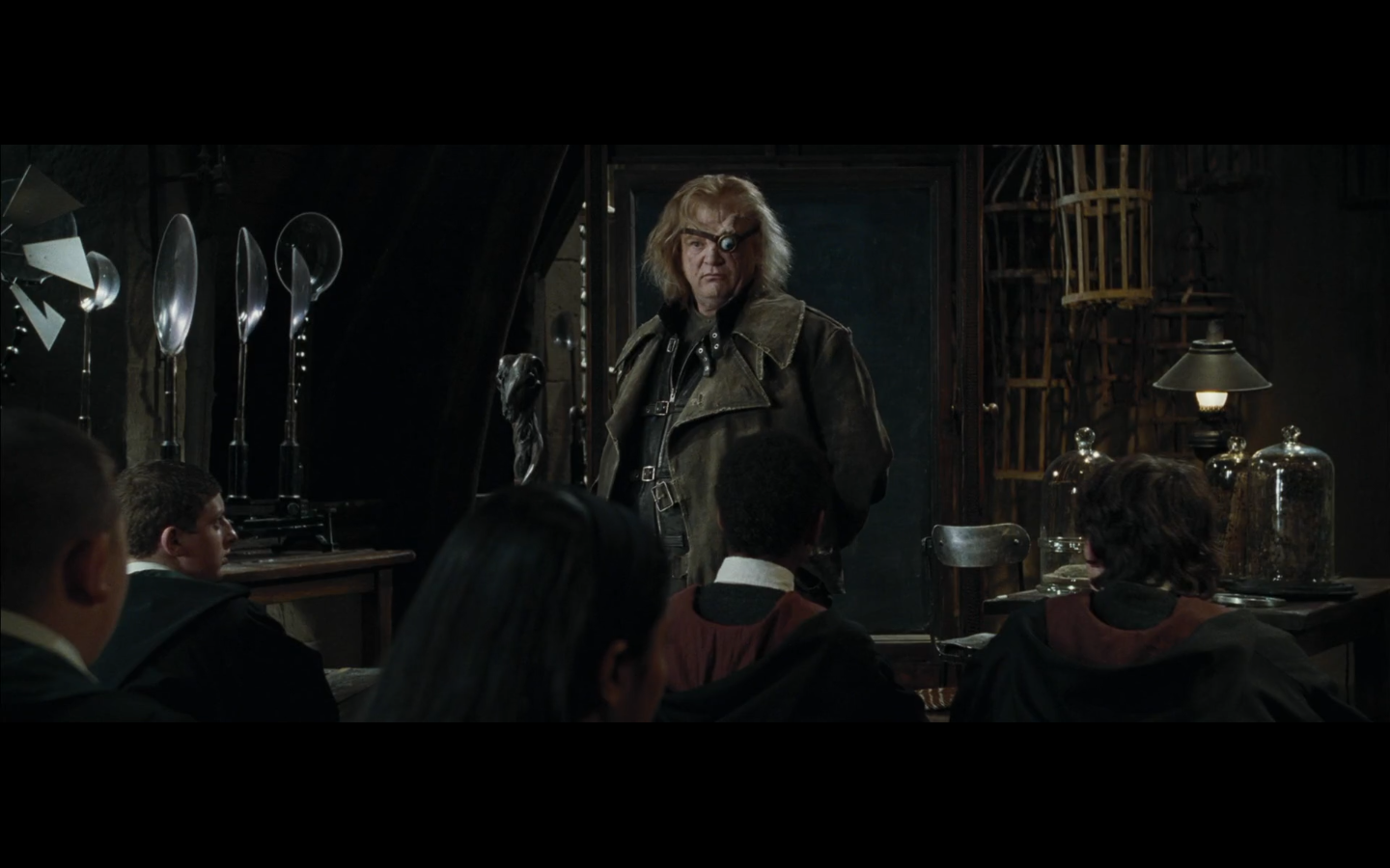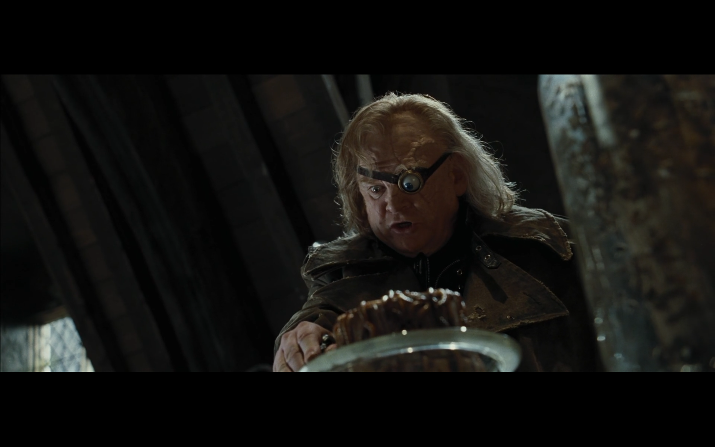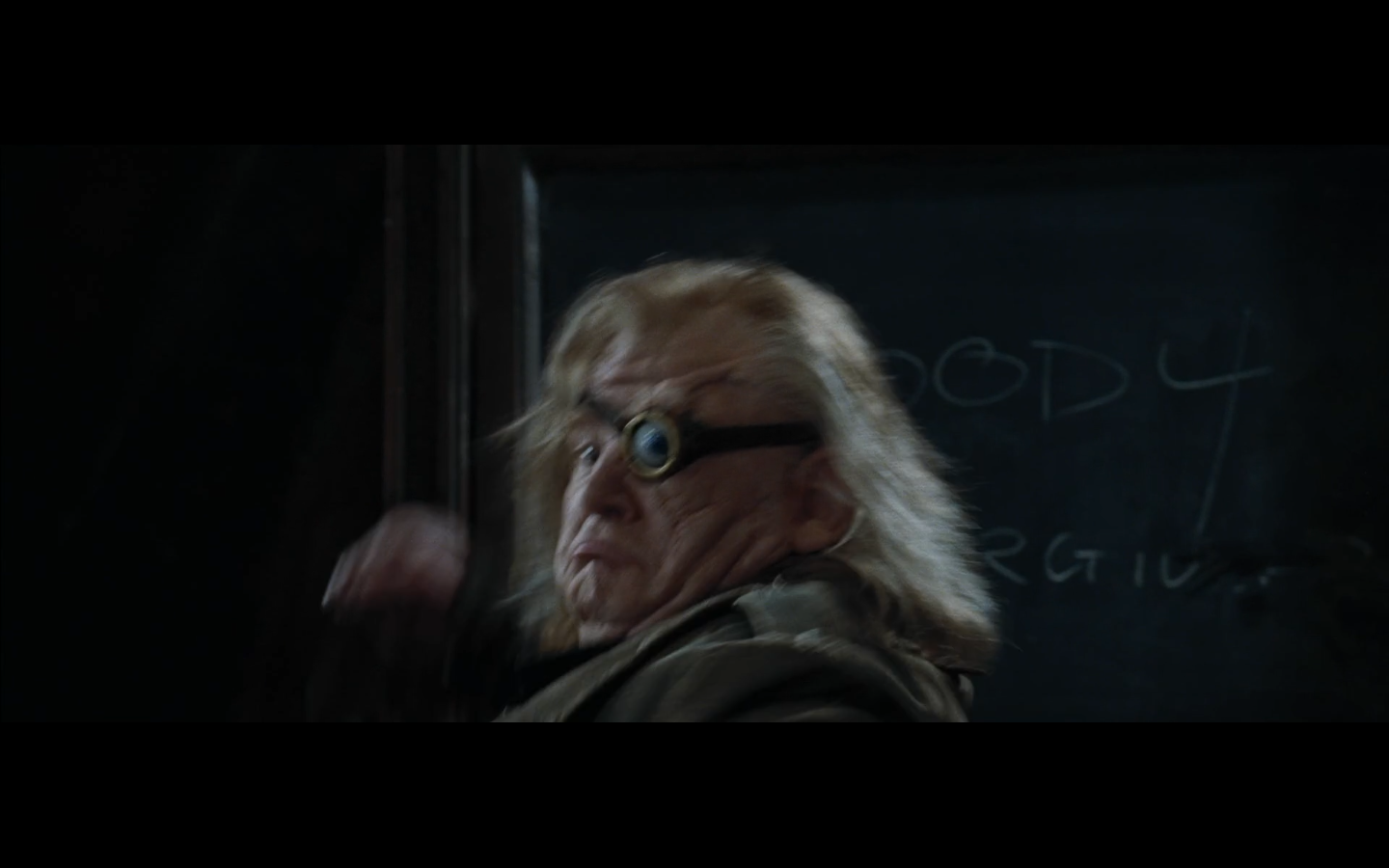 This is one of the best scenes in the franchise so far. We’re getting exposition, but it’s uncomfortable for just about everyone involved. There’s so much emotion going on here, and Moody’s messing with the whole class. I like it when someone challenges your rosy, little worldview and fucks up your day. That’s my favorite thing.