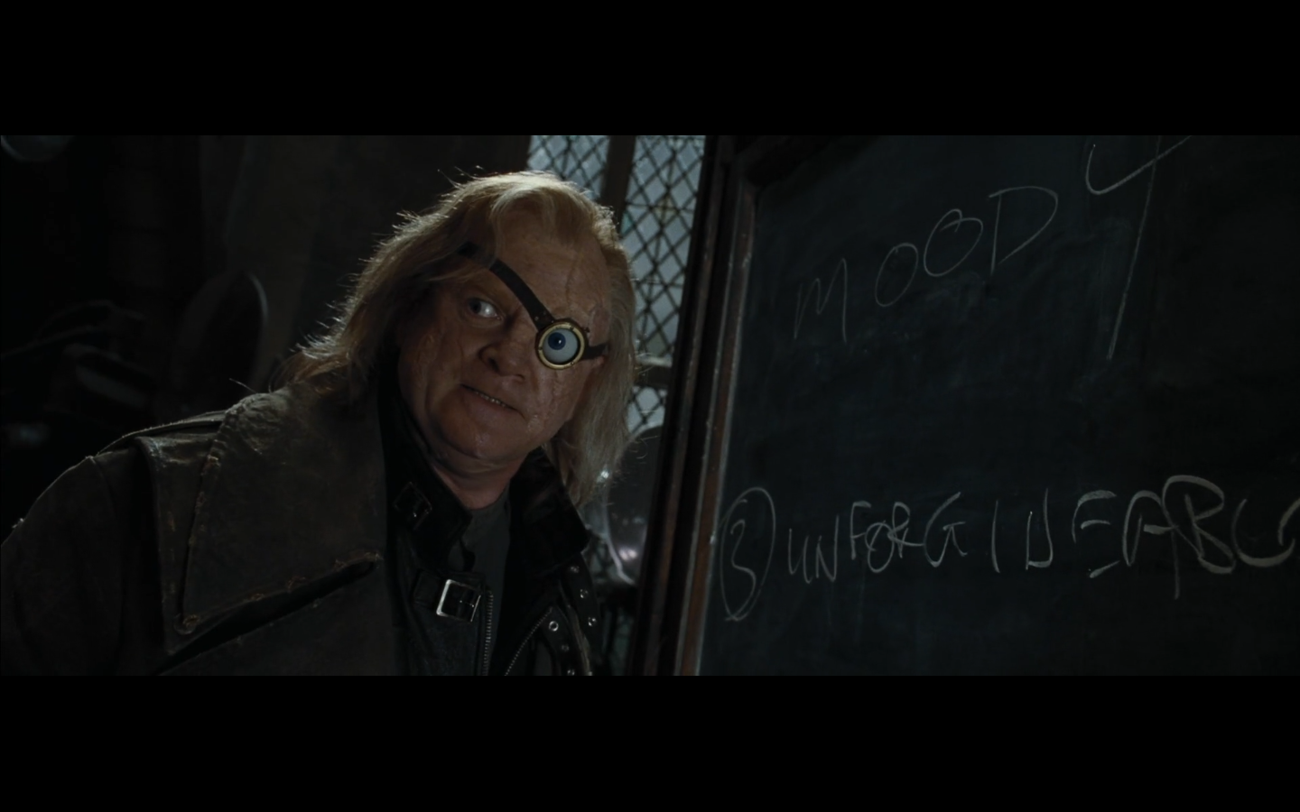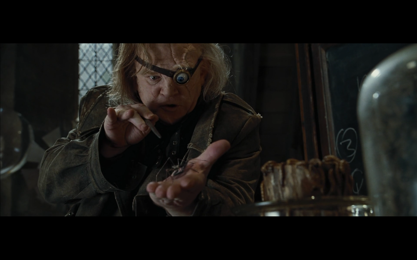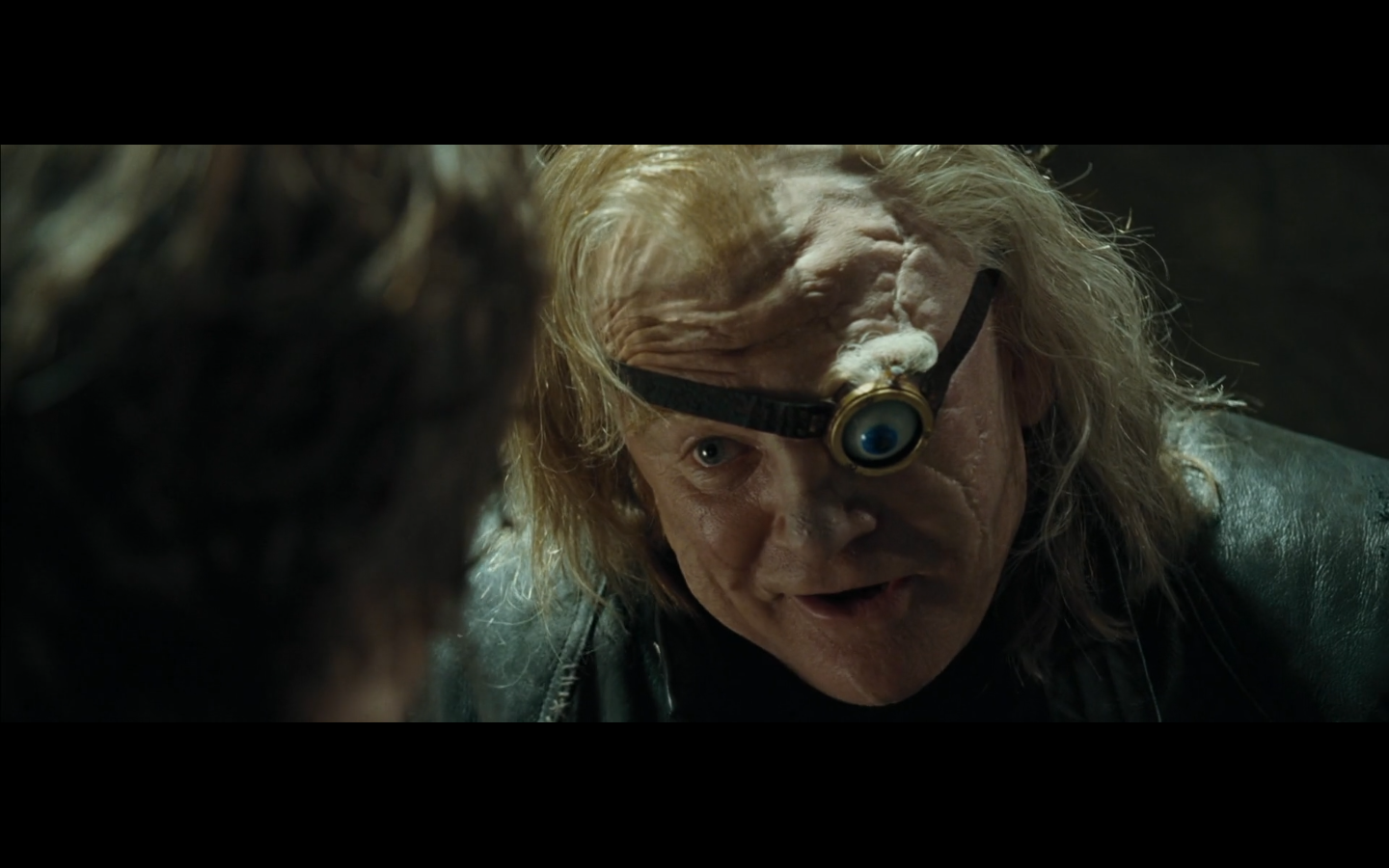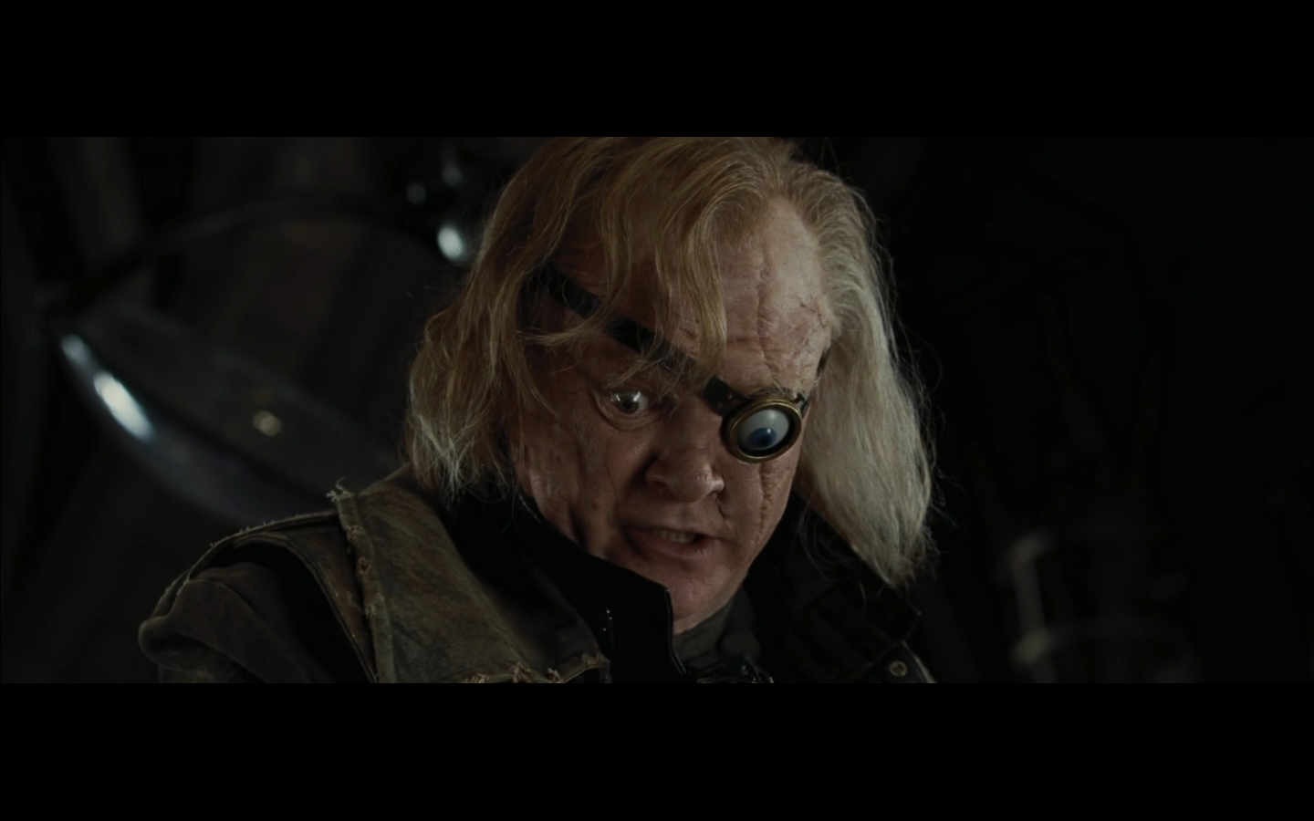 This is one of the best scenes in the franchise so far. We’re getting exposition, but it’s uncomfortable for just about everyone involved. There’s so much emotion going on here, and Moody’s messing with the whole class. I like it when someone challenges your rosy, little worldview and fucks up your day. That’s my favorite thing.