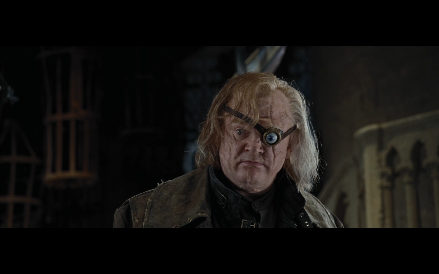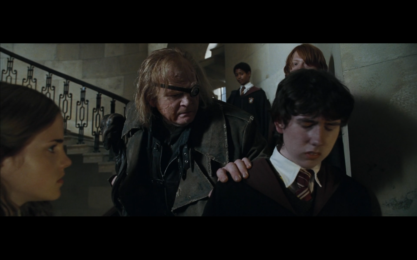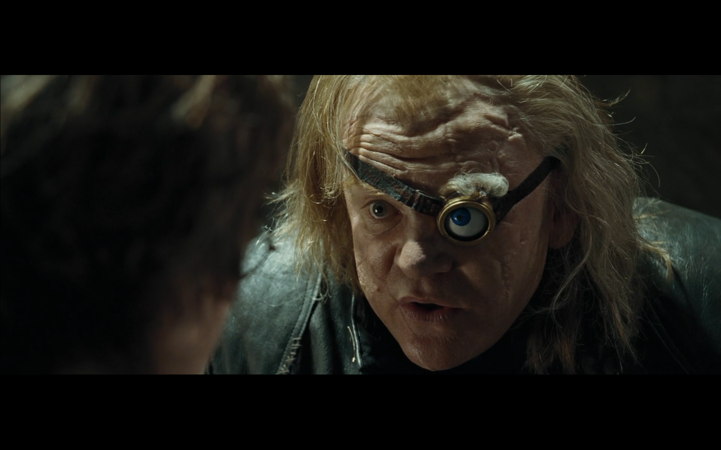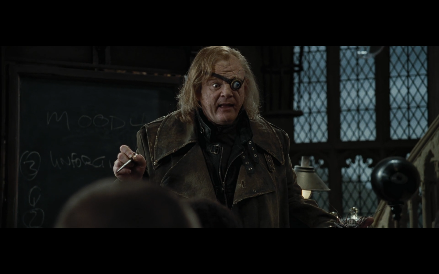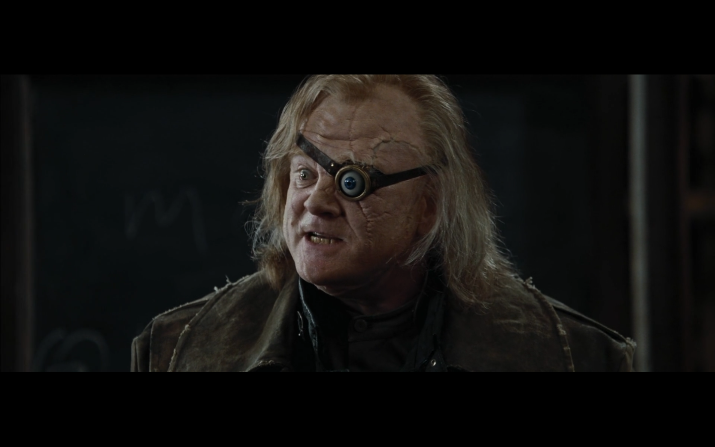 This is one of the best scenes in the franchise so far. We’re getting exposition, but it’s uncomfortable for just about everyone involved. There’s so much emotion going on here, and Moody’s messing with the whole class. I like it when someone challenges your rosy, little worldview and fucks up your day. That’s my favorite thing.