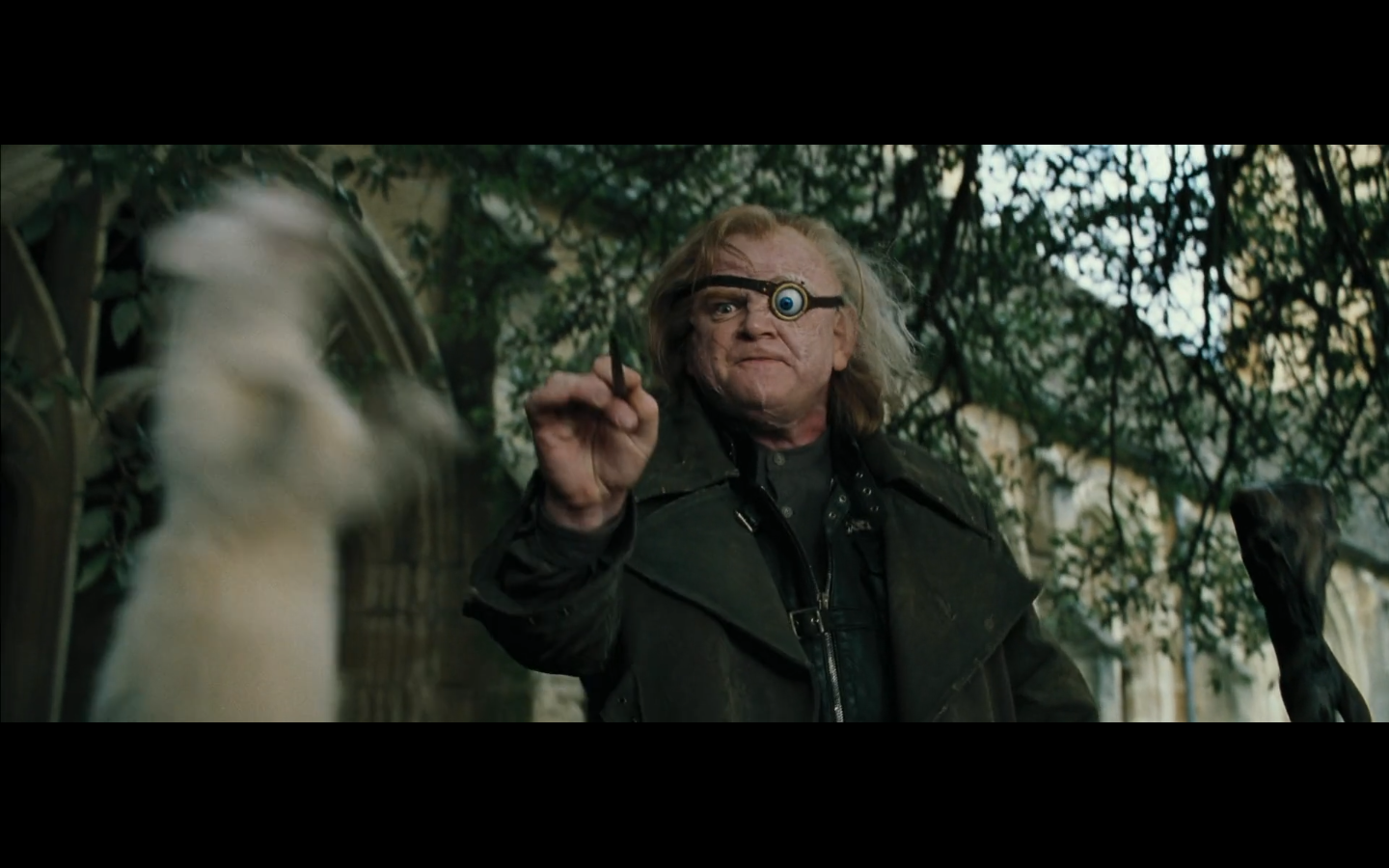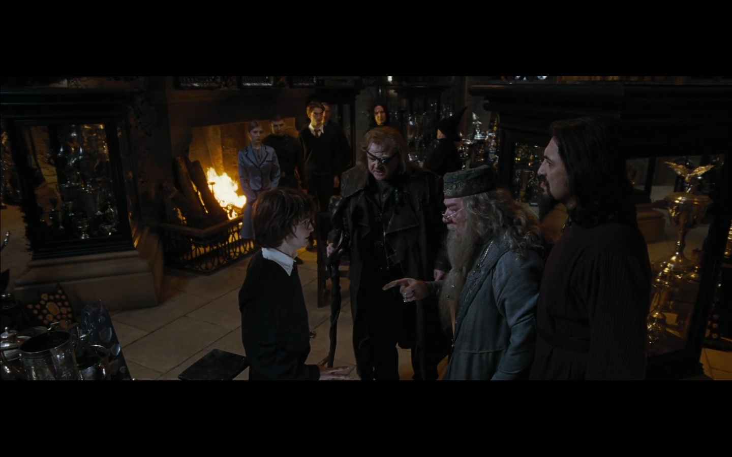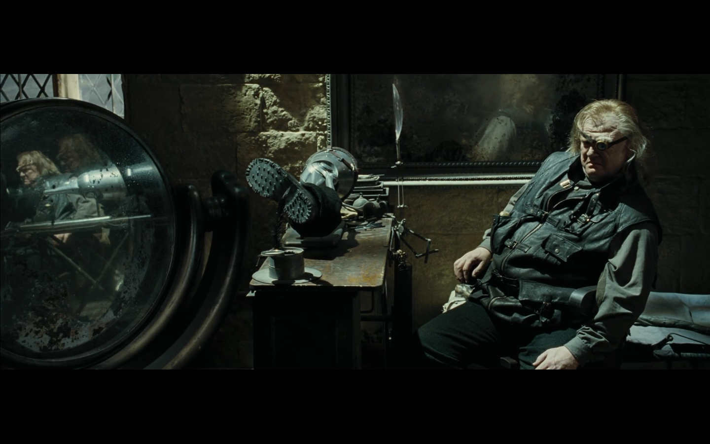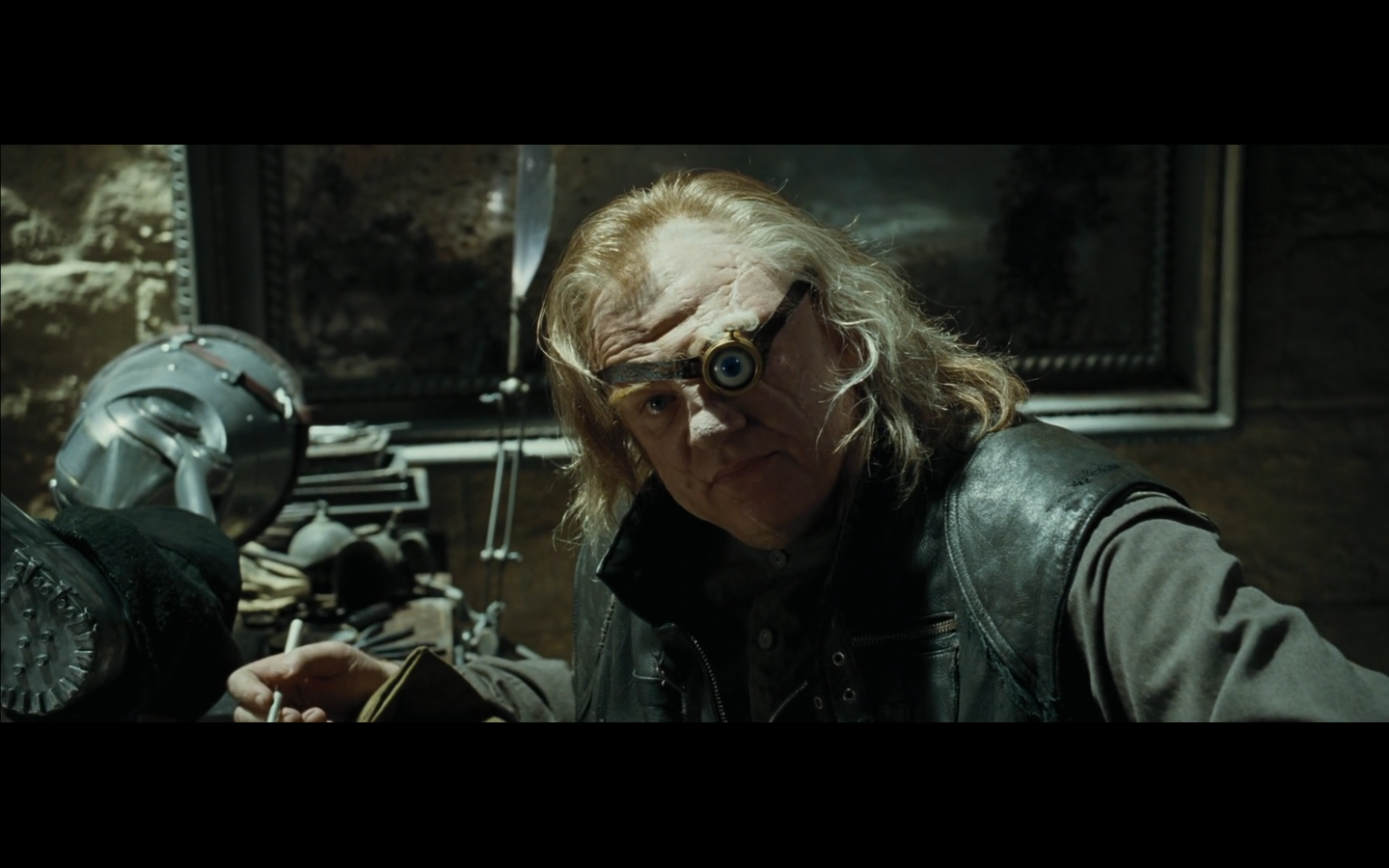 This is one of the best scenes in the franchise so far. We’re getting exposition, but it’s uncomfortable for just about everyone involved. There’s so much emotion going on here, and Moody’s messing with the whole class. I like it when someone challenges your rosy, little worldview and fucks up your day. That’s my favorite thing.