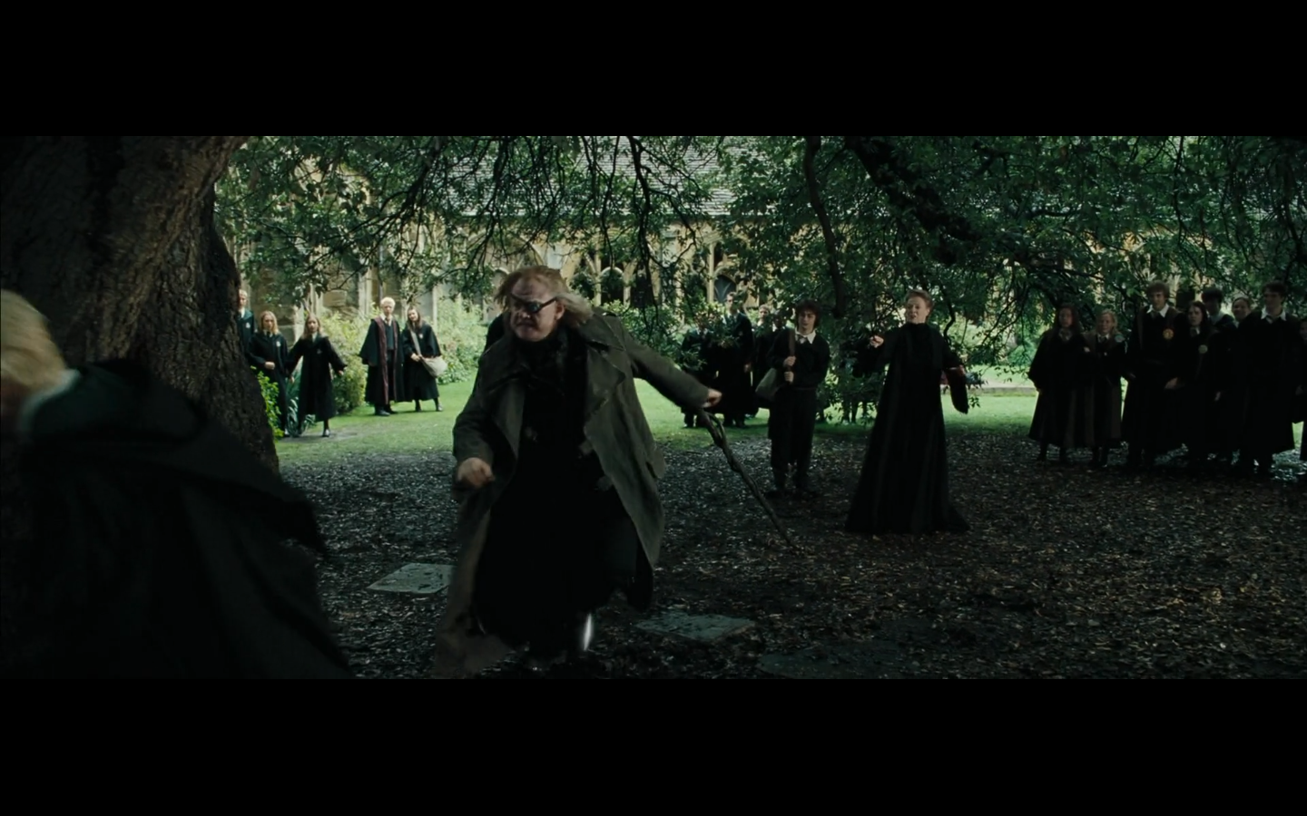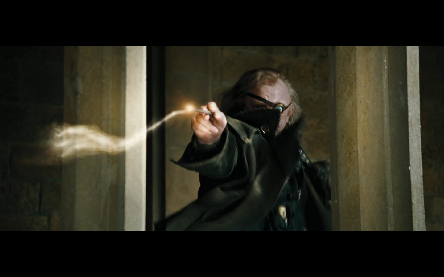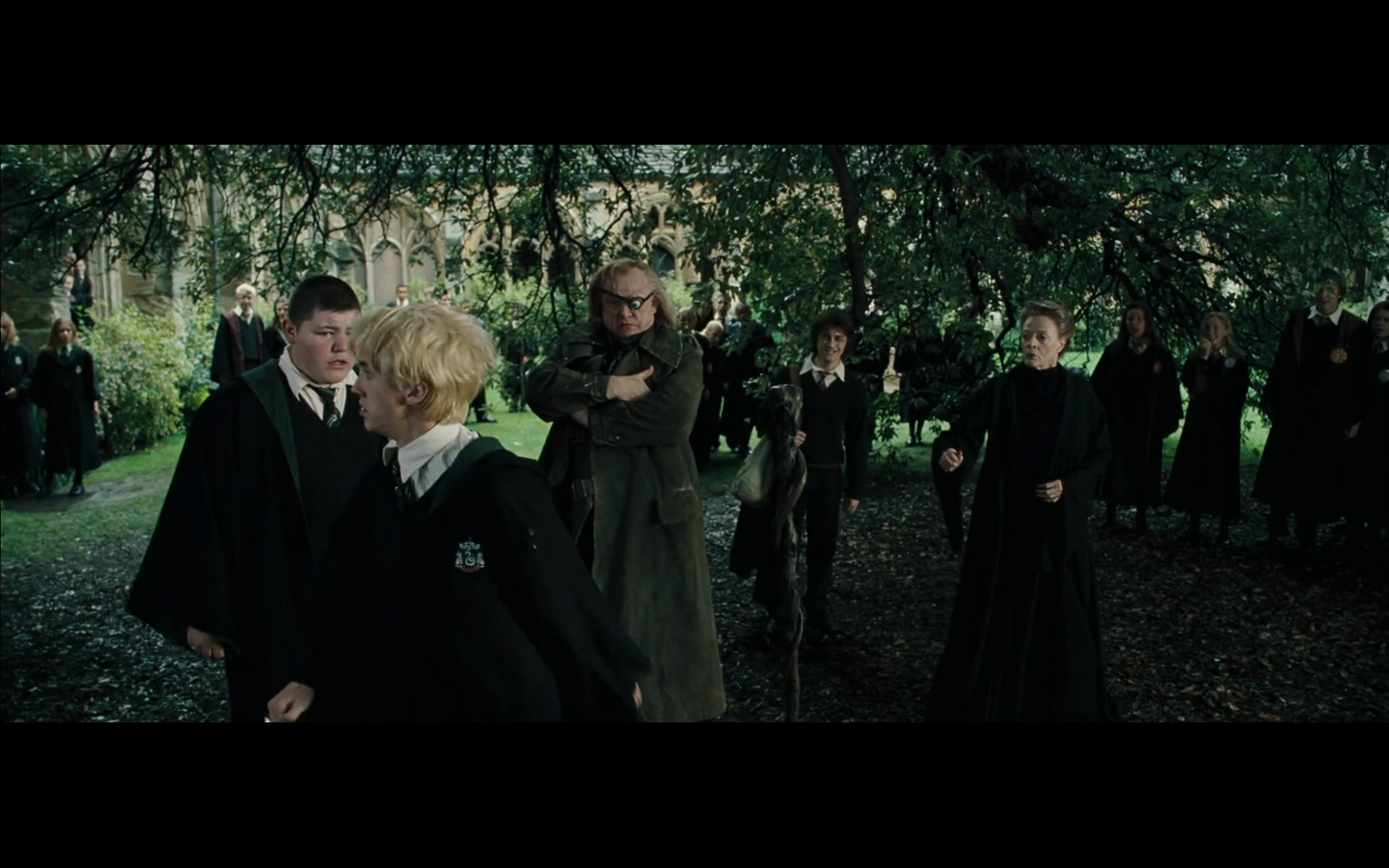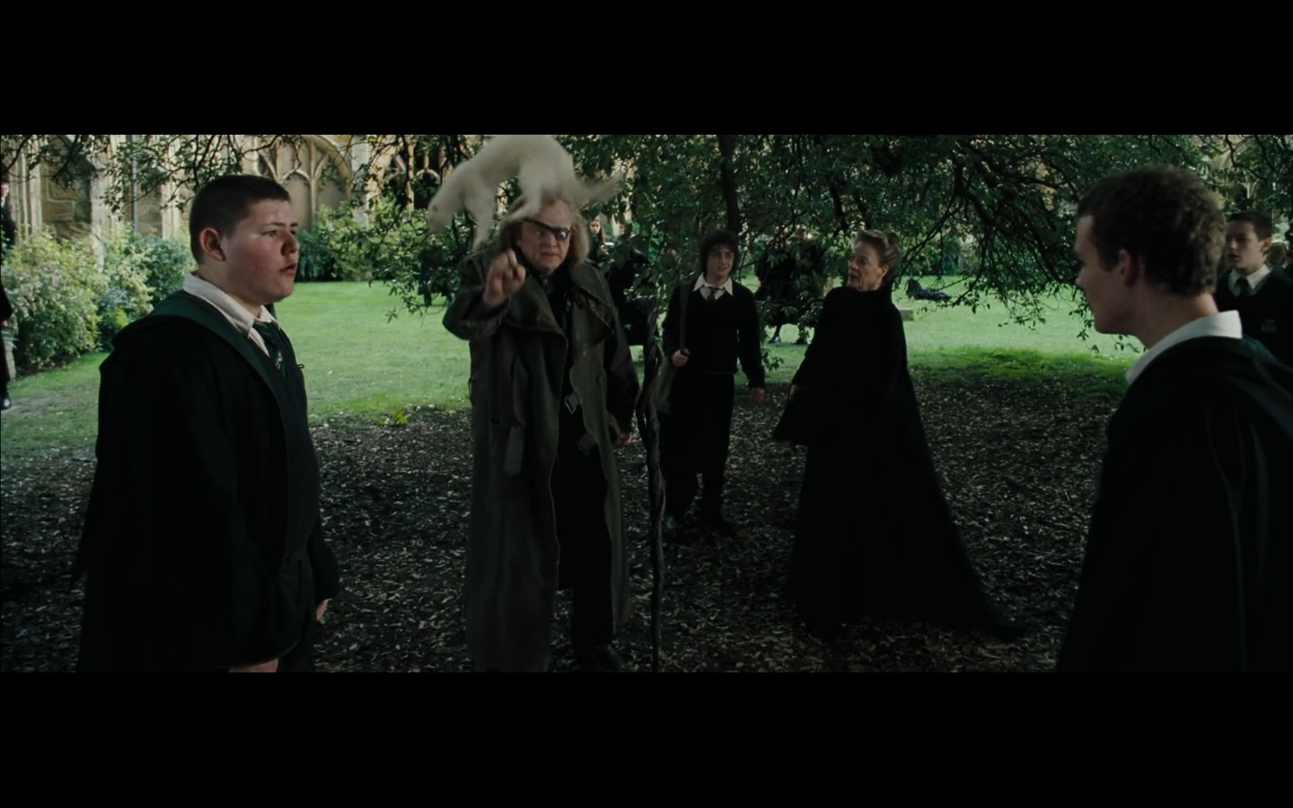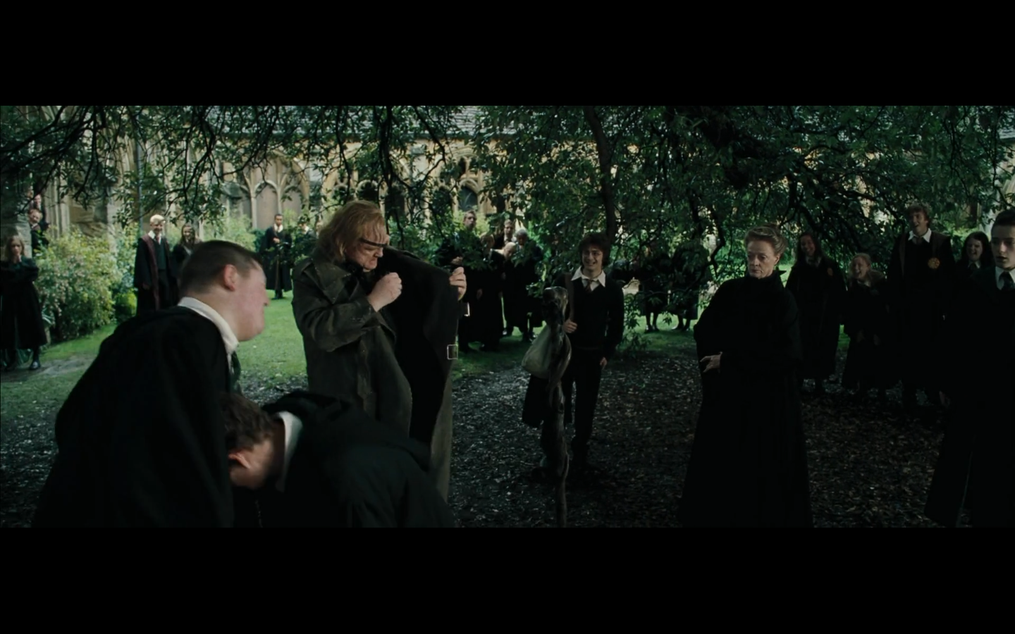 This is one of the best scenes in the franchise so far. We’re getting exposition, but it’s uncomfortable for just about everyone involved. There’s so much emotion going on here, and Moody’s messing with the whole class. I like it when someone challenges your rosy, little worldview and fucks up your day. That’s my favorite thing.