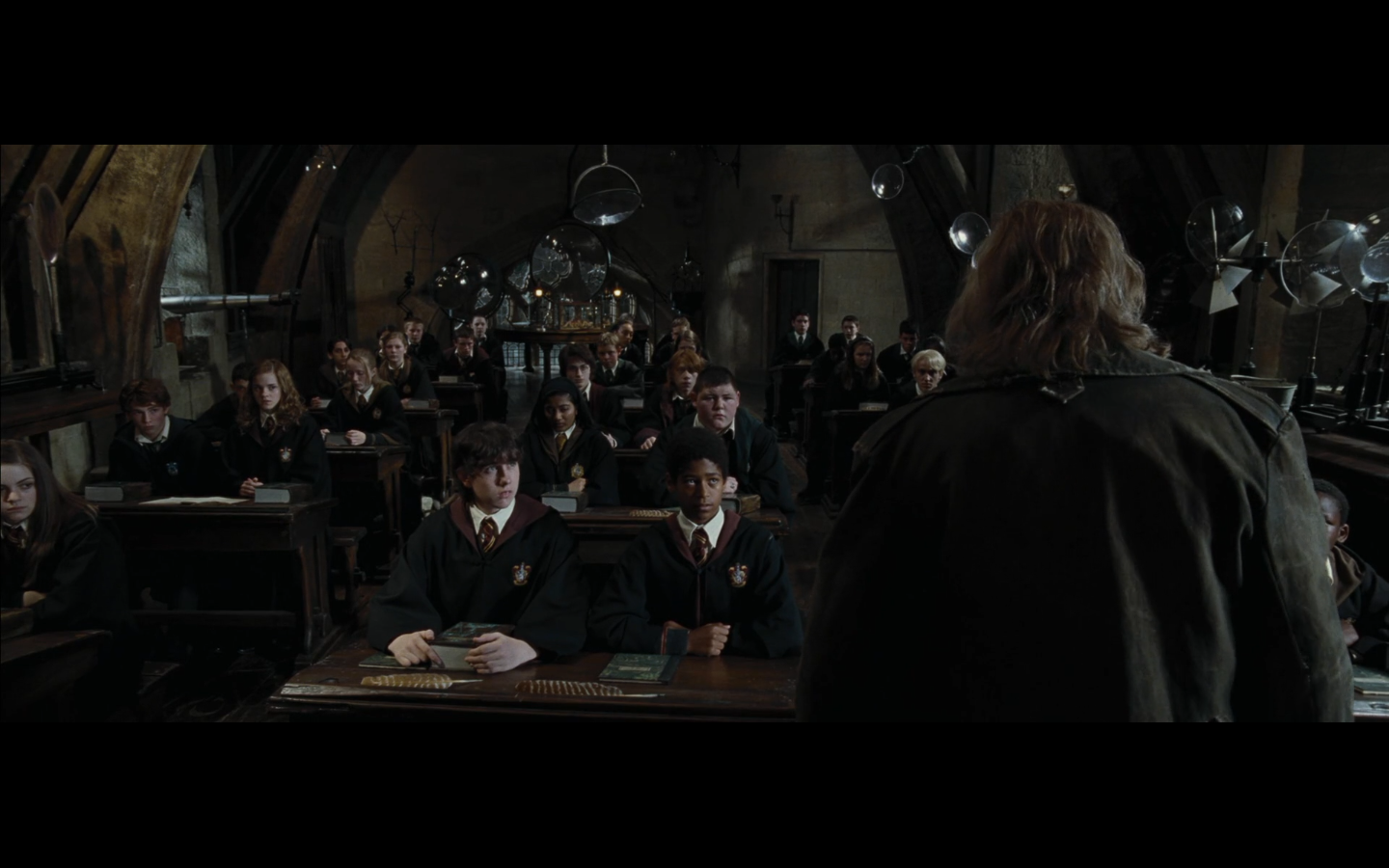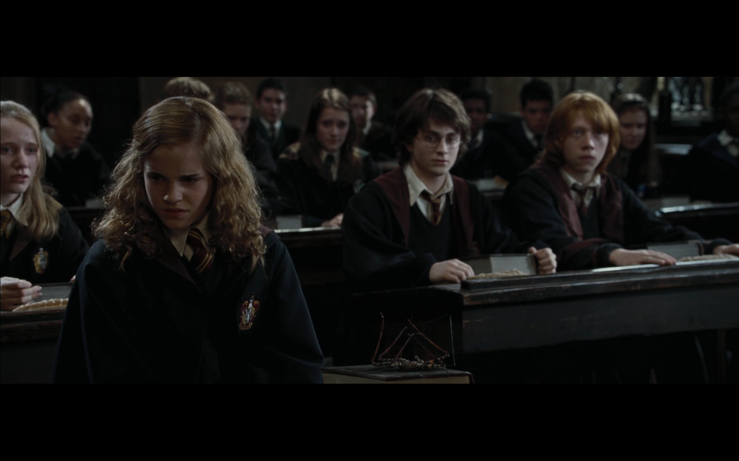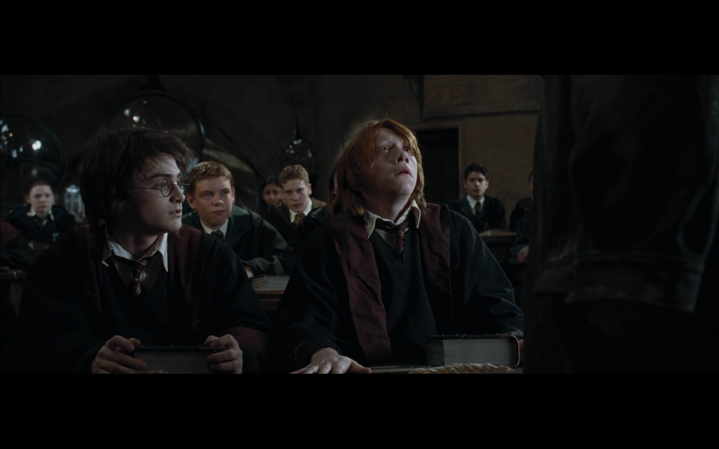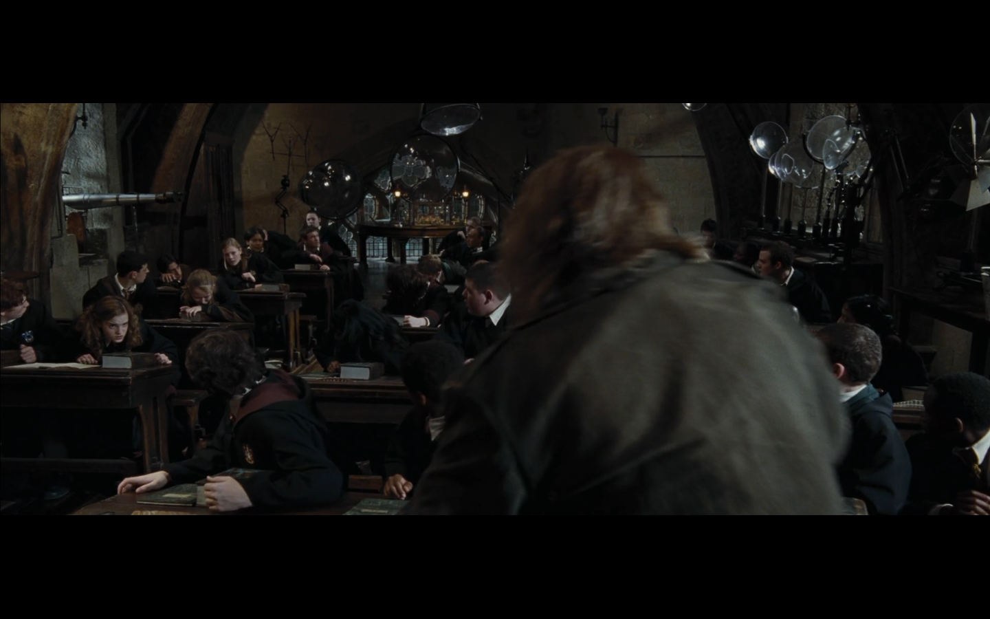 This is one of the best scenes in the franchise so far. We’re getting exposition, but it’s uncomfortable for just about everyone involved. There’s so much emotion going on here, and Moody’s messing with the whole class. I like it when someone challenges your rosy, little worldview and fucks up your day. That’s my favorite thing.