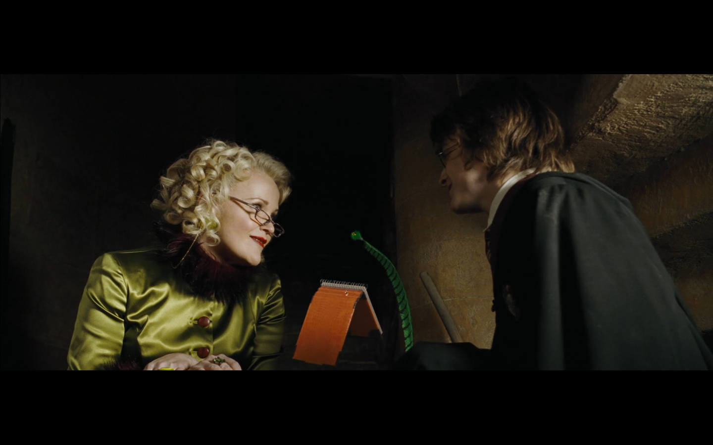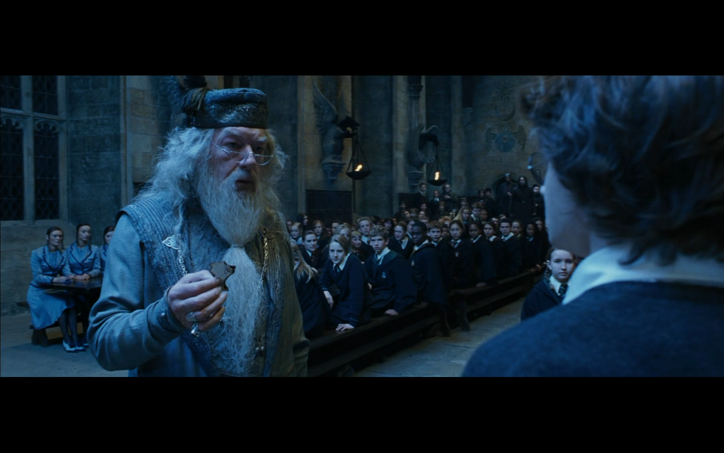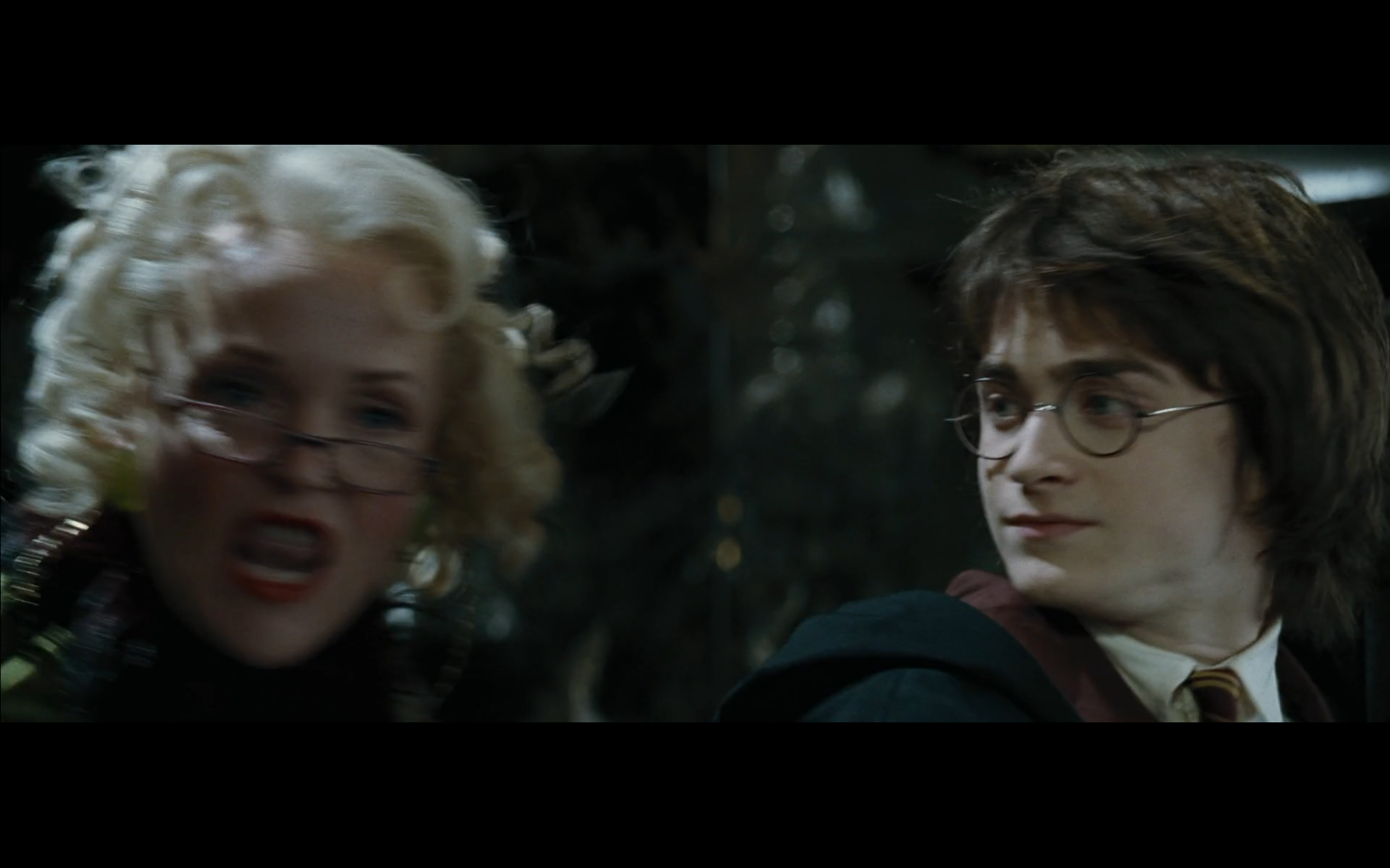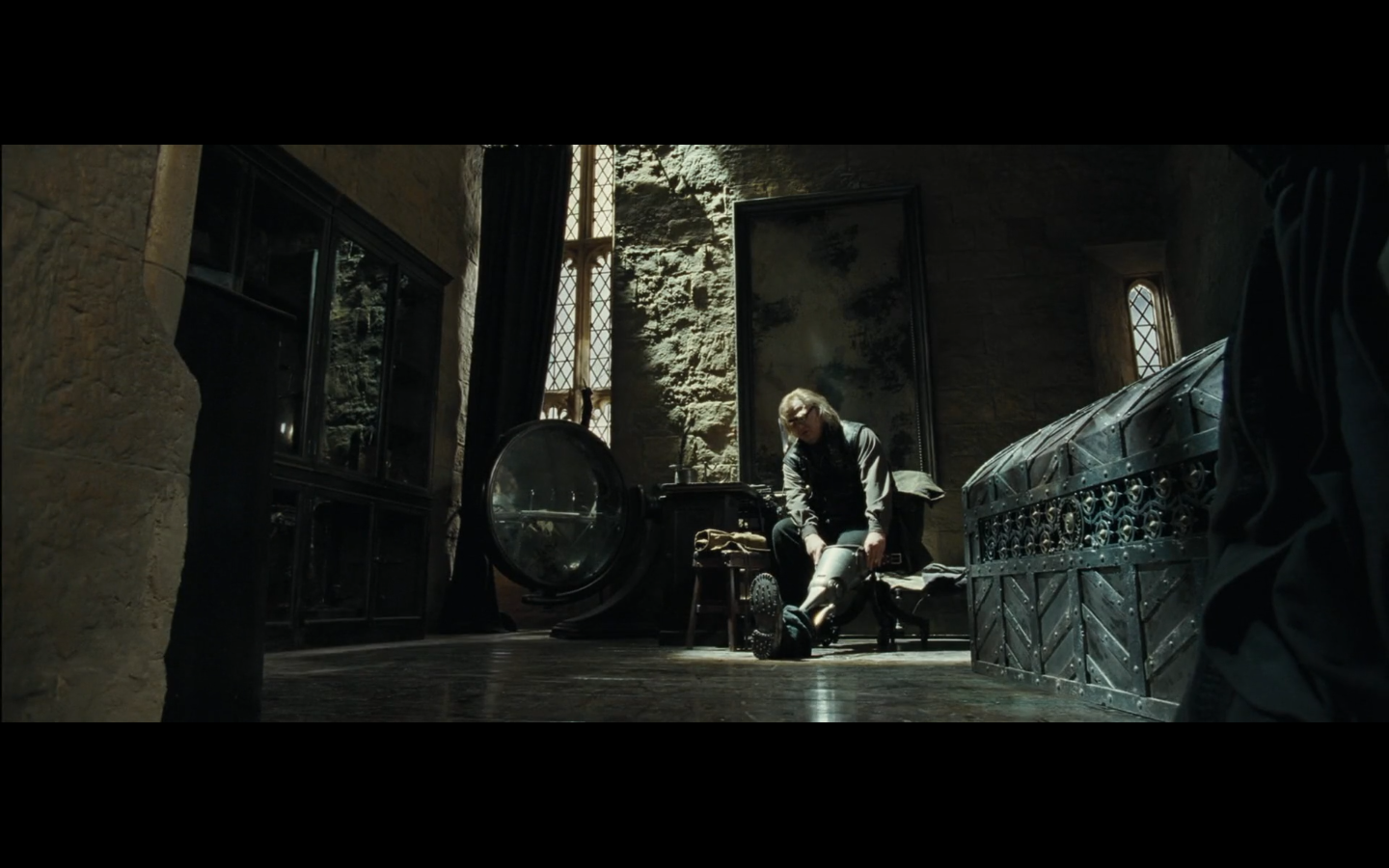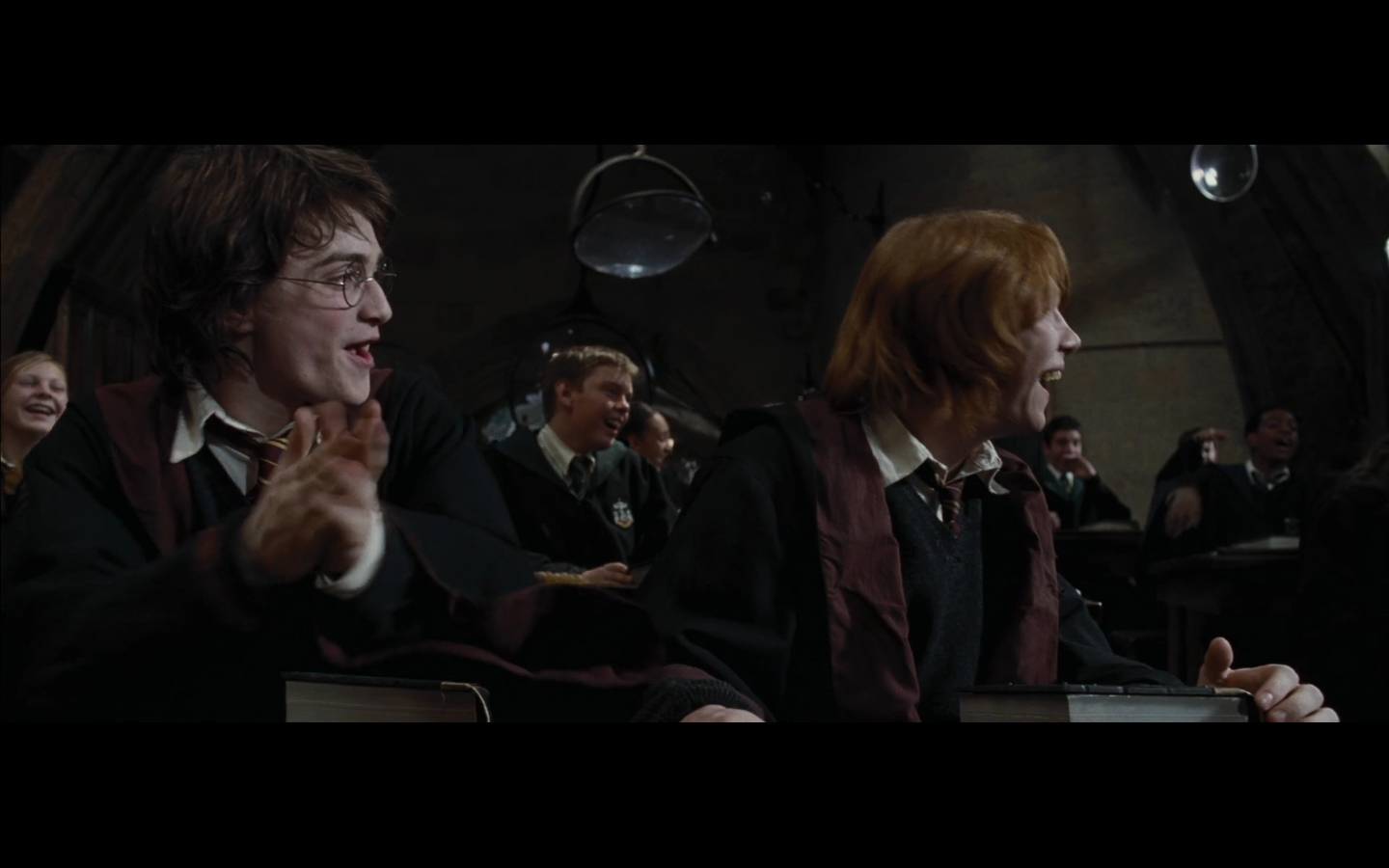This is one of the best scenes in the franchise so far. We’re getting exposition, but it’s uncomfortable for just about everyone involved. There’s so much emotion going on here, and Moody’s messing with the whole class. I like it when someone challenges your rosy, little worldview and fucks up your day. That’s my favorite thing.
