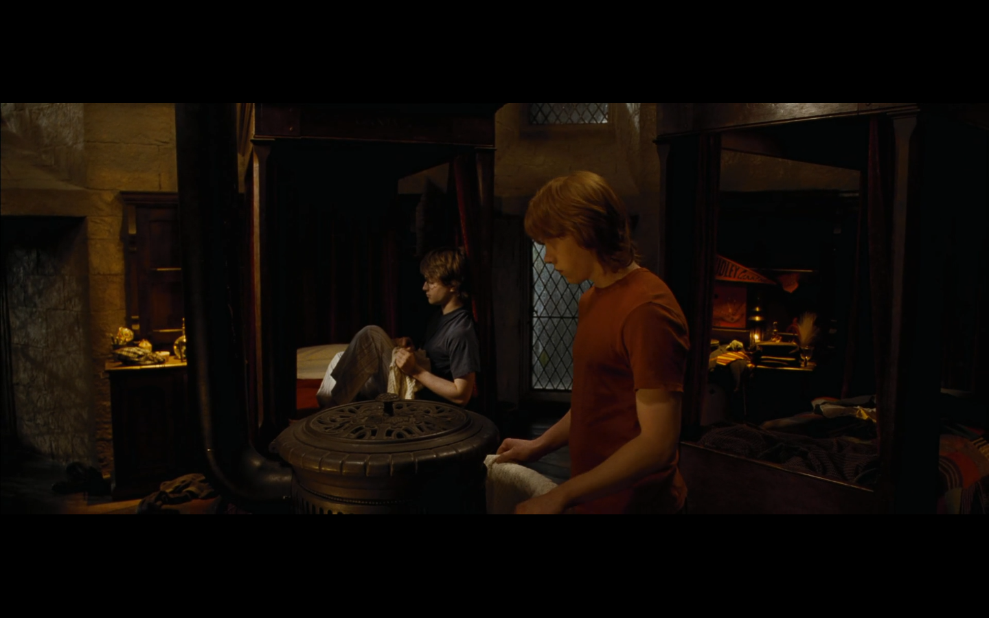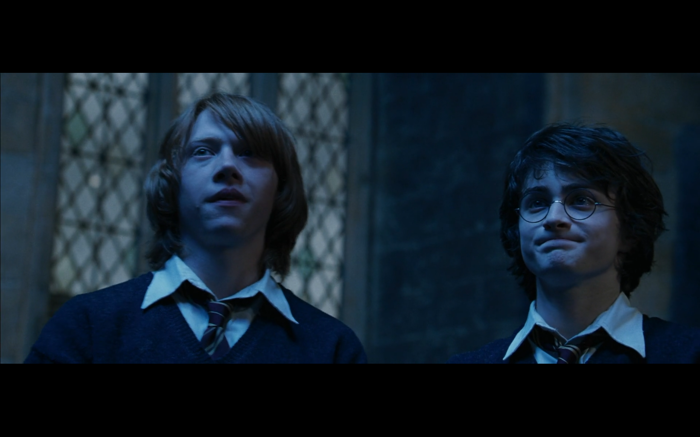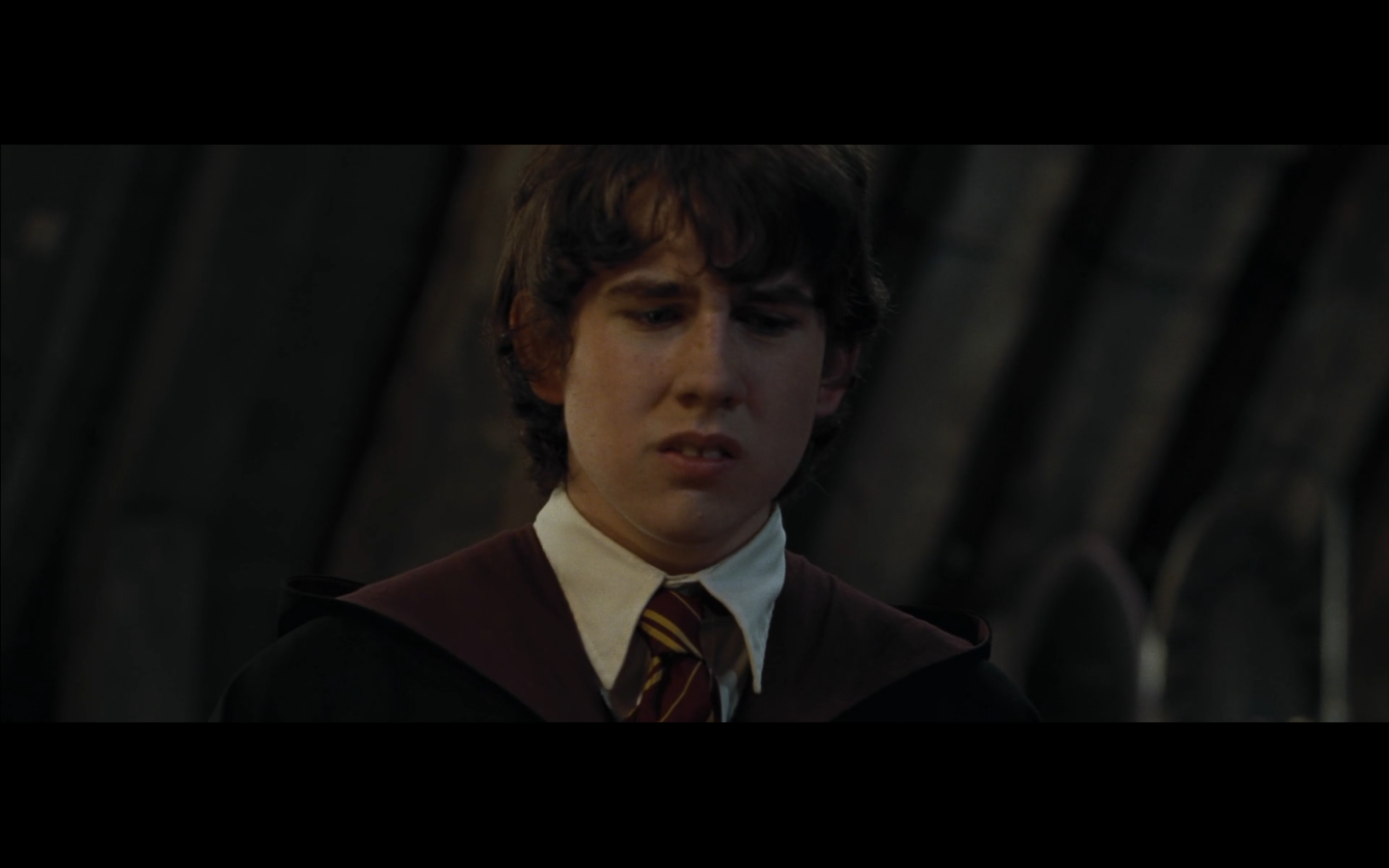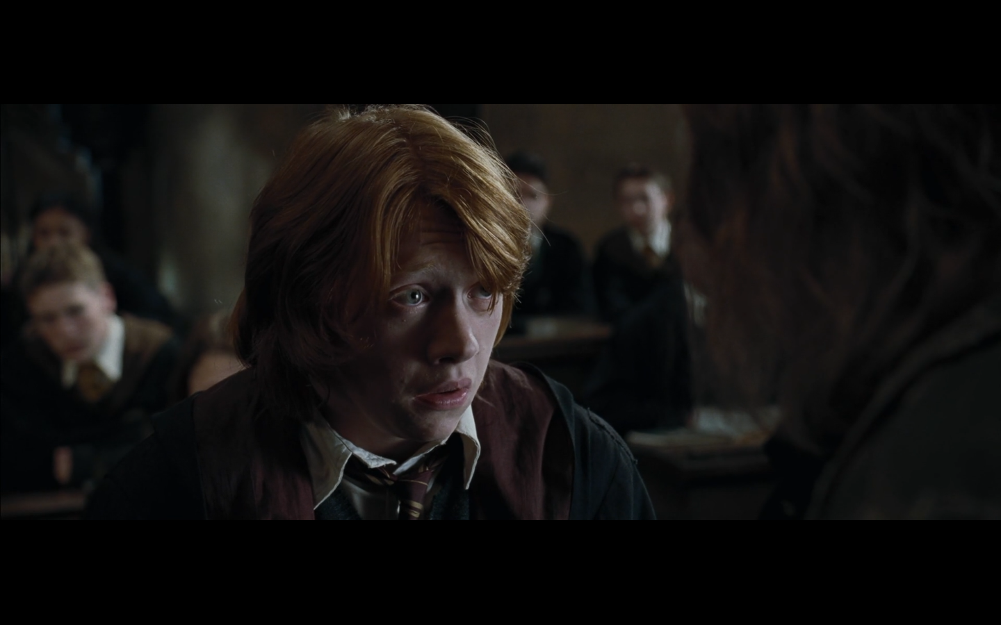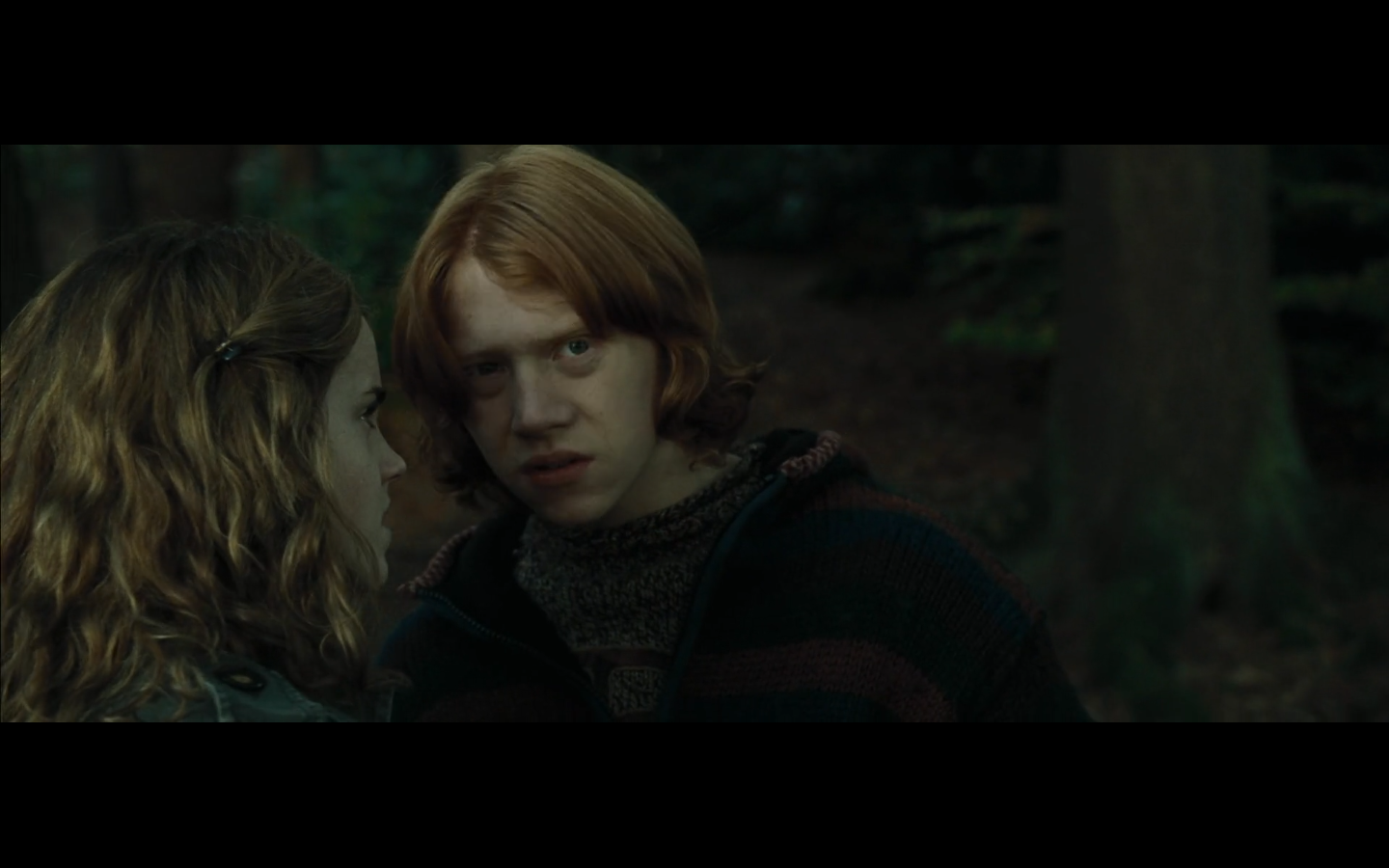 Harry just goes up to confront Ron, who looks like Frodo after he’s held the ring for too long.