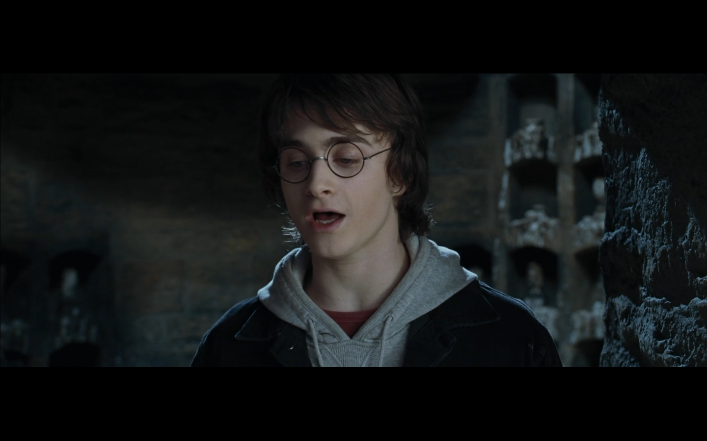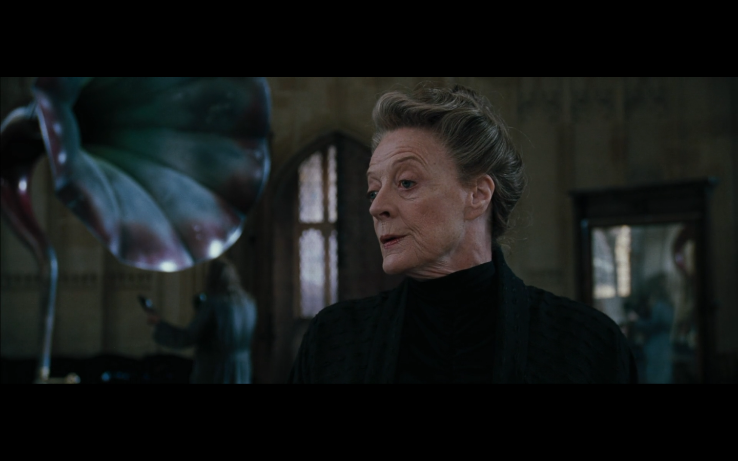 My favorite thing about this scene is that we can only hear Dumbledore giving his speech in the background. I’m glad we don’t have to see it like all the other times.