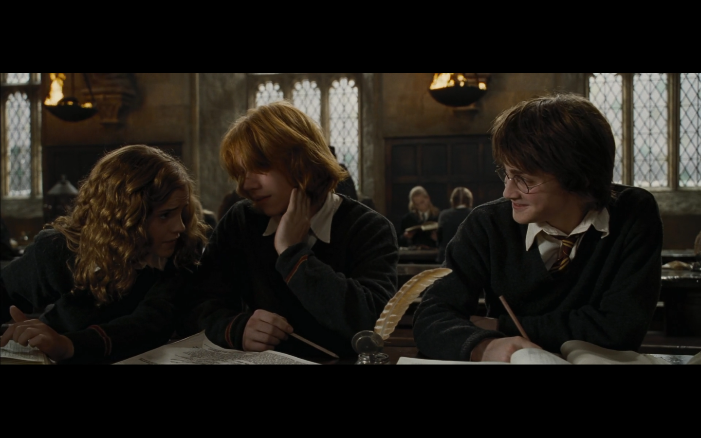 I love that this is all the same set. You can see this shot and go, “That spot where Hermione punched Draco in the face.”