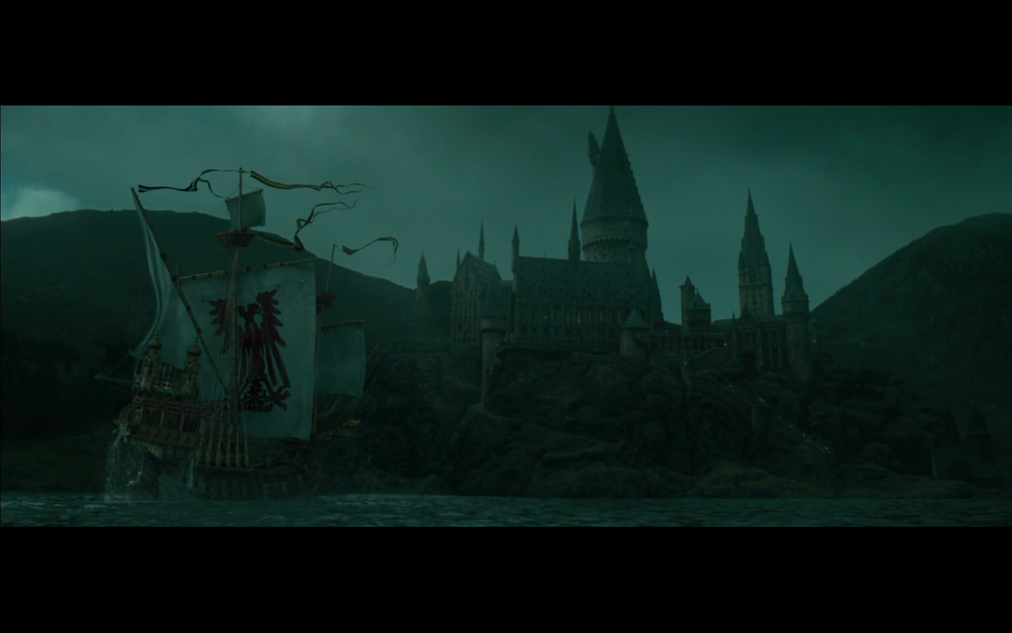 So, I’m just gonna say, before we get started, that there are quite a few Hogwarts exterior shots in this movie that I really like. But I didn’t want to waste a spot on them because we know how beautiful the school looks. But I did want to mention them, because I do love them. For instance, this shot and this shot really show how medieval they made the castle look in this film, which is something it really never looks like in any of the other ones. You really get the stone castle sense in this one, which really helps the overall aesthetic. And then this shot I love for two reasons. One, it has a pirate ship in it. I’ll always find a way to work in a pirate ship. And two — those steps. I love those steps. I said it in the article. So shout out to those. Then this one is just another pirate ship shot. And a medieval shot. And this one — I just like the angle. Very unique angle to take. Those should be encouraged always.