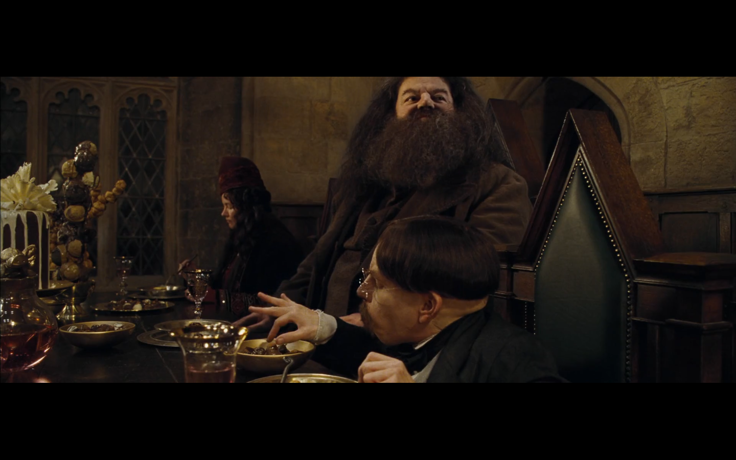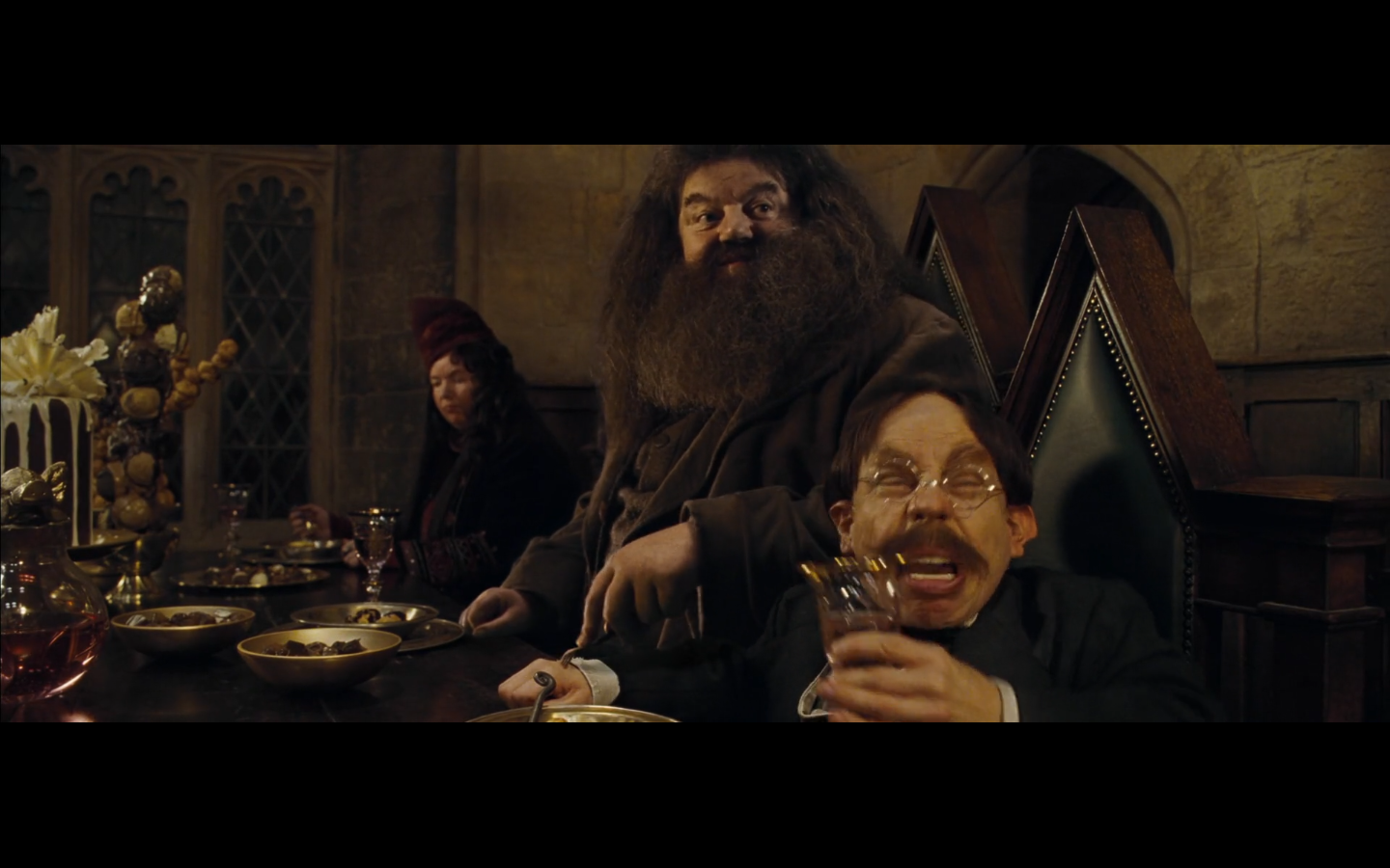 Colin and I both chose this, because at this point, we know what we both enjoy. And that’s Filius Flitwick (baddest motherfucker at Hogwarts). I ended up choosing the first image, since I love the whole, “Yoink!” thing going on. And Colin chose the second, because it’s a shot of Hagrid stabbing Flitwick in the hand with a fork with a goofy grin on his face the whole time.
