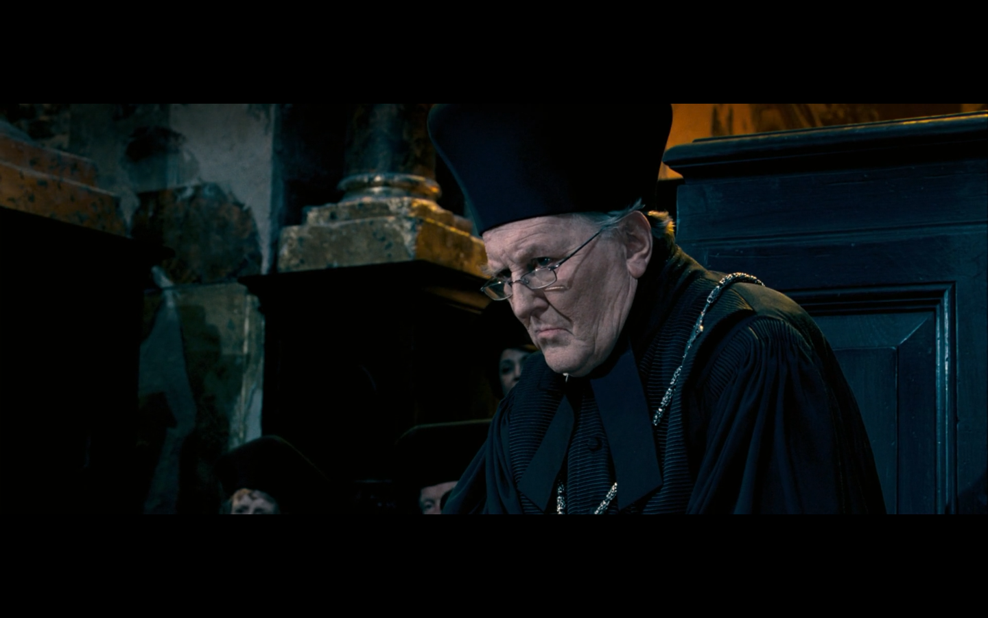 Funny how Fudge’s delivery of this line is exactly the same as Ian Holm’s in Fellowship when he says, “I’m not at home!”