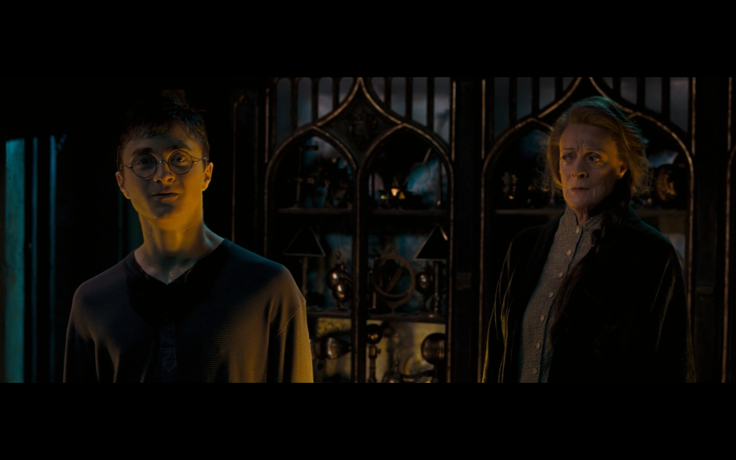 So, just to talk through this out loud — Voldemort has the connection to Harry’s mind because Harry’s a horcrux. It’s debatable as to whether or not he’s aware of it as of yet. We know he’s aware of it later on, because he’s gonna send the false vision of Sirius to set up the end of the movie. Is it ever made clear just when he figures it out? We know he clearly does, because Harry uses it against him at one point and there’s a passing mention in the next book about how his scar stopped hurting because Voldemort started protecting against the two way street there. I feel like there’s an interesting subplot here that’s just completely ignored. Just imagine this whole situation from Voldemort’s perspective.