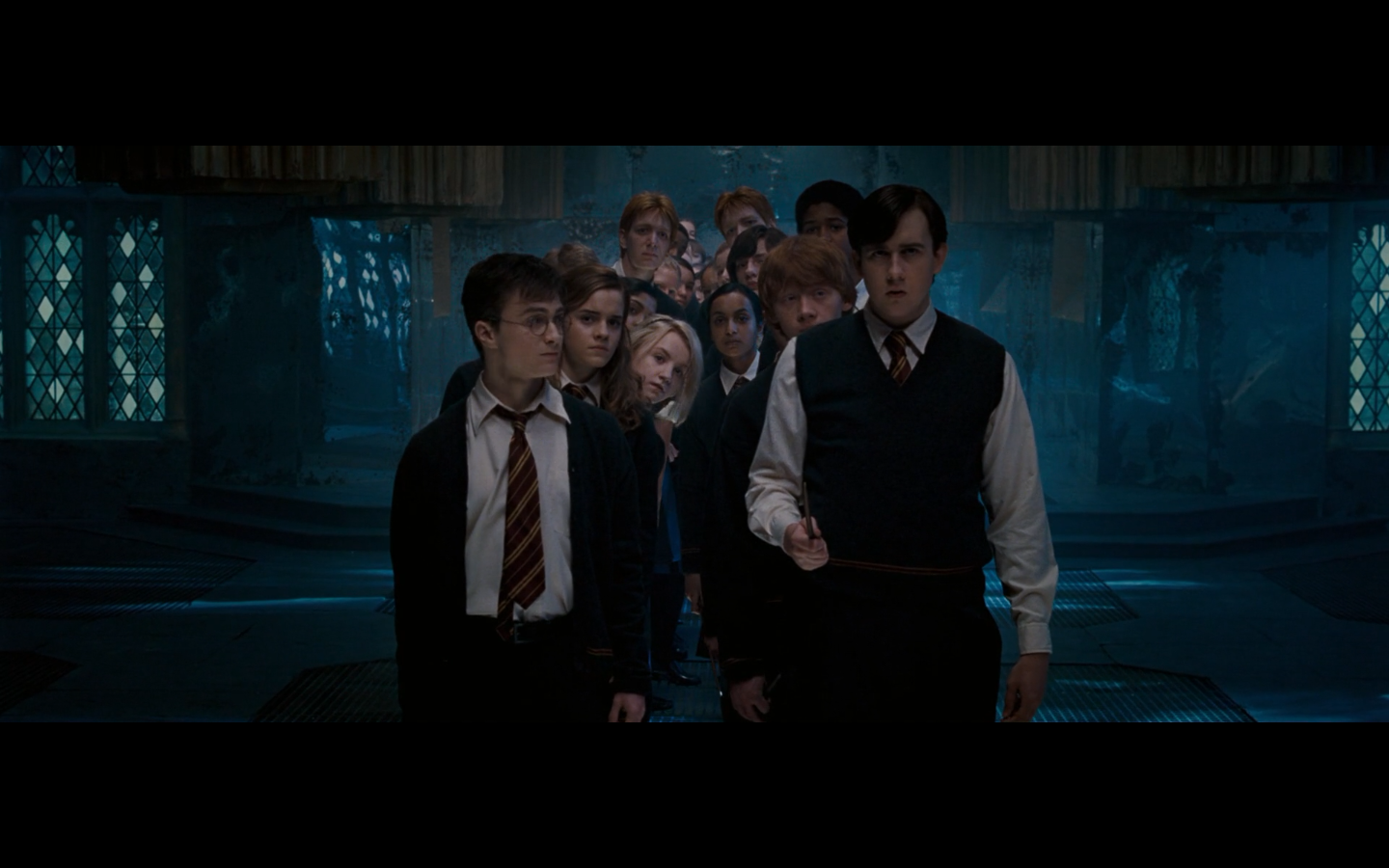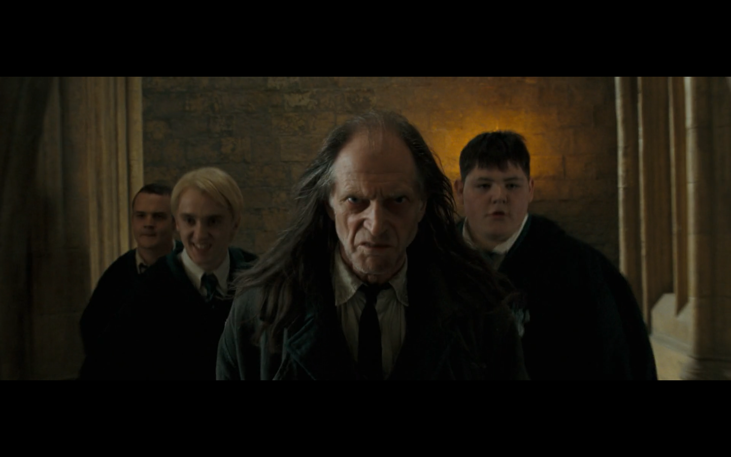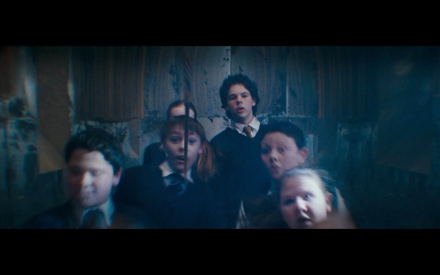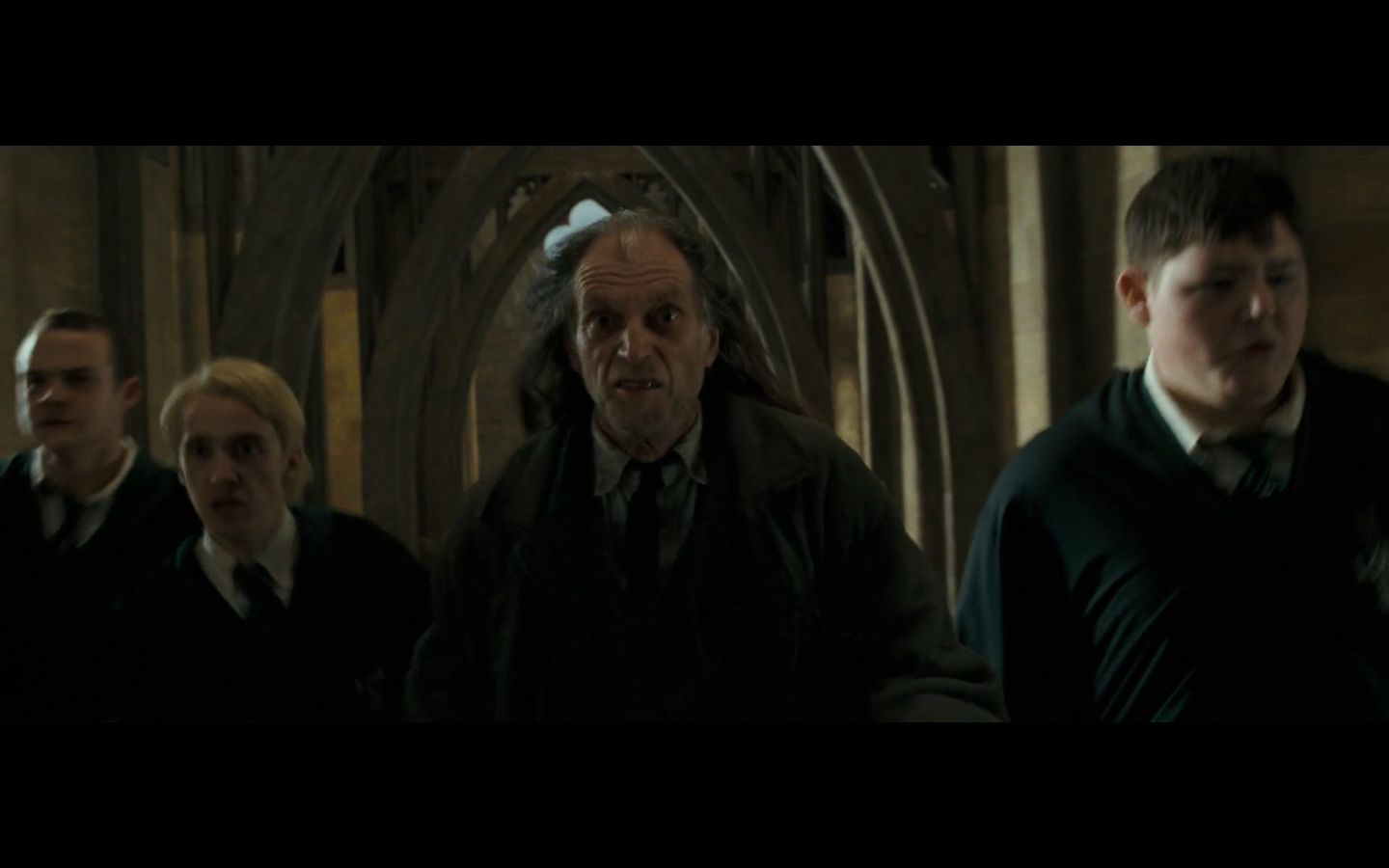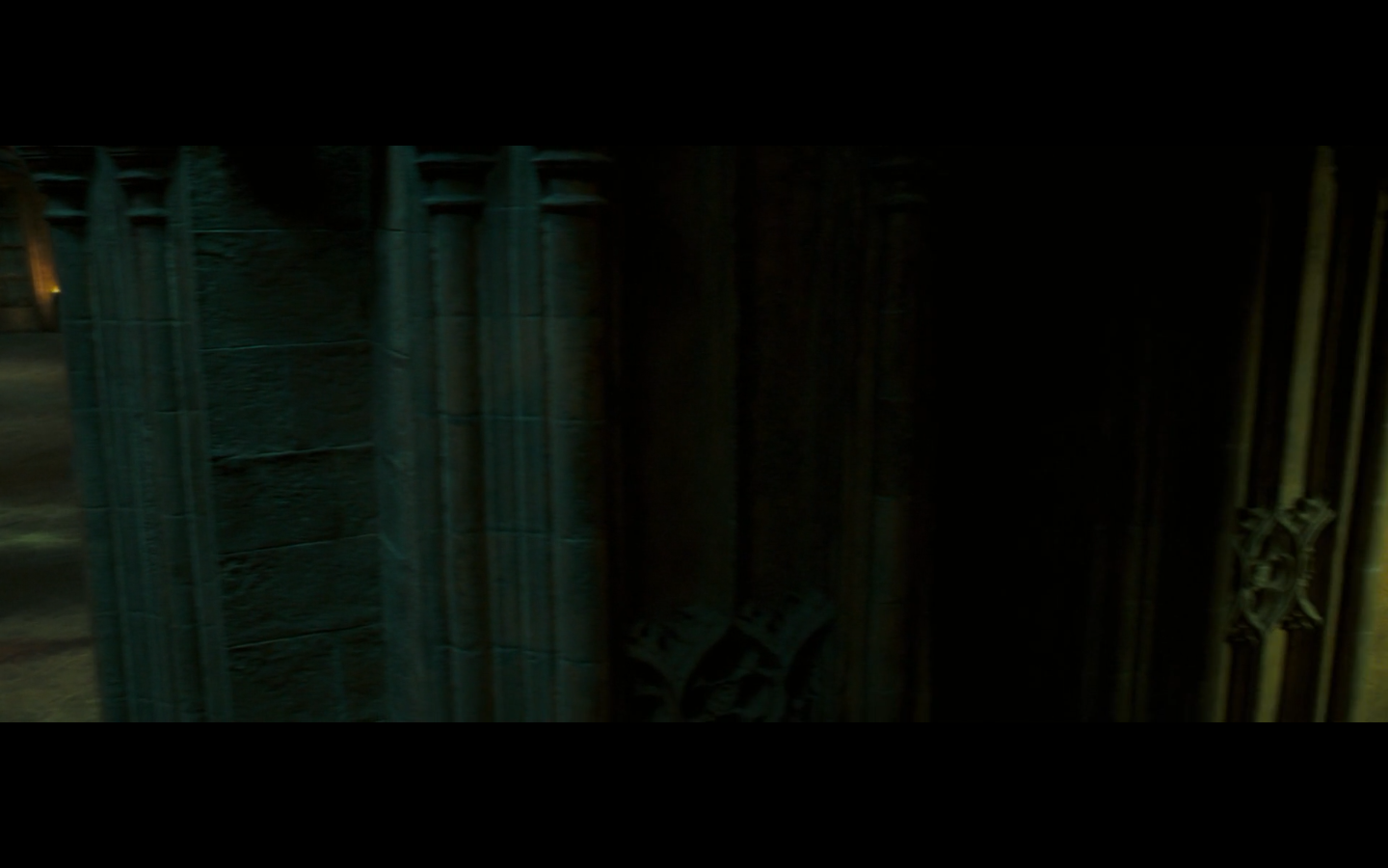 Also, very strangely, over this shot, we hear Hermione’s voiceover say, “You’ve done it, Neville. You’ve found the Room of Requirement,” as if he unlocked some sort of hidden bonus or something.