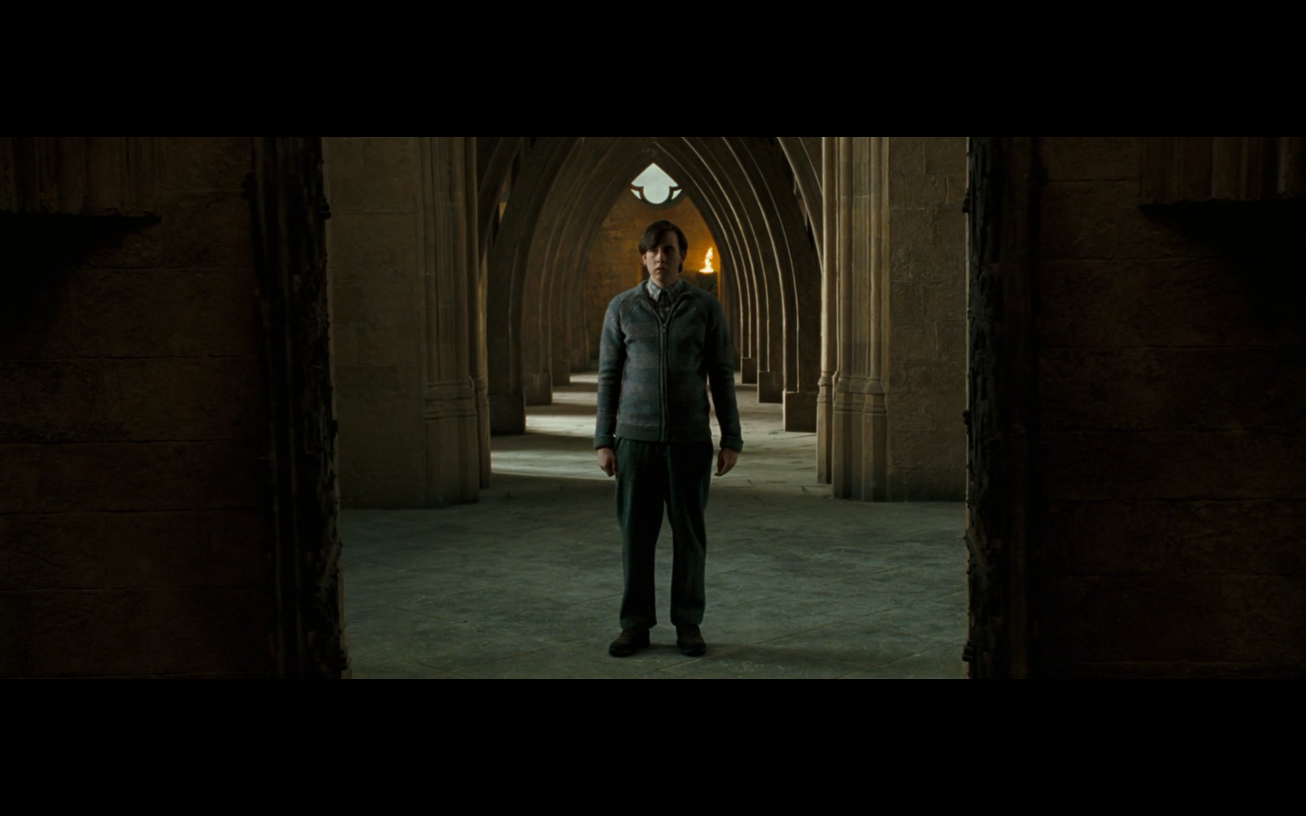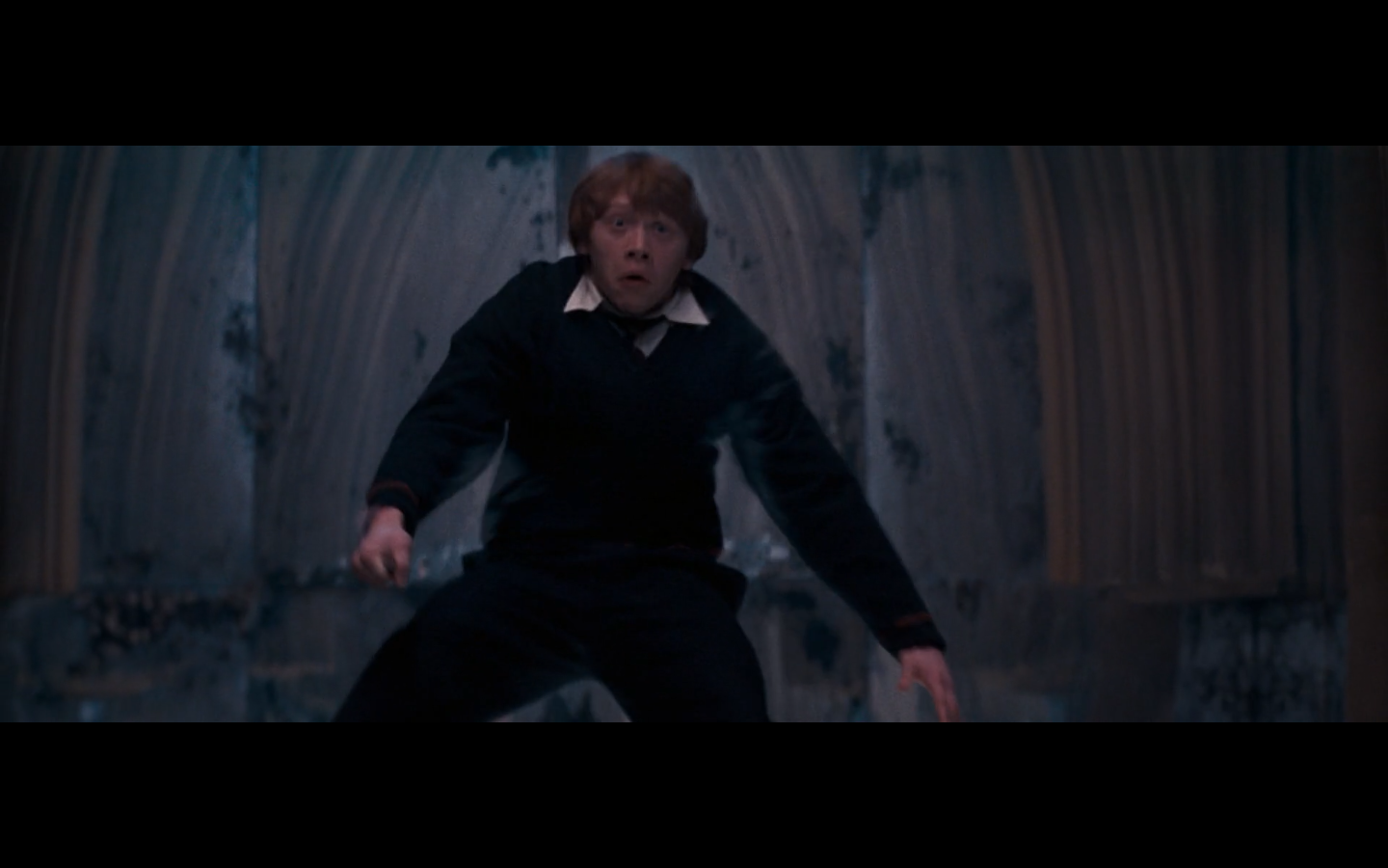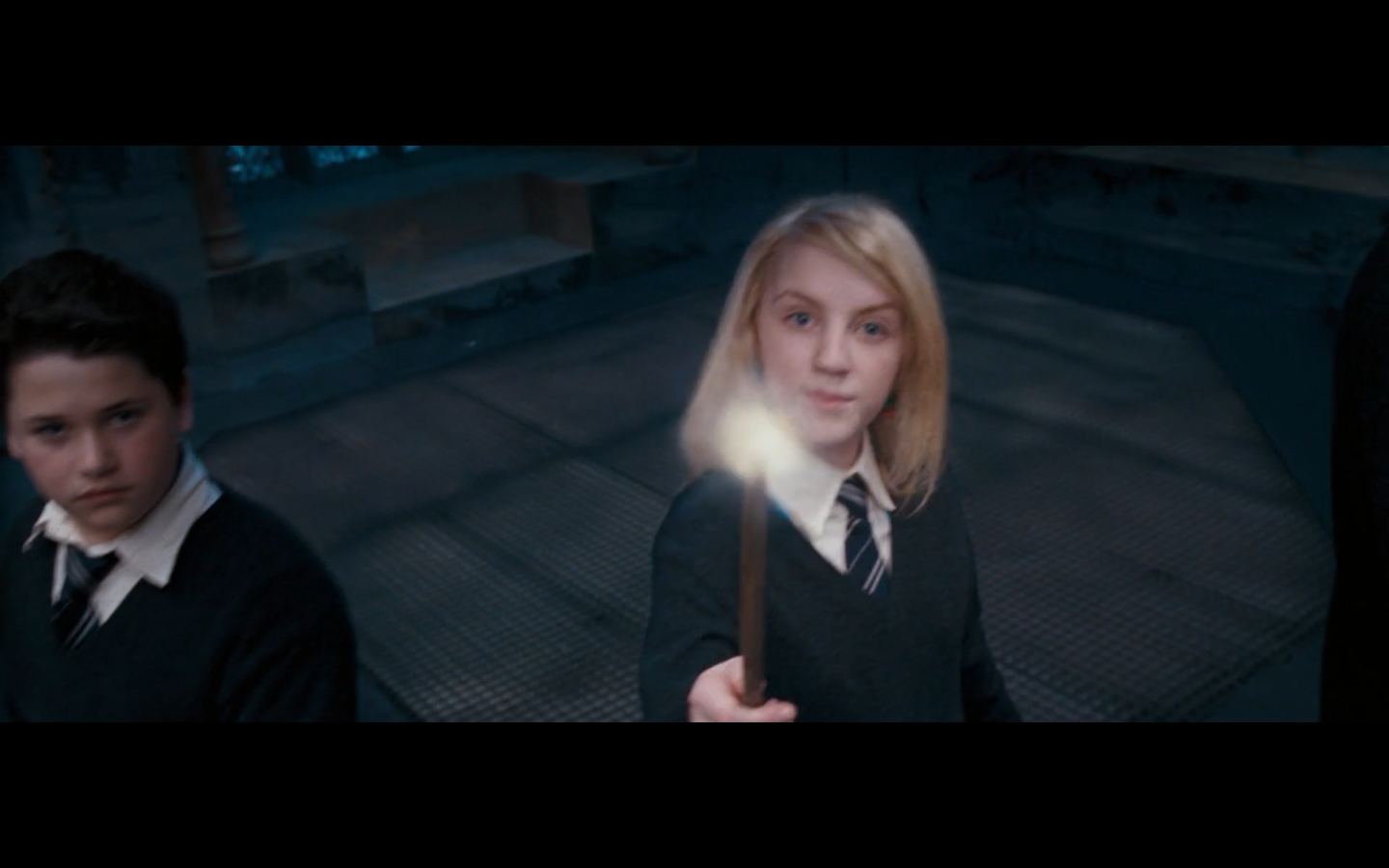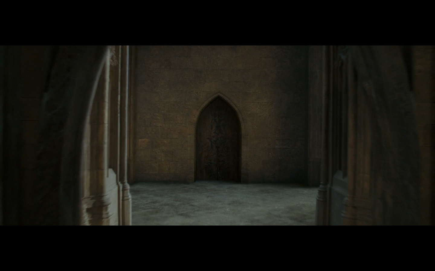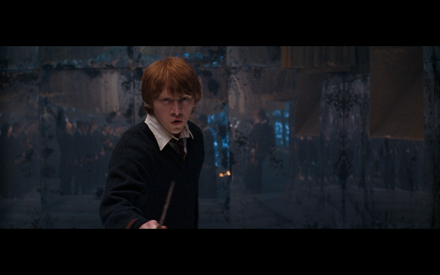 Also, very strangely, over this shot, we hear Hermione’s voiceover say, “You’ve done it, Neville. You’ve found the Room of Requirement,” as if he unlocked some sort of hidden bonus or something.