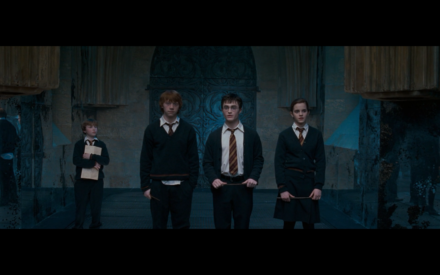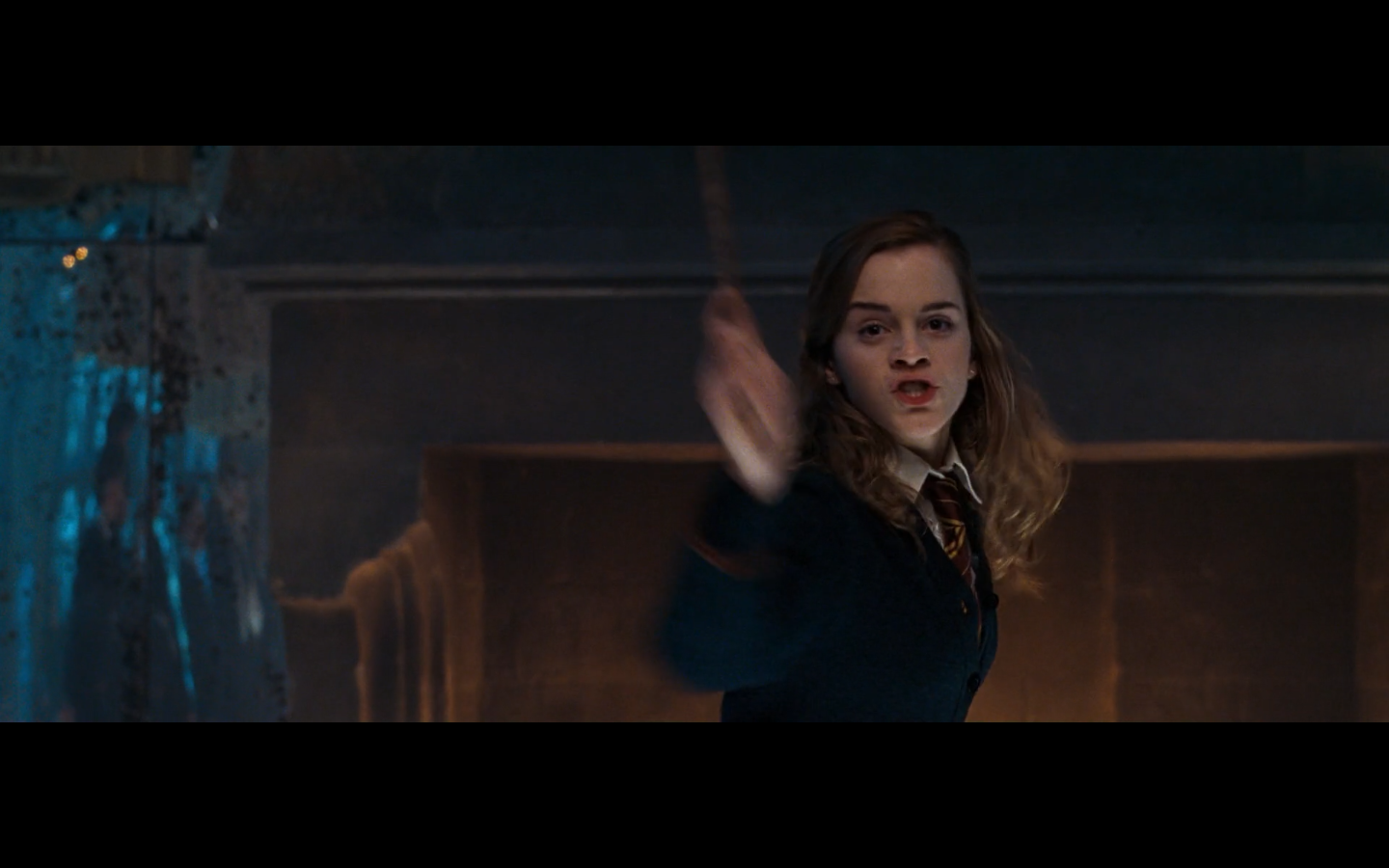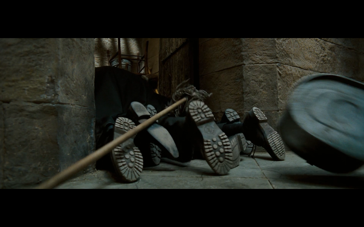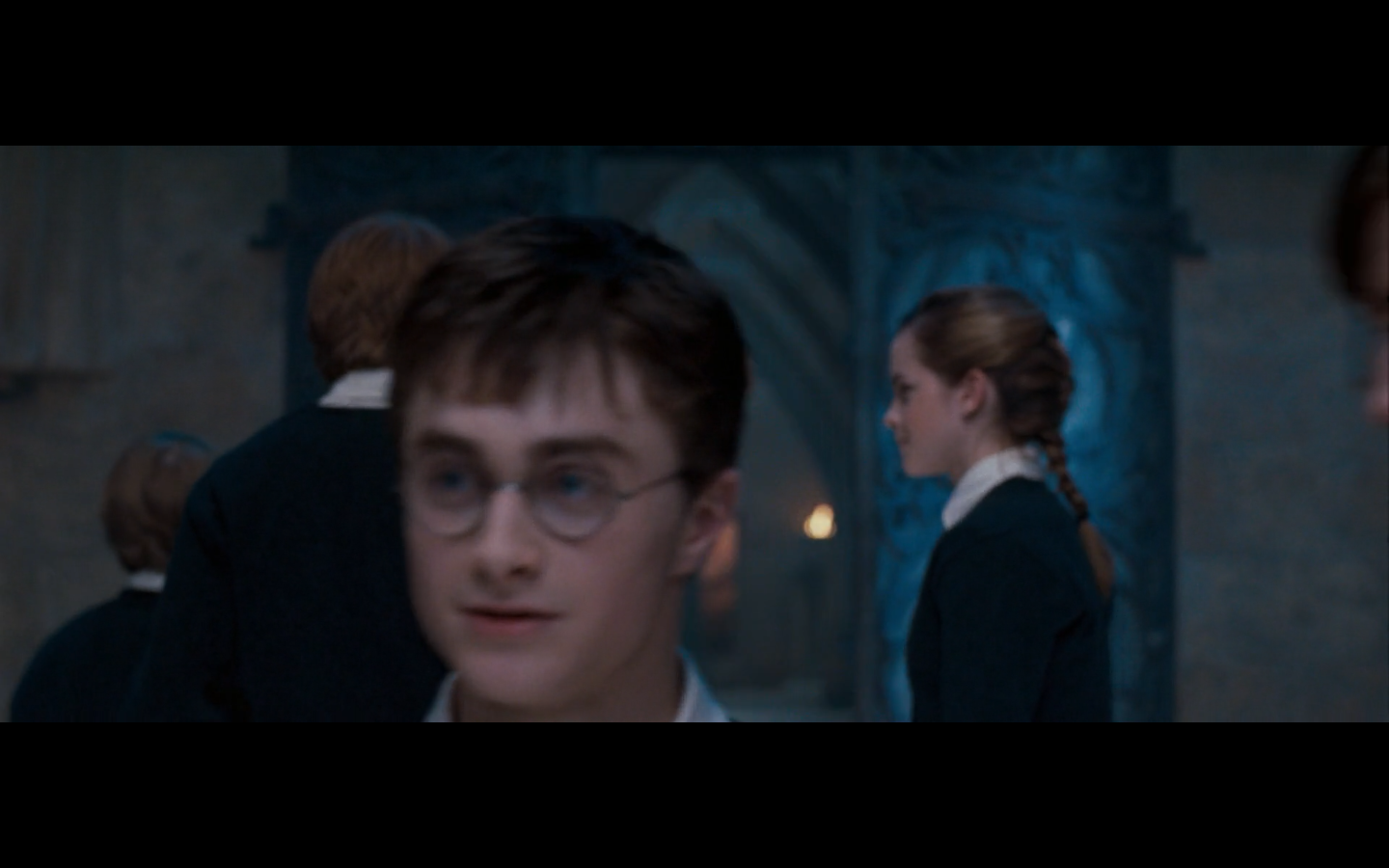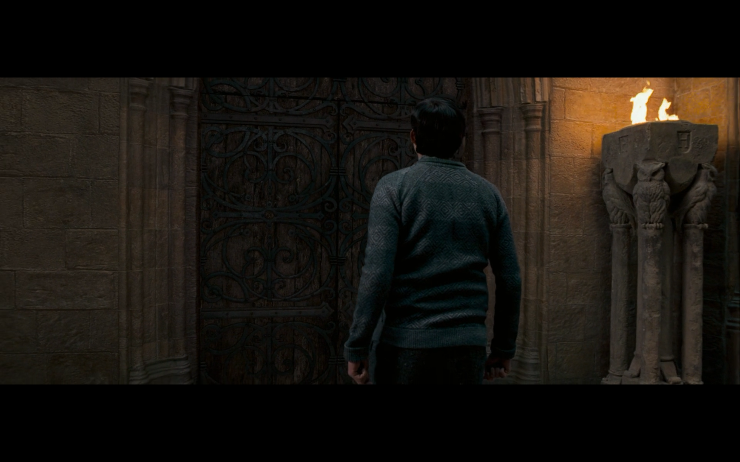 Also, very strangely, over this shot, we hear Hermione’s voiceover say, “You’ve done it, Neville. You’ve found the Room of Requirement,” as if he unlocked some sort of hidden bonus or something.