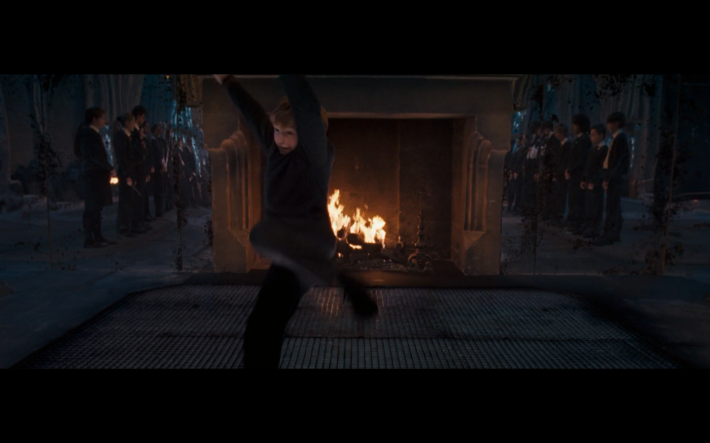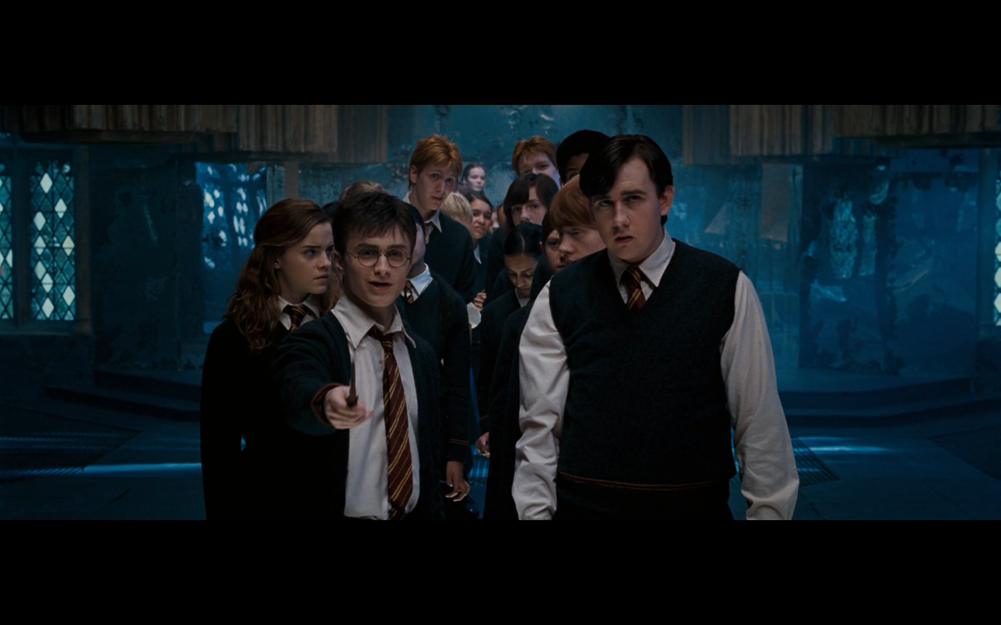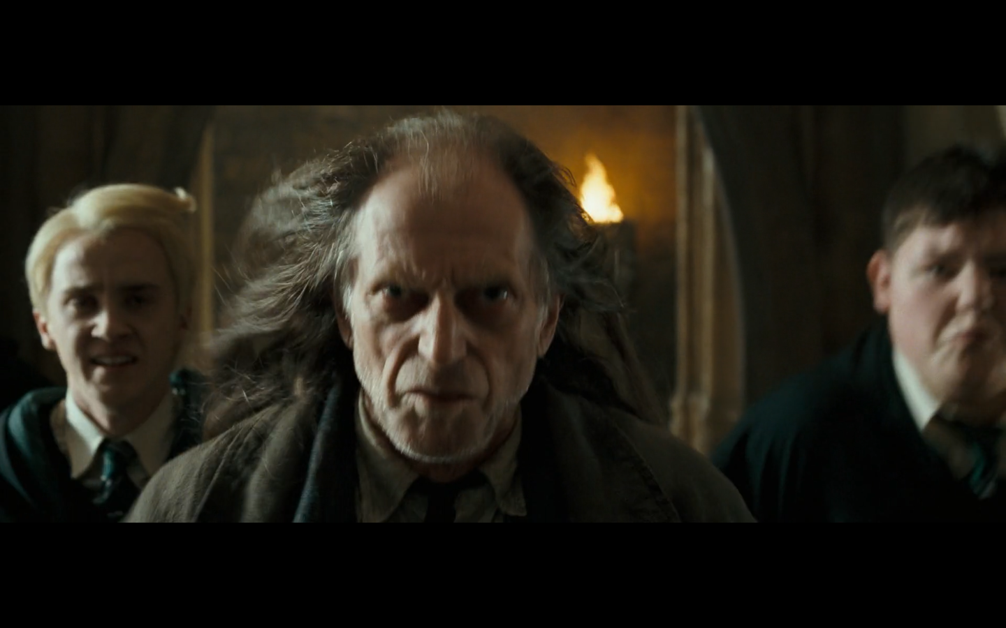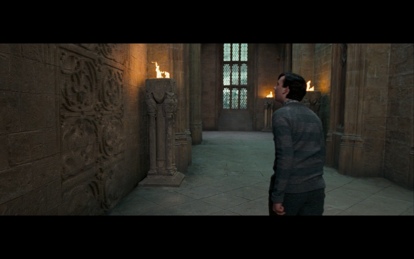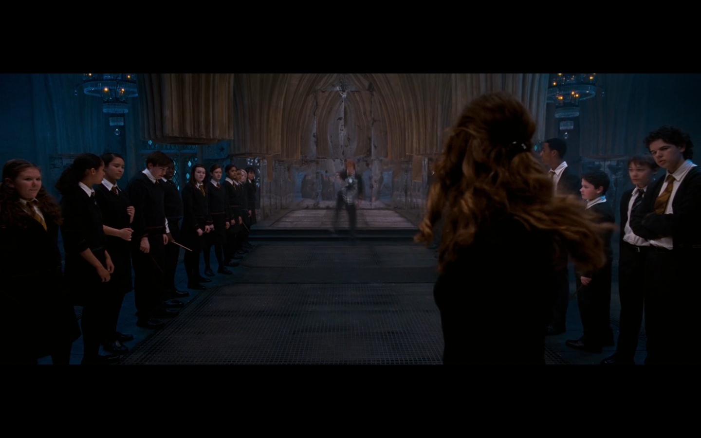 Also, very strangely, over this shot, we hear Hermione’s voiceover say, “You’ve done it, Neville. You’ve found the Room of Requirement,” as if he unlocked some sort of hidden bonus or something.