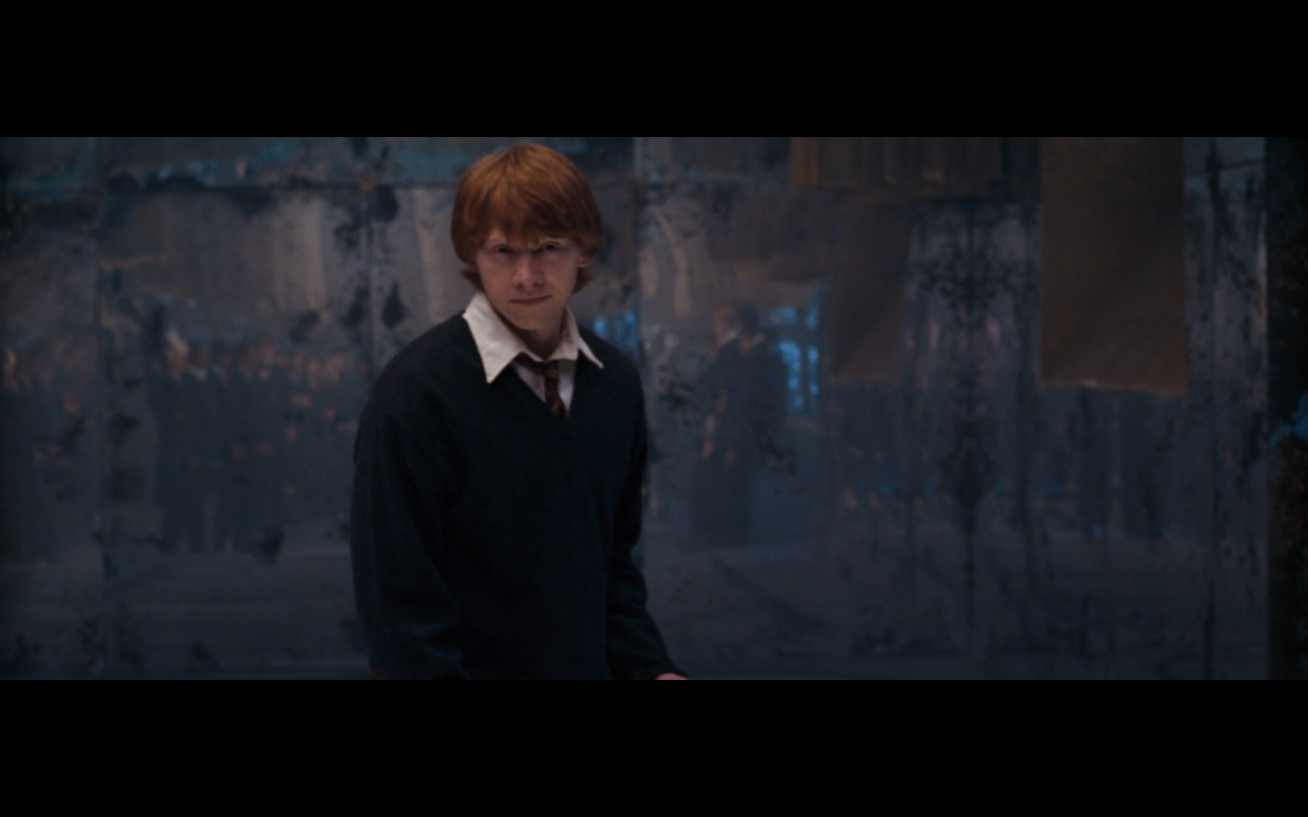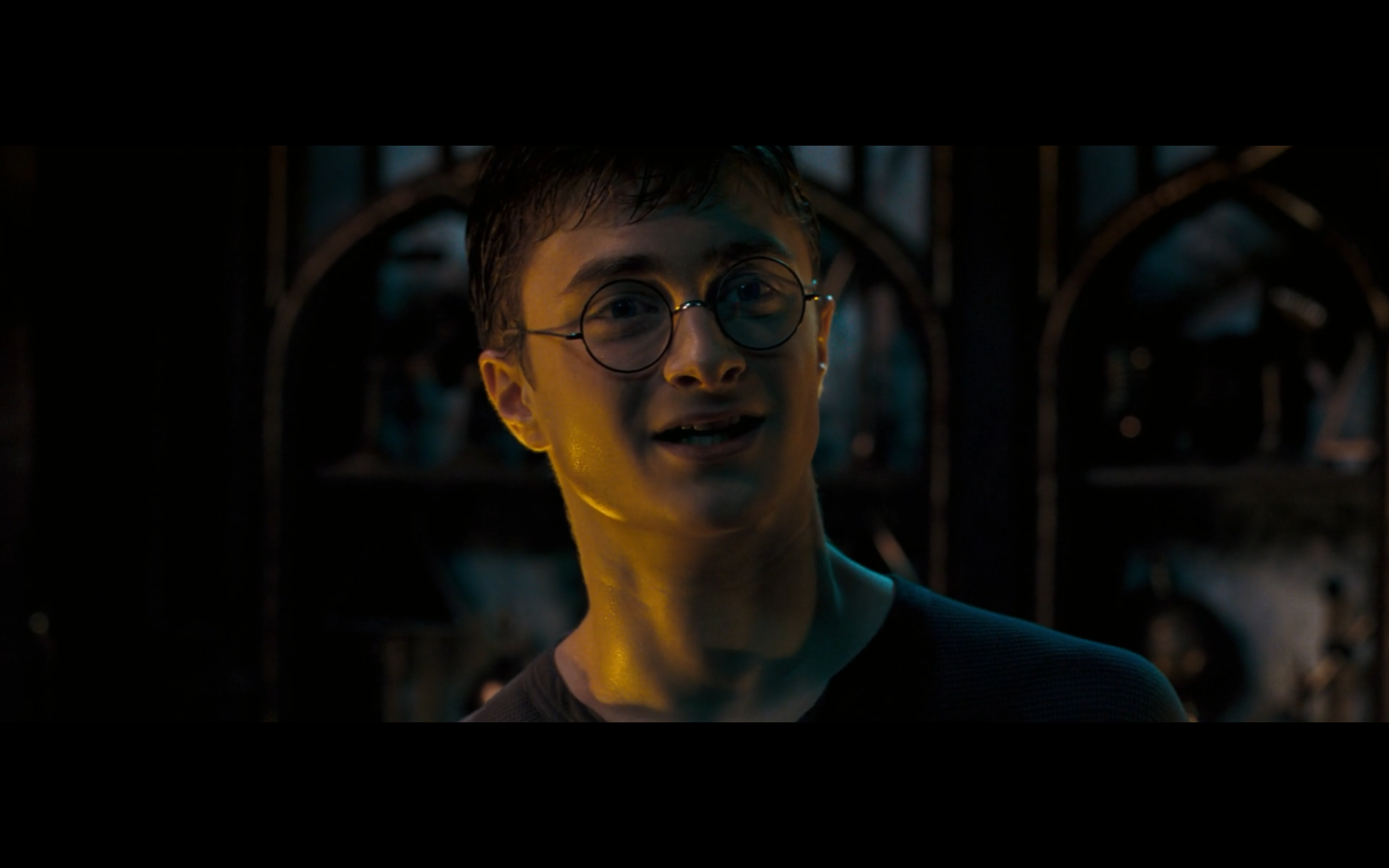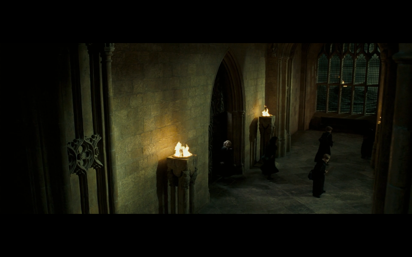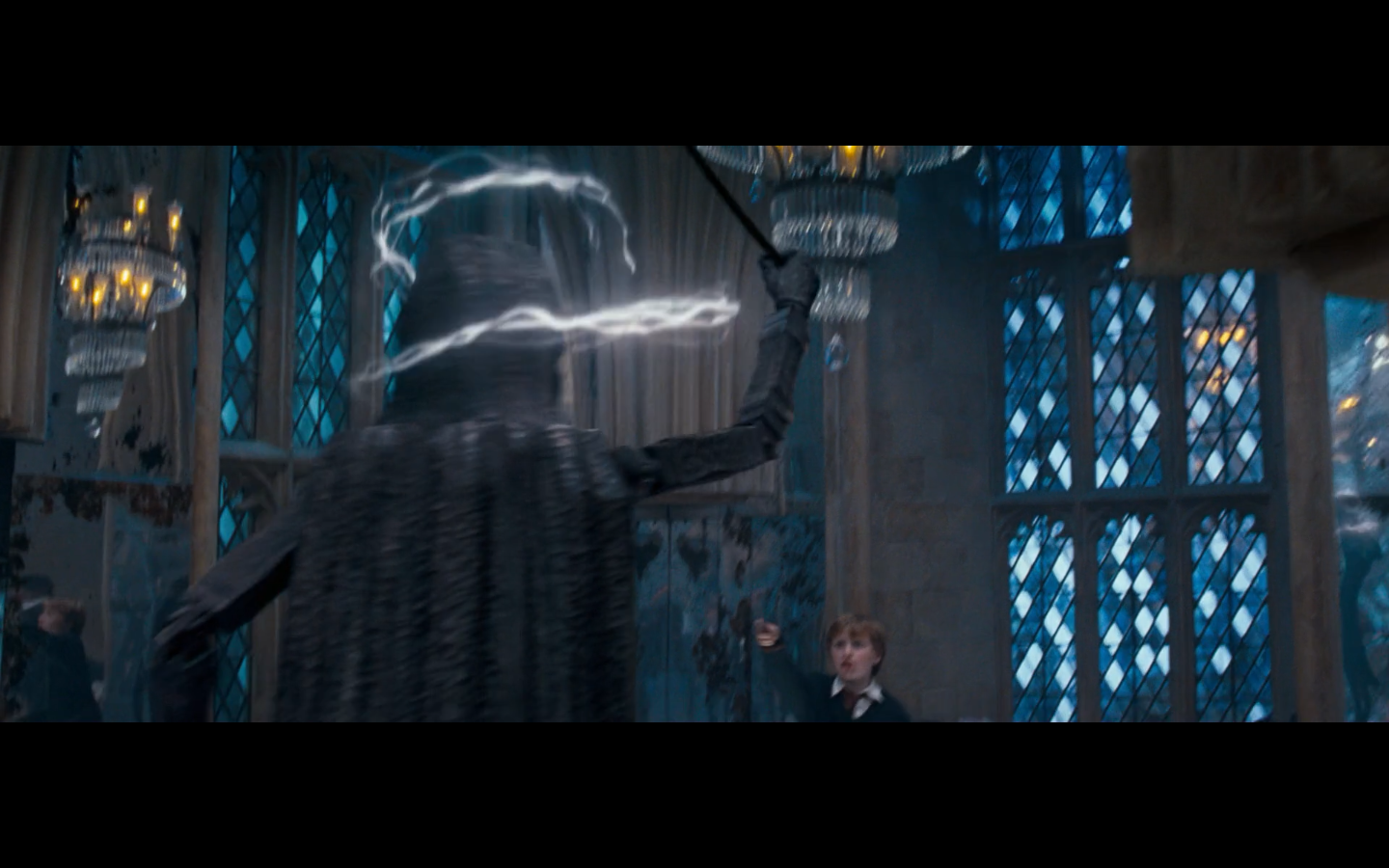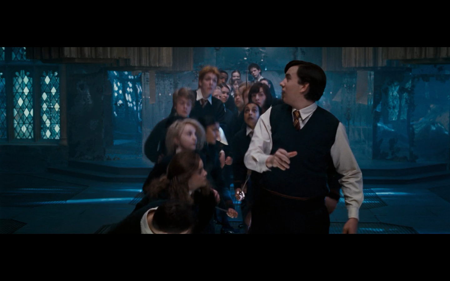 Also, very strangely, over this shot, we hear Hermione’s voiceover say, “You’ve done it, Neville. You’ve found the Room of Requirement,” as if he unlocked some sort of hidden bonus or something.