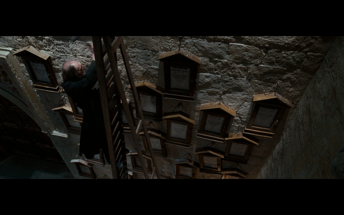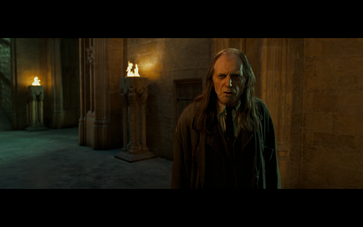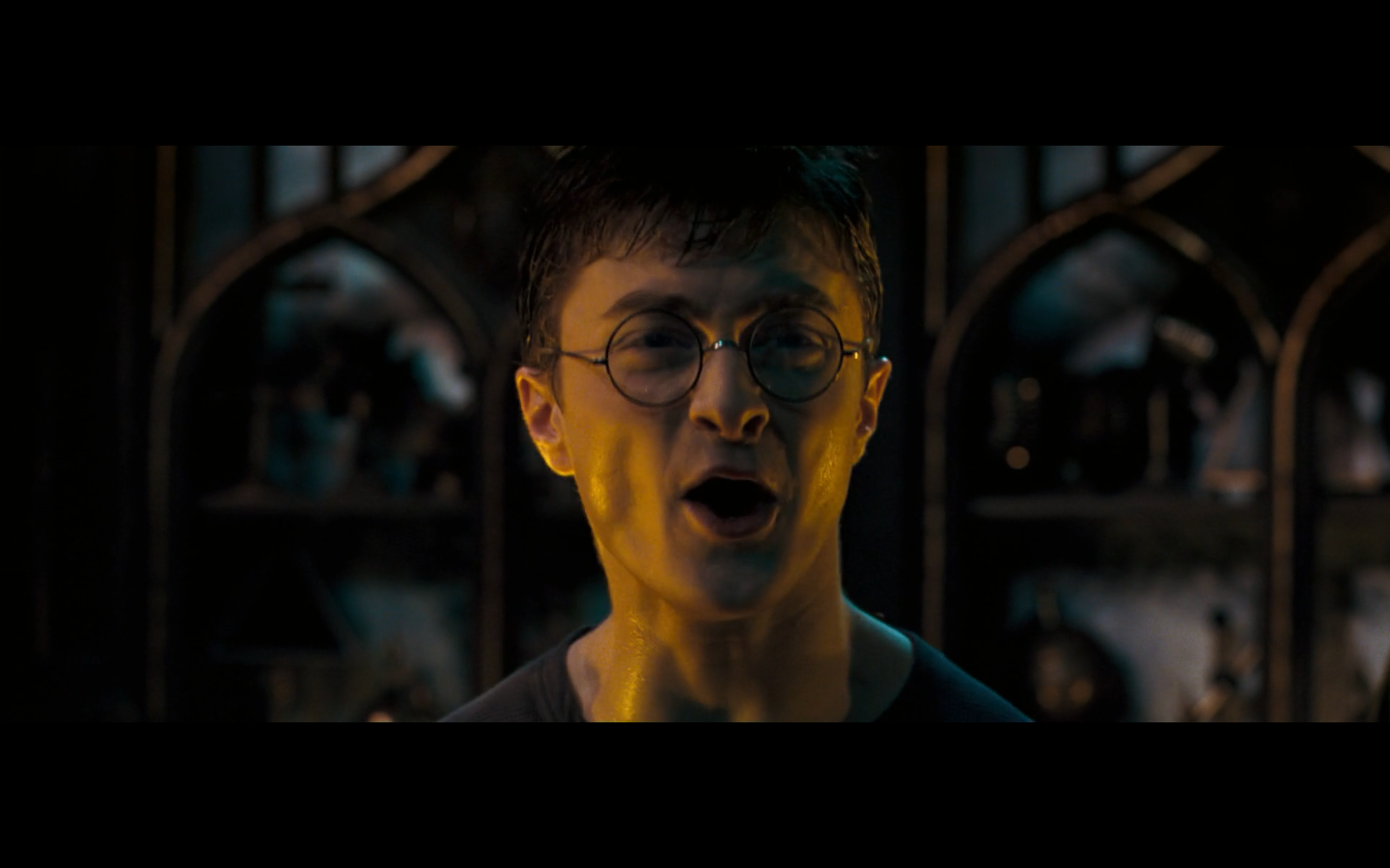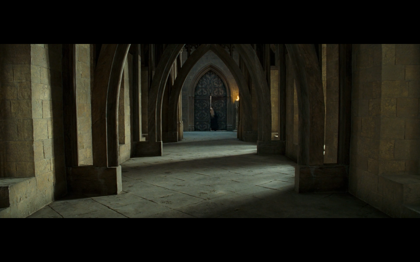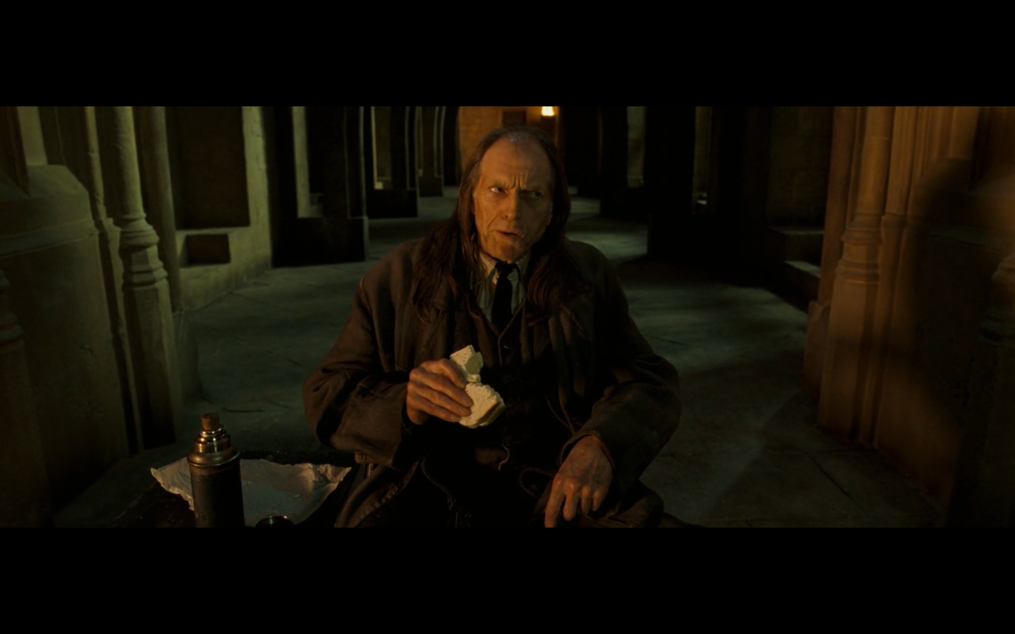 Also, very strangely, over this shot, we hear Hermione’s voiceover say, “You’ve done it, Neville. You’ve found the Room of Requirement,” as if he unlocked some sort of hidden bonus or something.