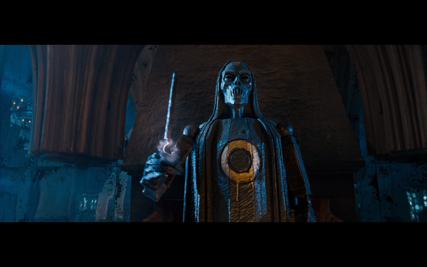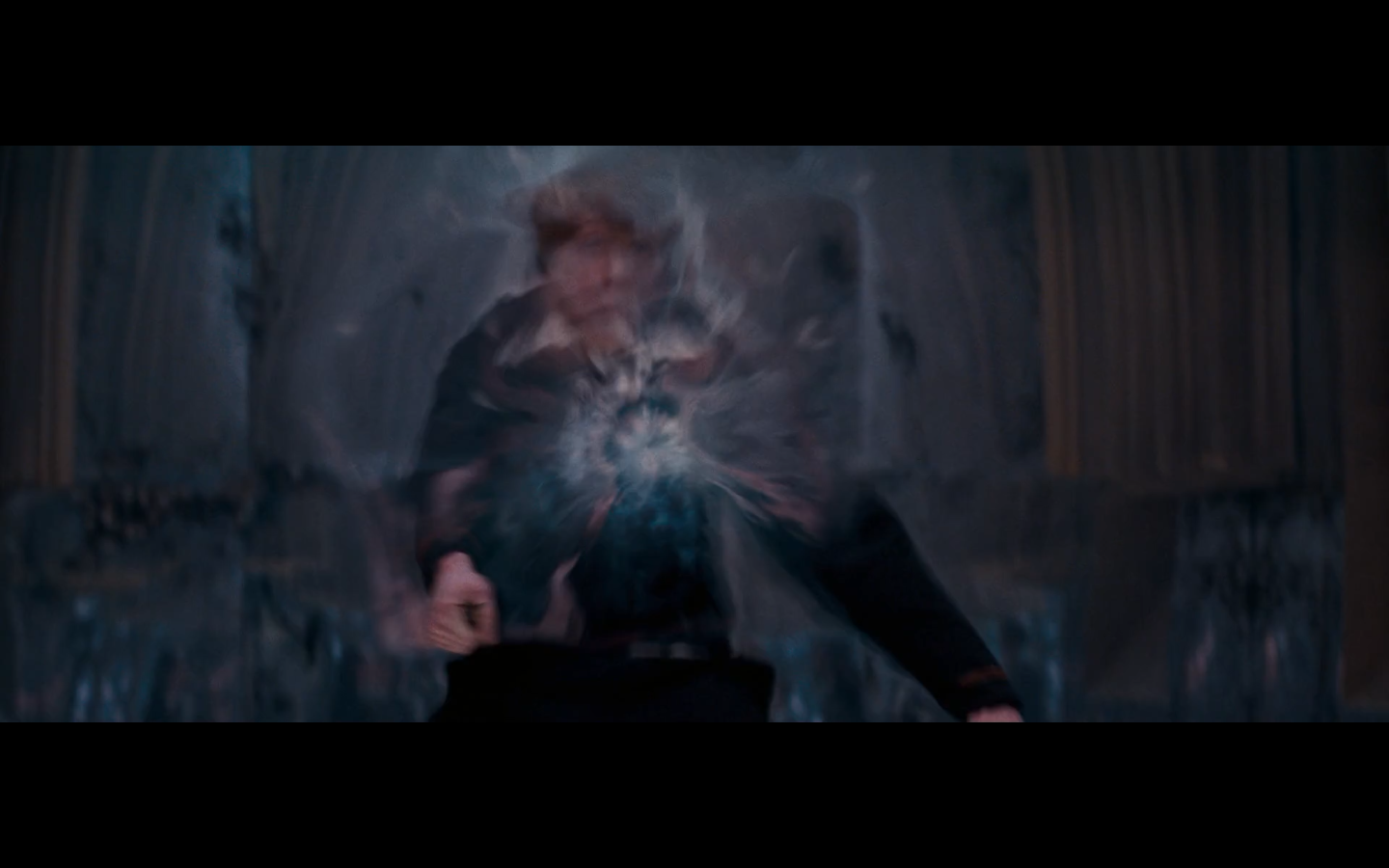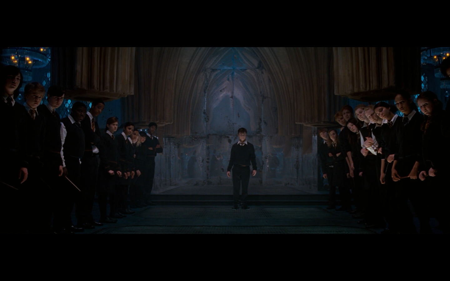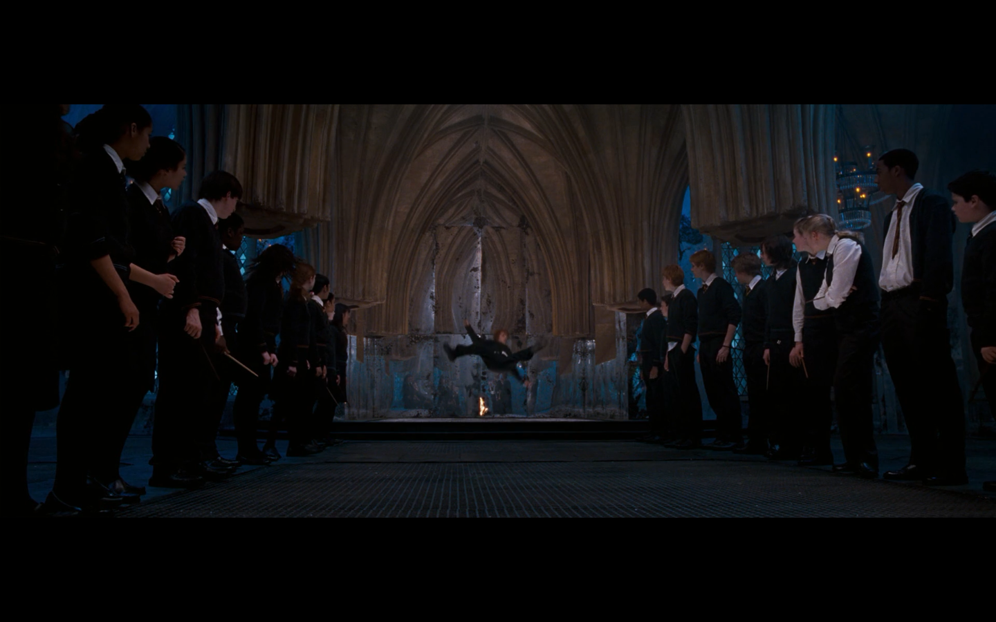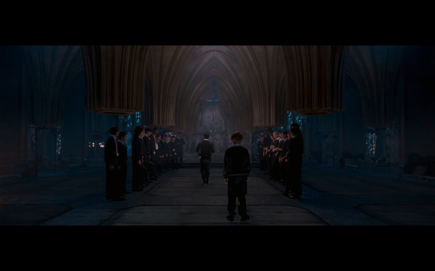 Also, very strangely, over this shot, we hear Hermione’s voiceover say, “You’ve done it, Neville. You’ve found the Room of Requirement,” as if he unlocked some sort of hidden bonus or something.