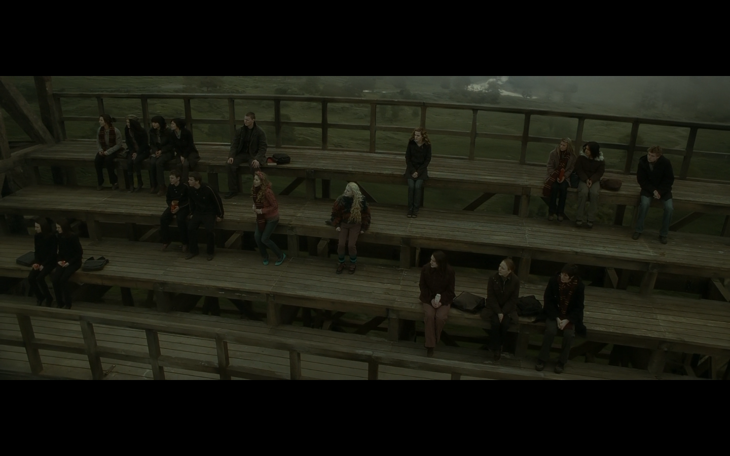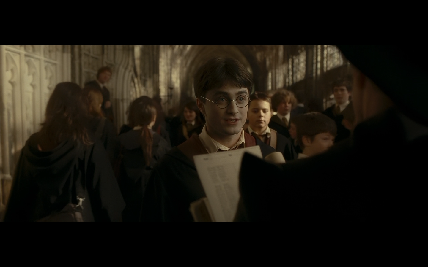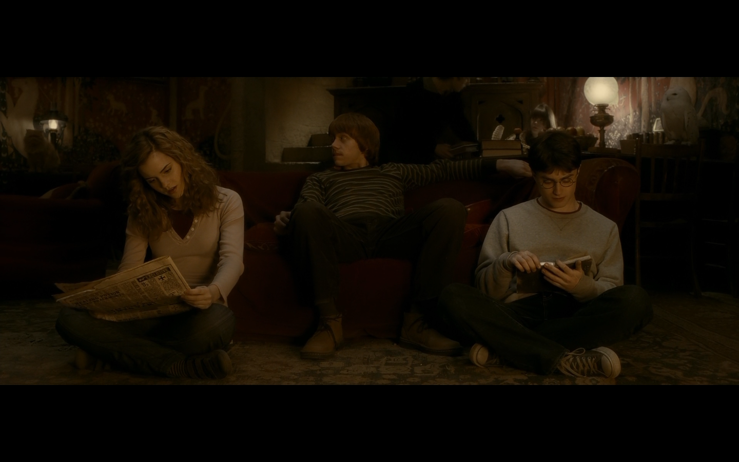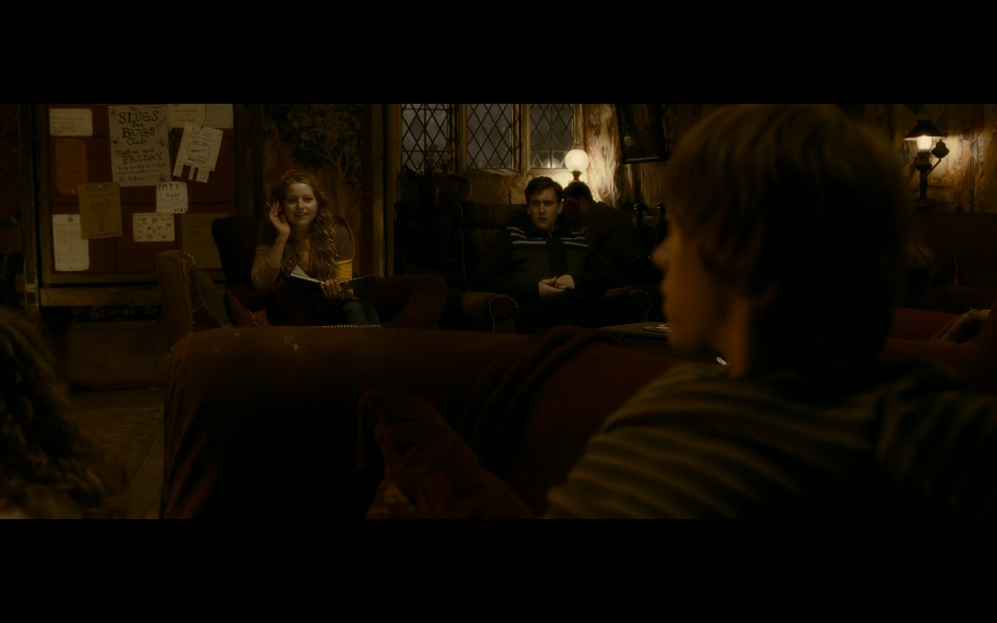 You know that Dumbledore told McGonagall about this and set it all up, since he needs Harry in that class. Too bad for Ron, though. He has to go because Maggie Smith doesn’t want kids having too much fun. That said, what the hell were they doing? You have a free period, so you stand on a bench and laugh at people going by? Don’t you have GTA San Andreas to play or something? That’s what Mike and I did on free periods. And when we had class, for that matter.