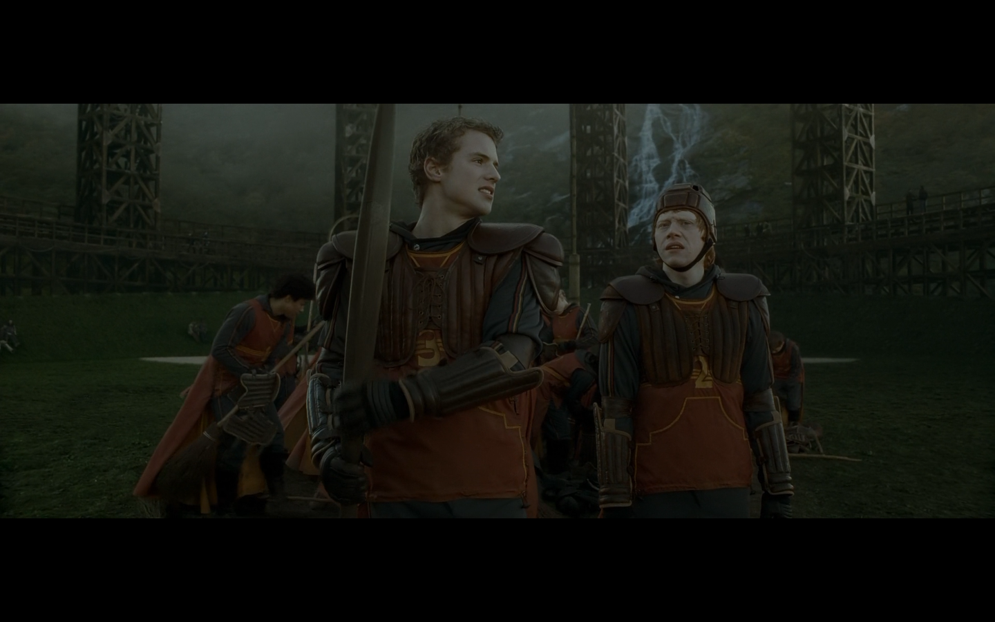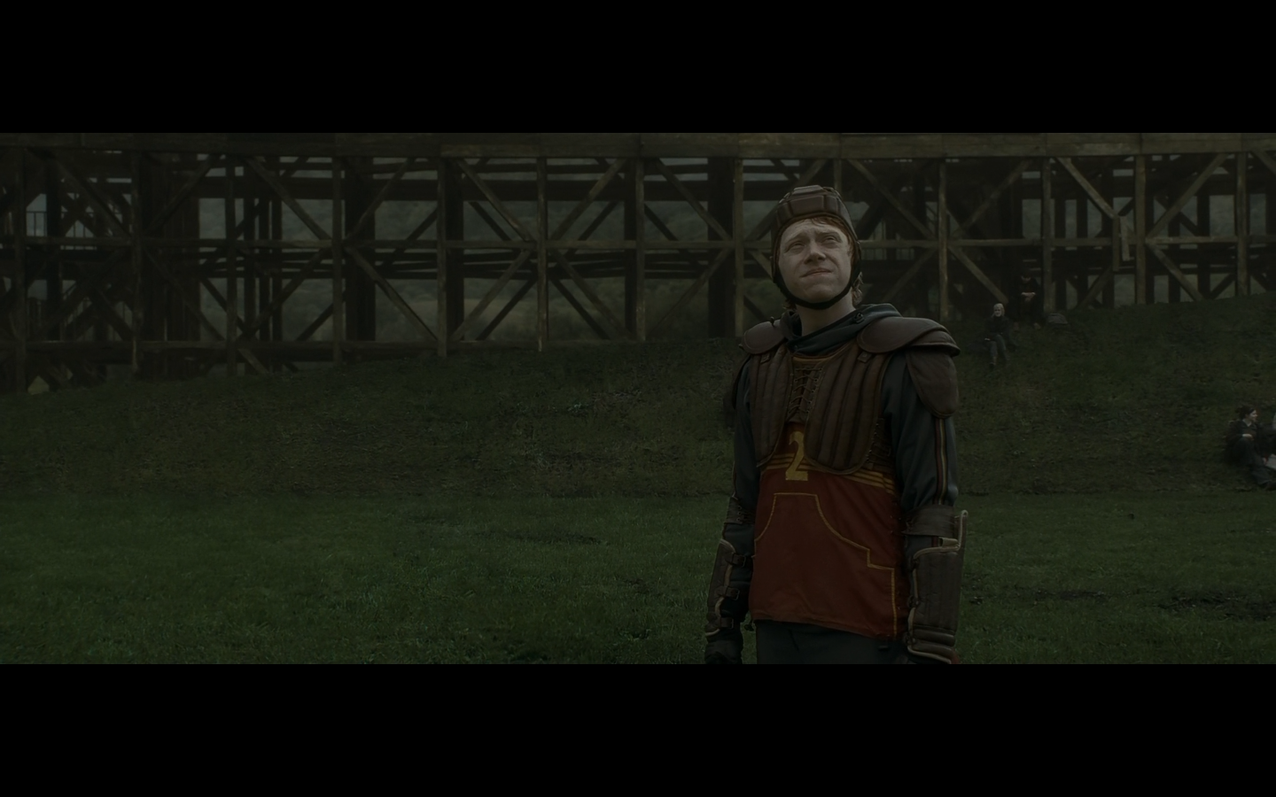 This is great, though. Ron’s like, “You got a little something…” and Harry just sort of motions.