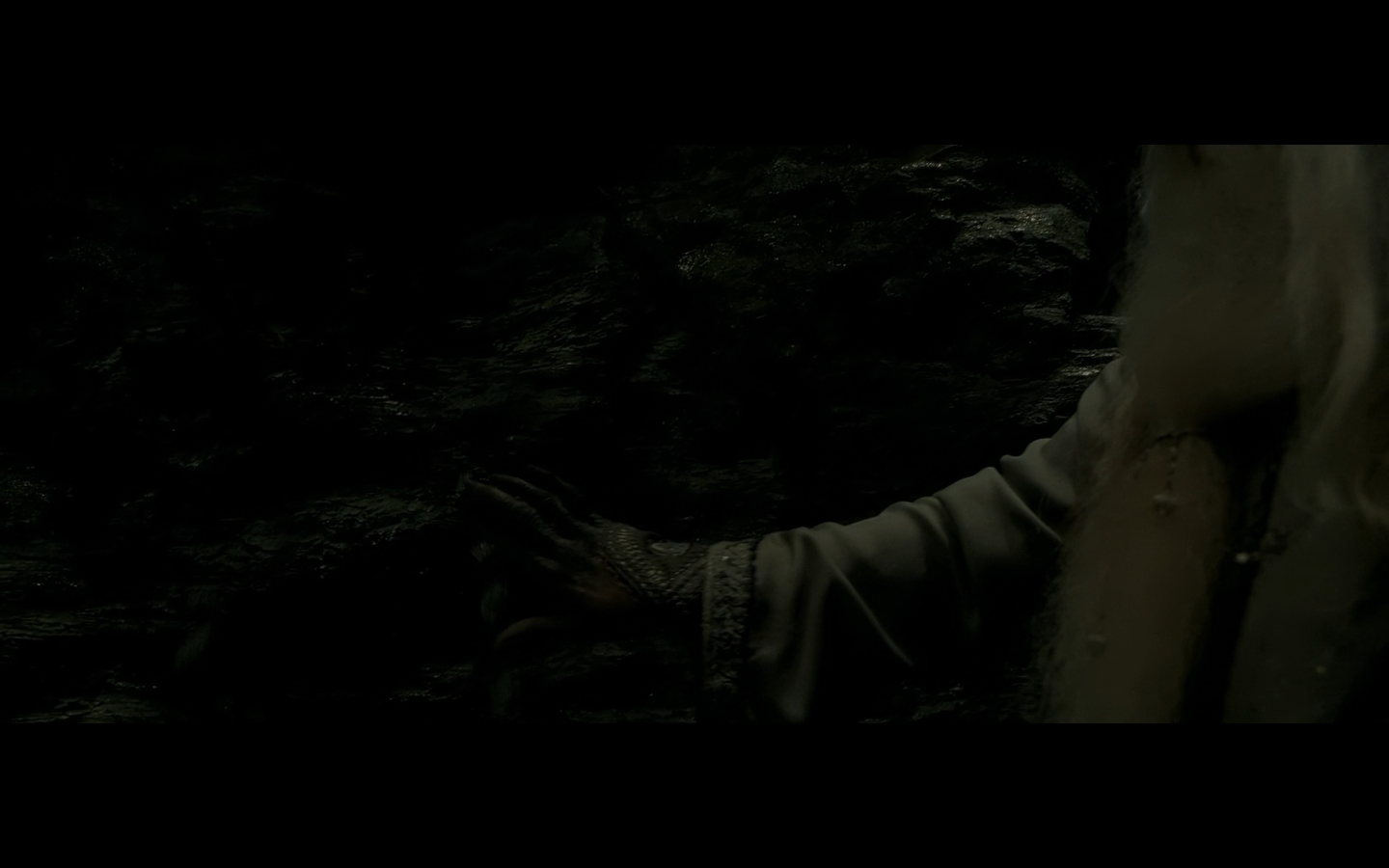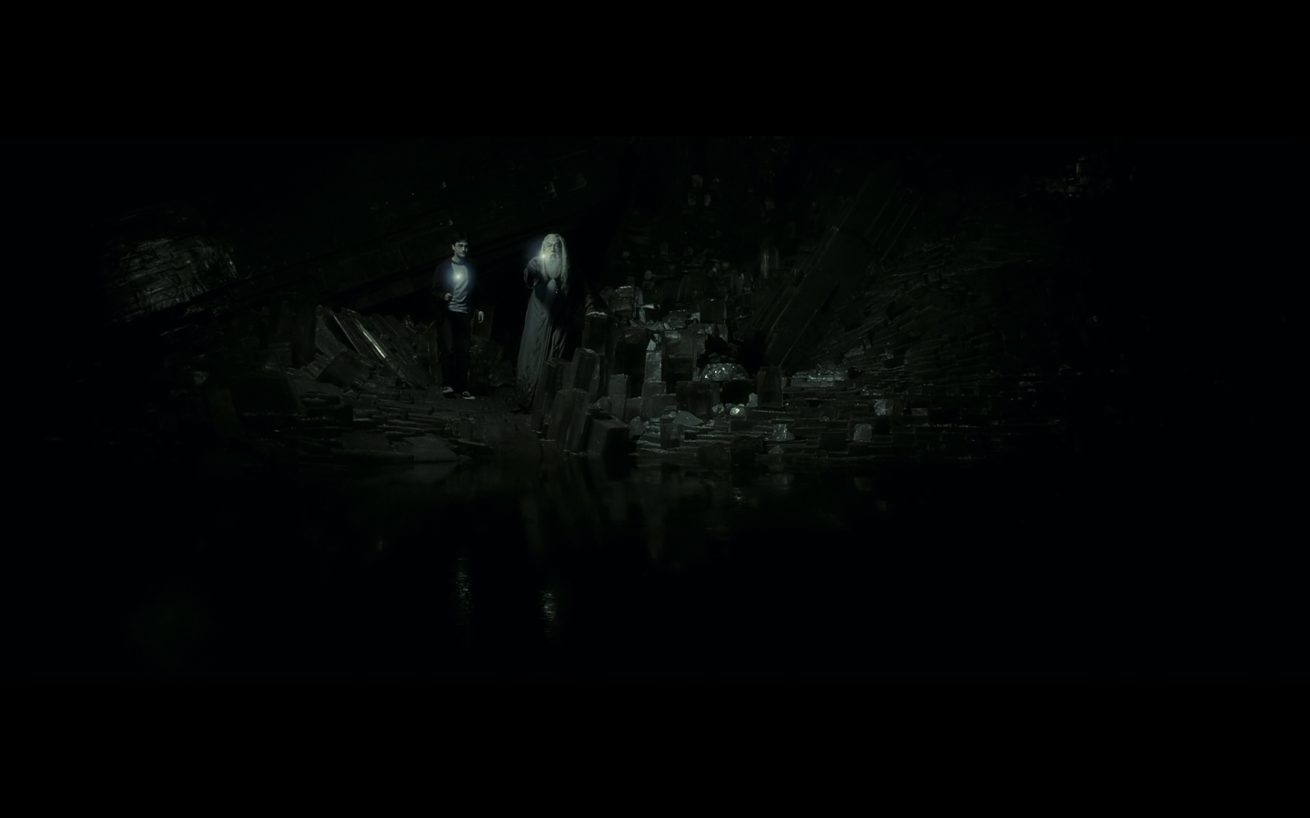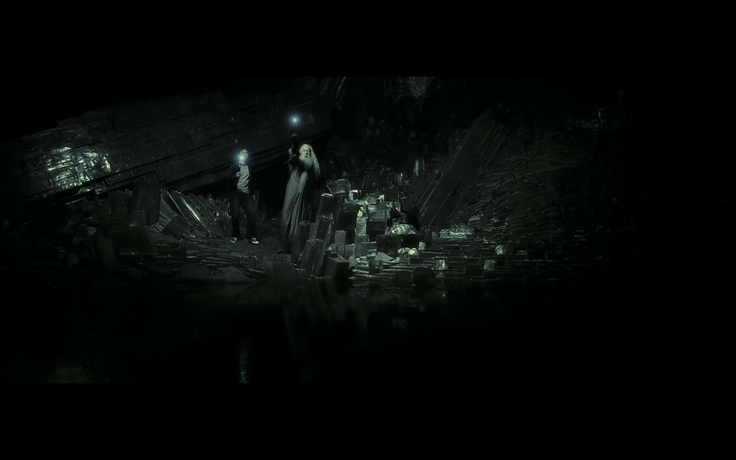It’s weird how he knows exactly what to do here, considering there’s nothing written on horcruxes. And it’s not like he’s had to spelunk before to get one of these. He seems to know exactly all the magical set ups.